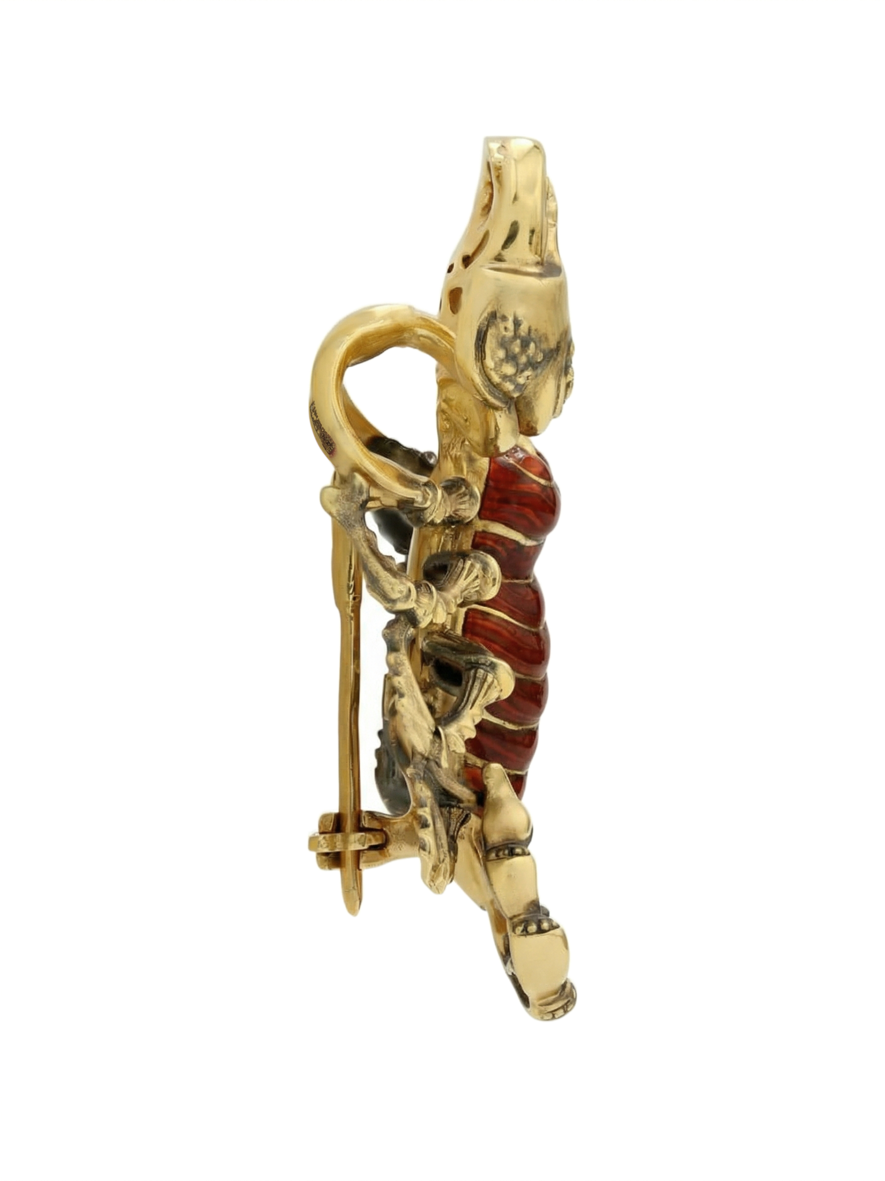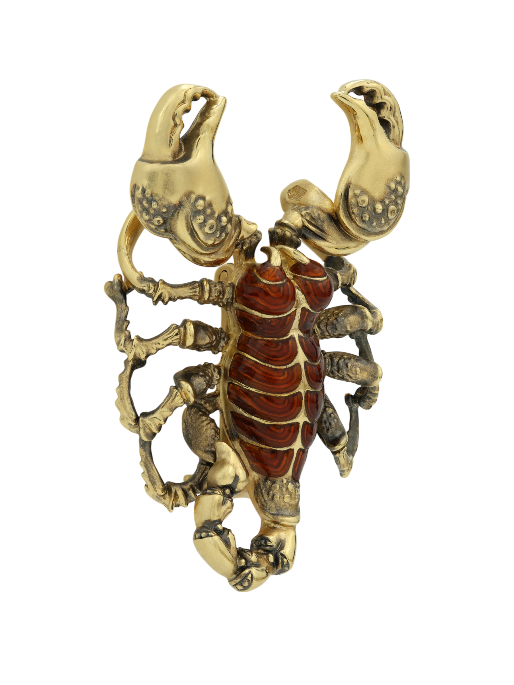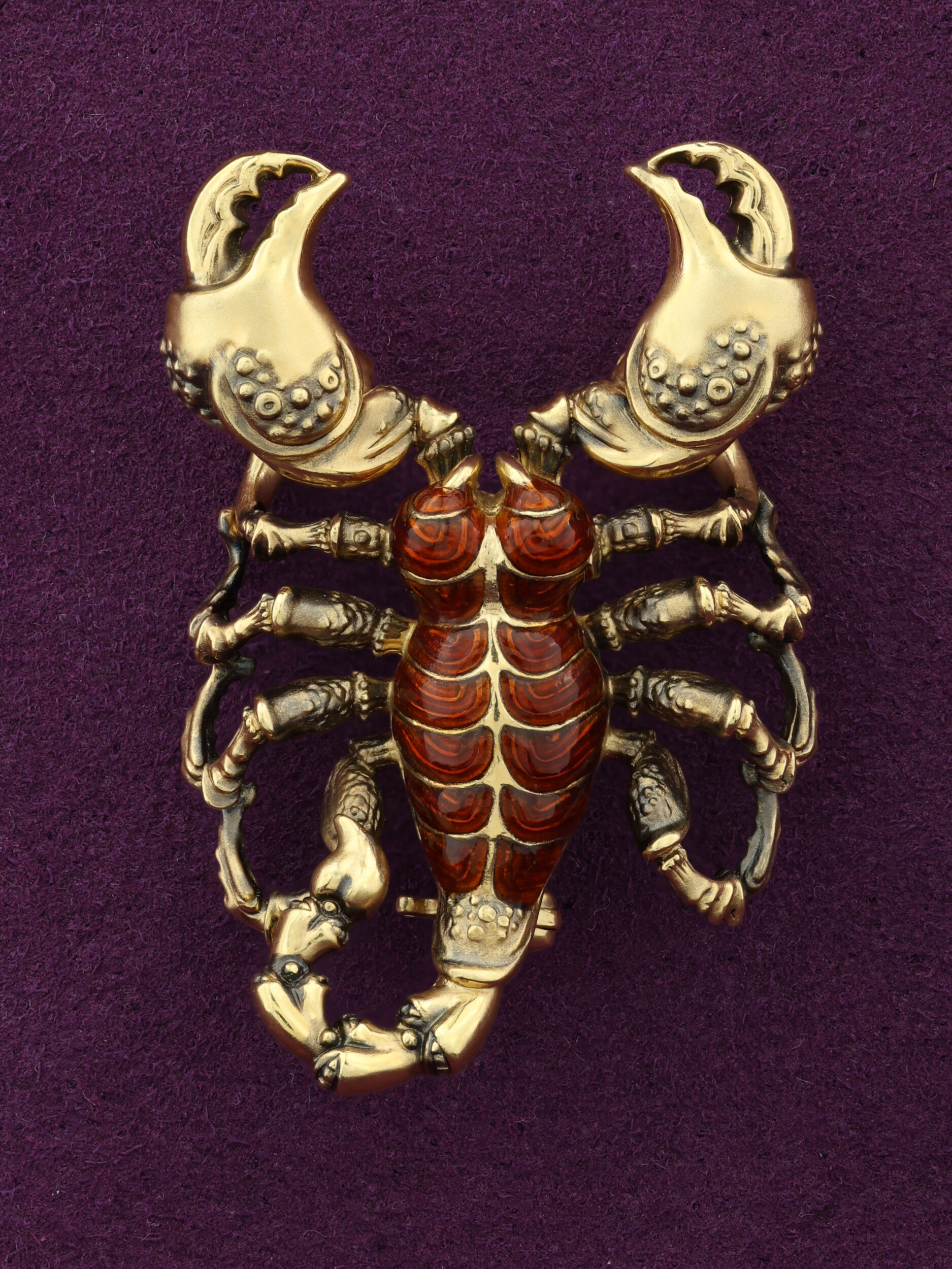 Главный акцент изделия — яркая коричневая эмаль, которой покрыта спинка скорпиона. Теплый оттенок эмали гармонично сочетается с лимонным цветом золота, создавая выразительный контраст и глубину. Это украшение станет идеальным завершением образа для тех, кто ценит необычные ювелирные решения. Брошь универсальна и подойдет как женщинам, так и мужчинам, стремящимся подчеркнуть свою индивидуальность.
