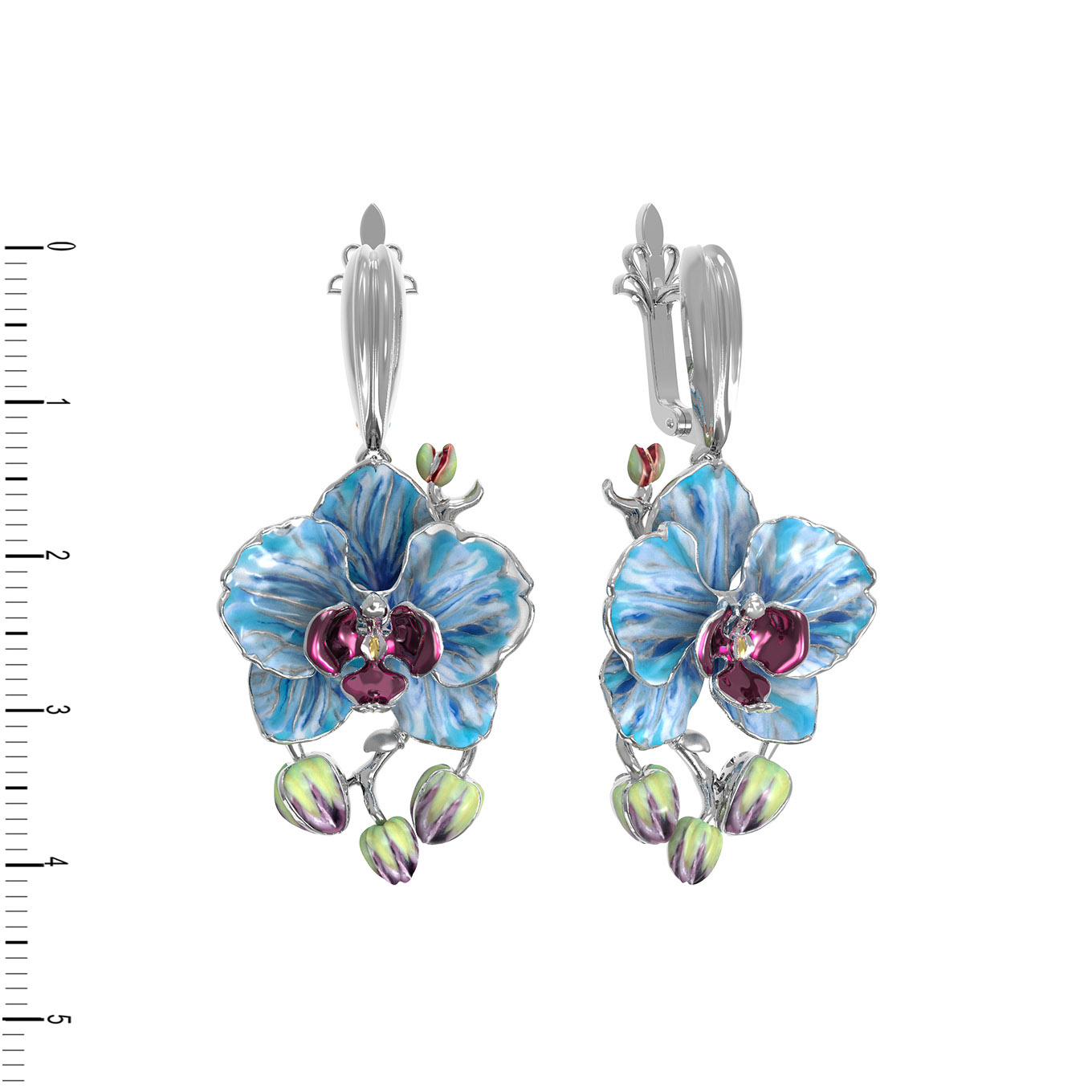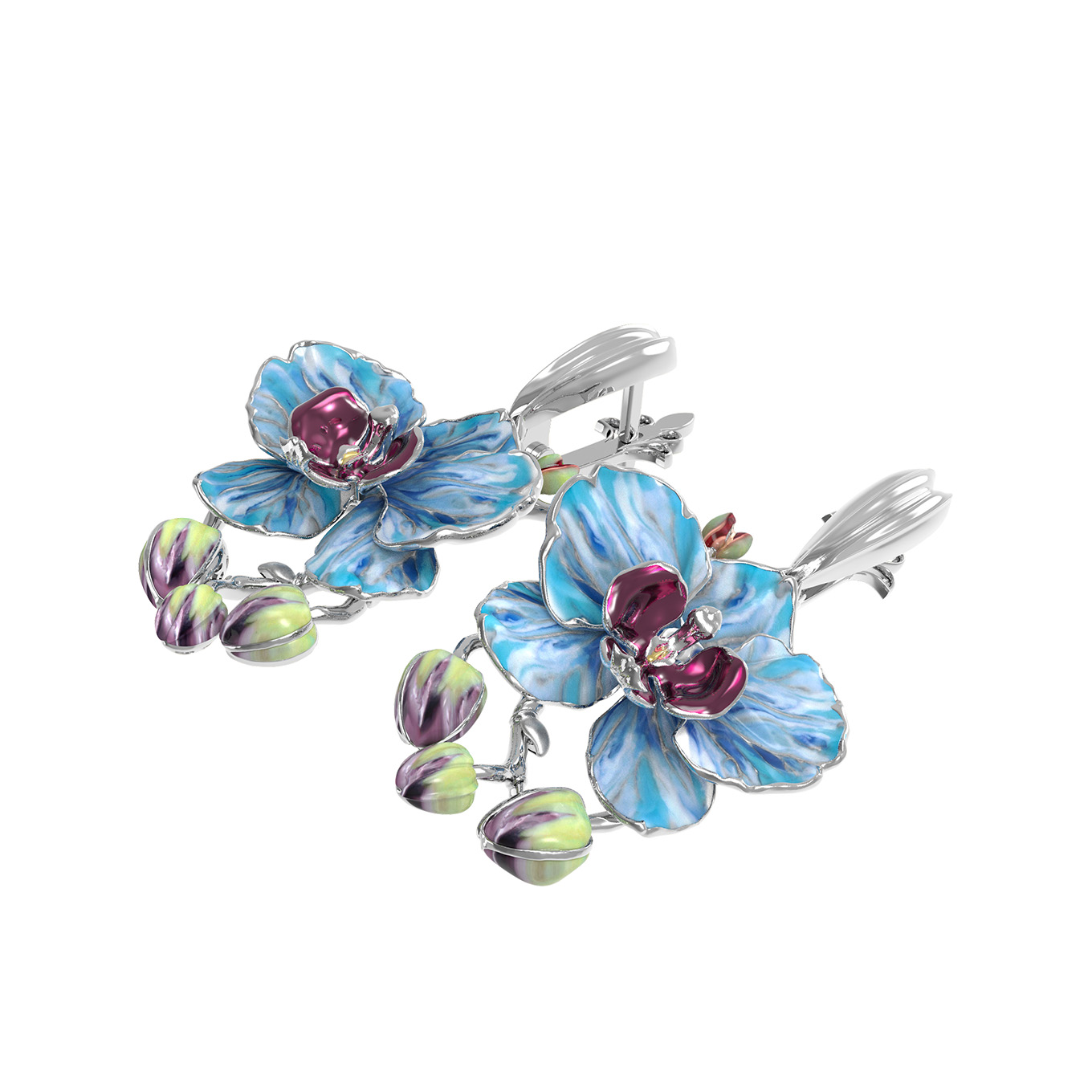Центральным элементом композиции стала художественная эмаль, выполненная в насыщенных и выразительных тонах. Разноцветная вставка создает эффект живого цветка, передавая переливы лепестков и глубину оттенков. Эти серьги — не просто украшение, а яркий аксессуар, который притягивает взгляд и завершает самый утонченный наряд.