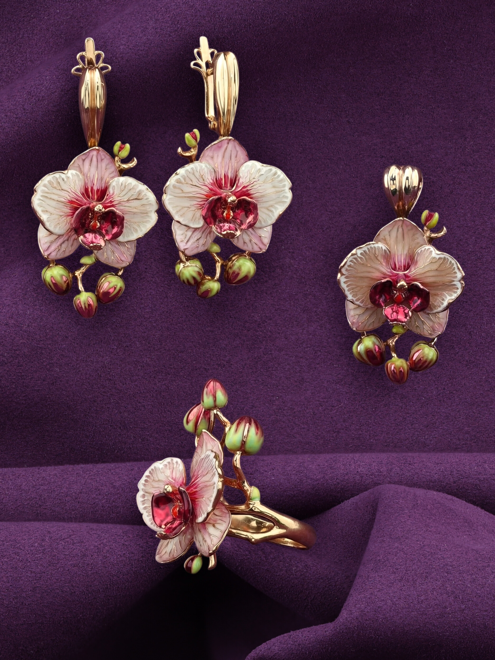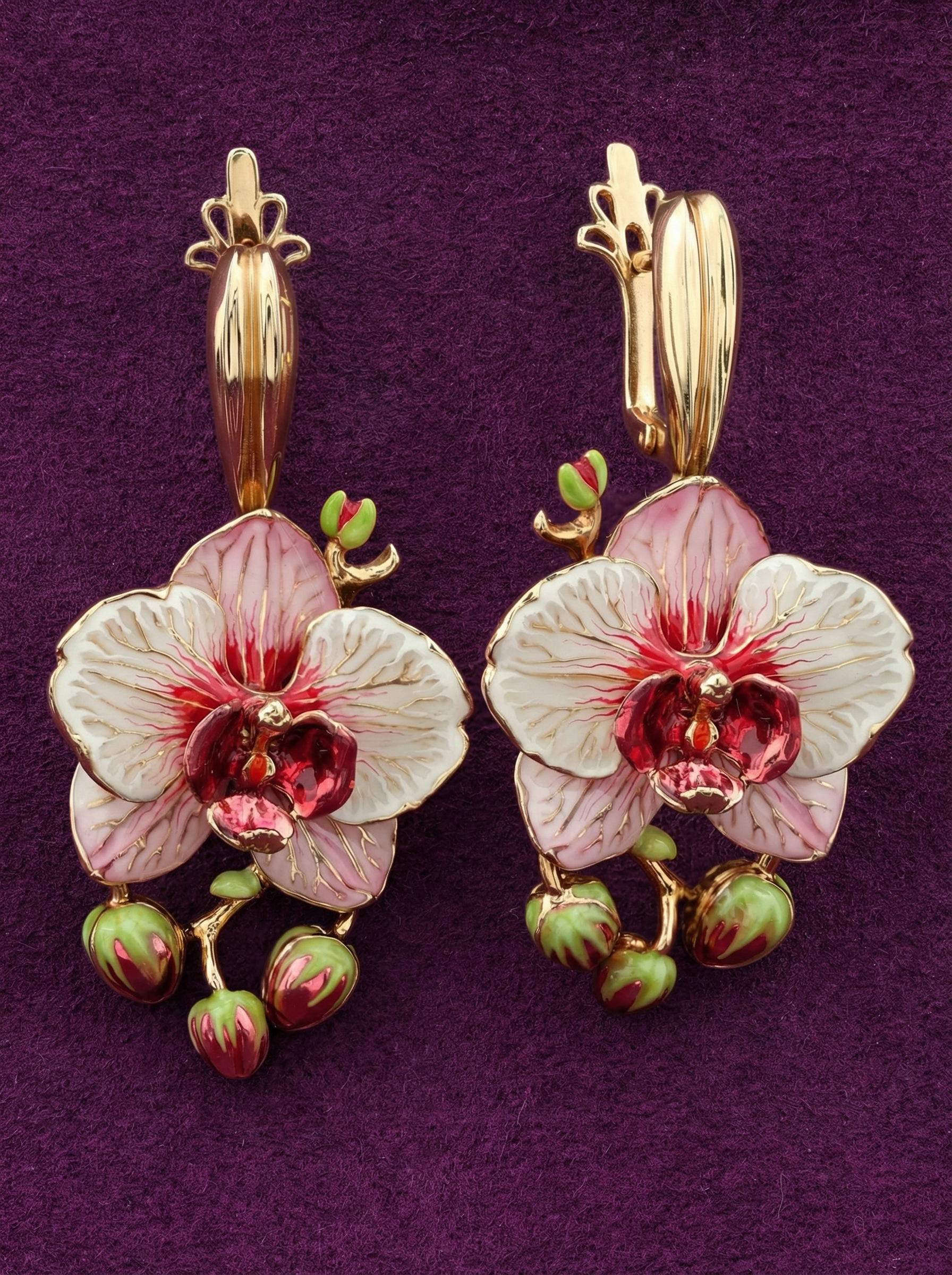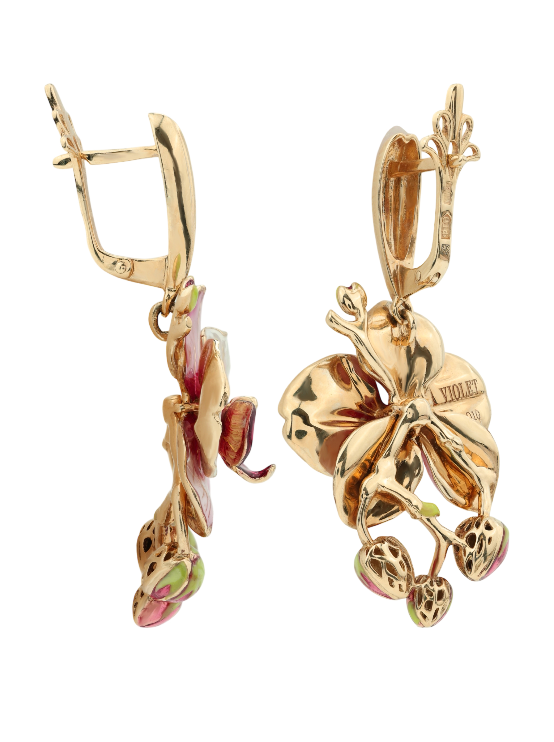 Серьги из красного золота 585 пробы c эмалью
