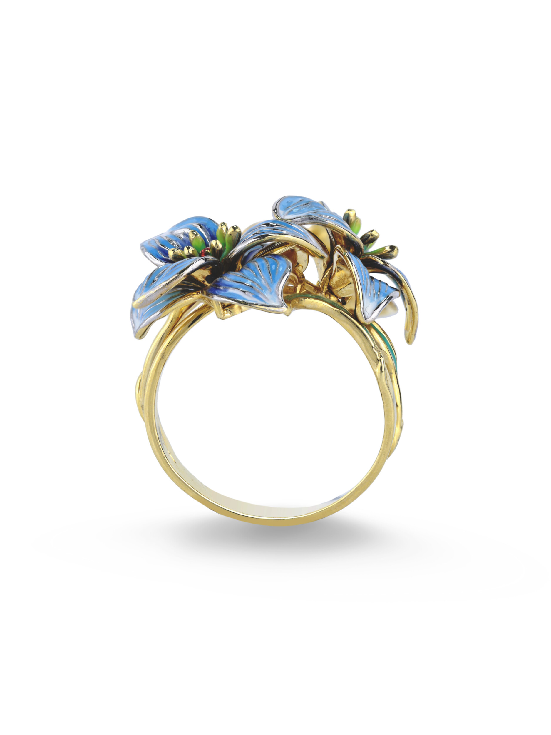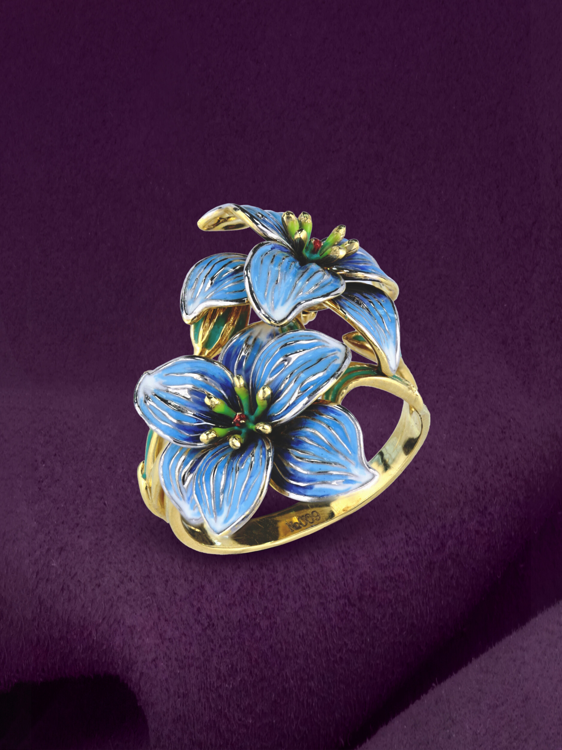 Кольцо из лимонного золота 585 пробы c эмалью