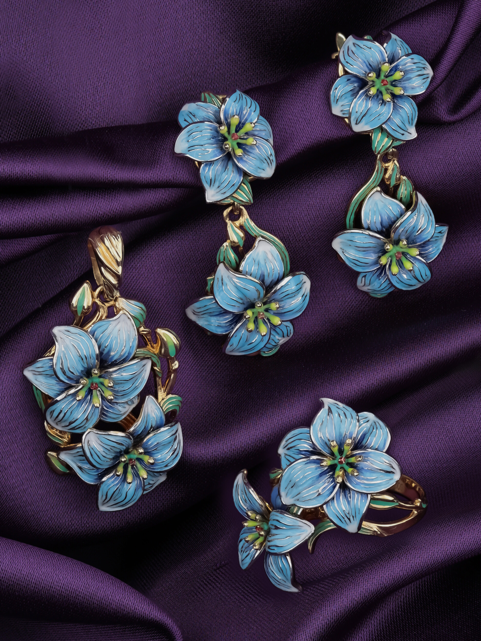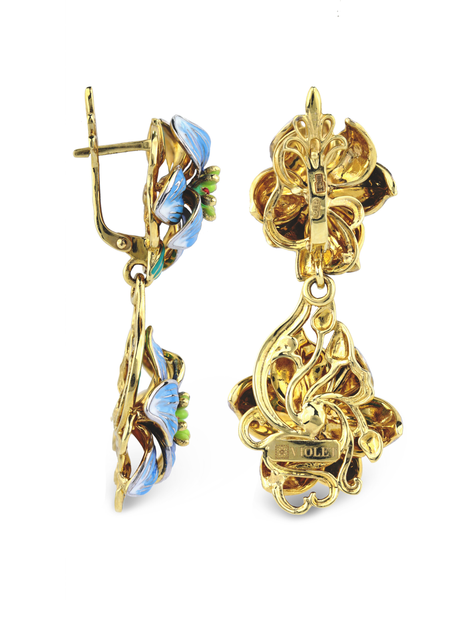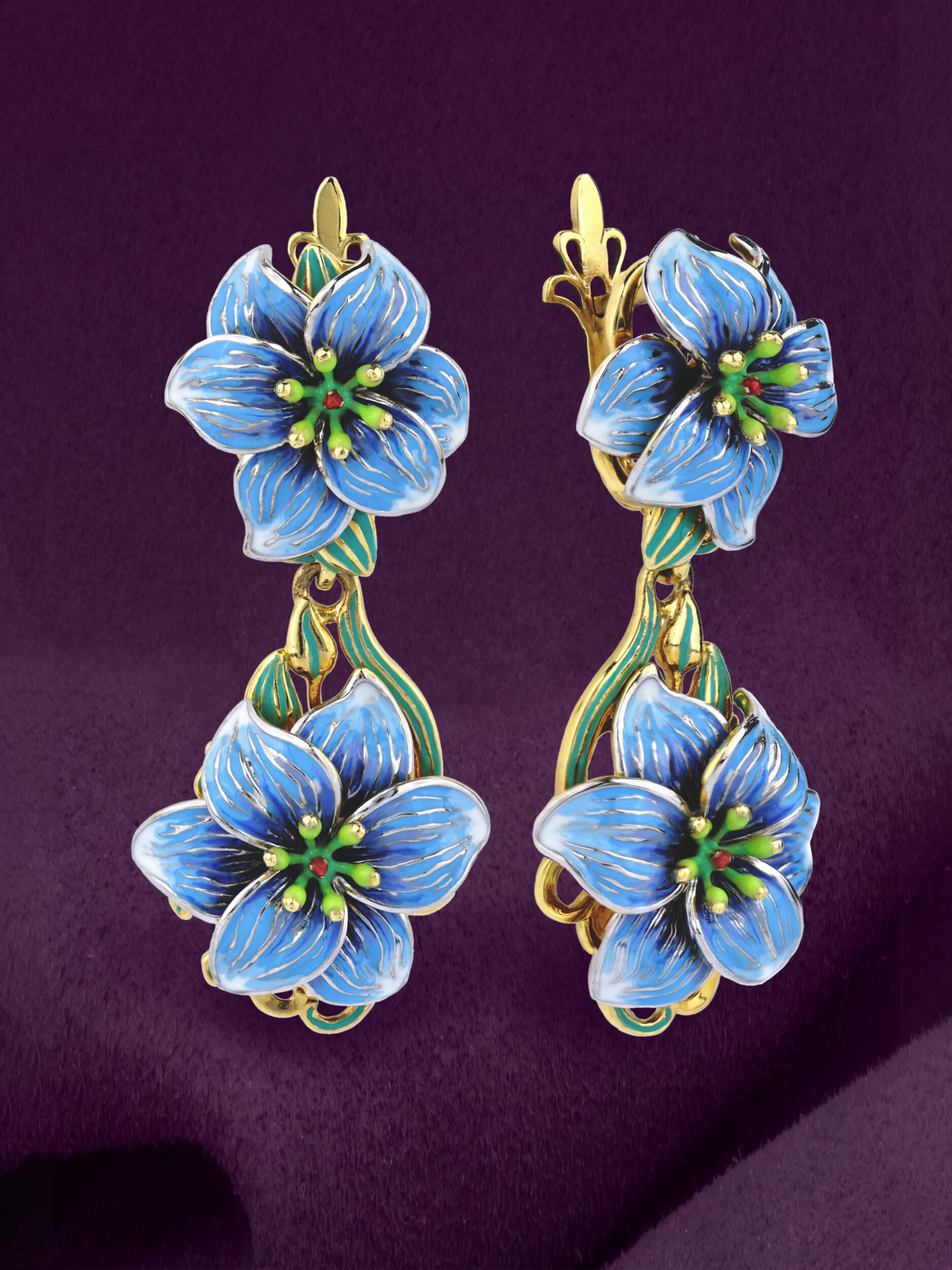 Разноцветная эмаль нанесена с высокой точностью, создавая яркие и насыщенные переходы, оживляющие лепестки и подчеркивающие изящество линий. Дизайн в виде цветов в сочетании с лимонным цветом материала создает гармоничную композицию, которая выглядит одновременно статусно и легко. Эти серьги созданы для тех, кто ценит в ювелирных украшениях индивидуальность и художественный подход.
