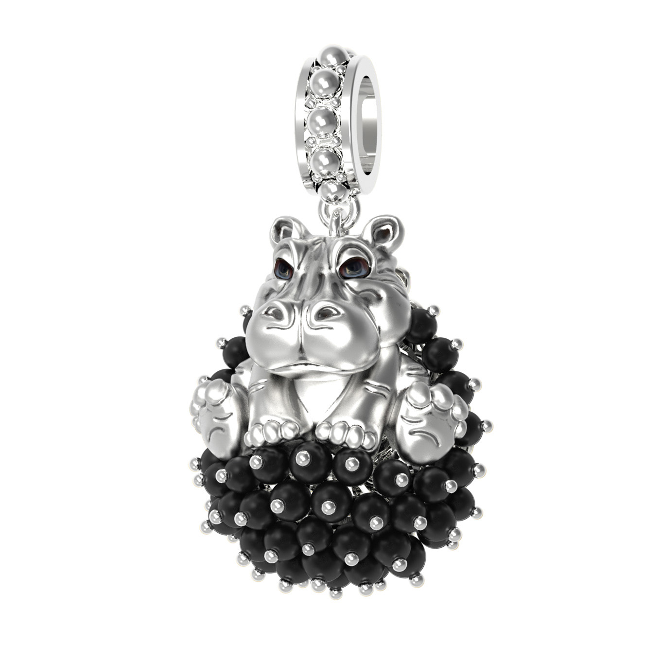 Оригинальная подвеска из белого золота 585 пробы из коллекции De luxe Premium — Бегемотик станет ярким акцентом в вашем образе. Дизайнерское украшение в виде симпатичного бегемотика выполнено с филигранной точностью и вниманием к деталям. Материал изделия — благородное белое золото, которое идеально сочетается с контрастными вставками. Дизайн с анималистическими мотивами дополнен эффектным декором из 42 вставок в форме бусин черного оникса, создающих выразительный объем и фактурность.