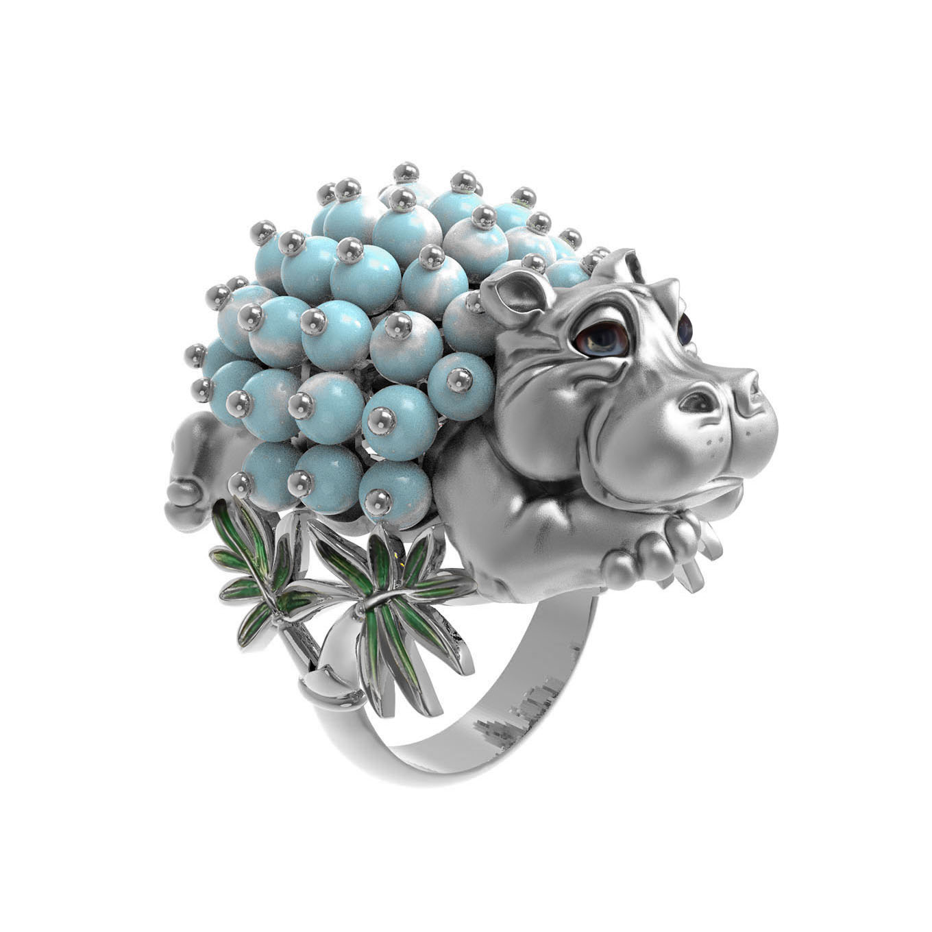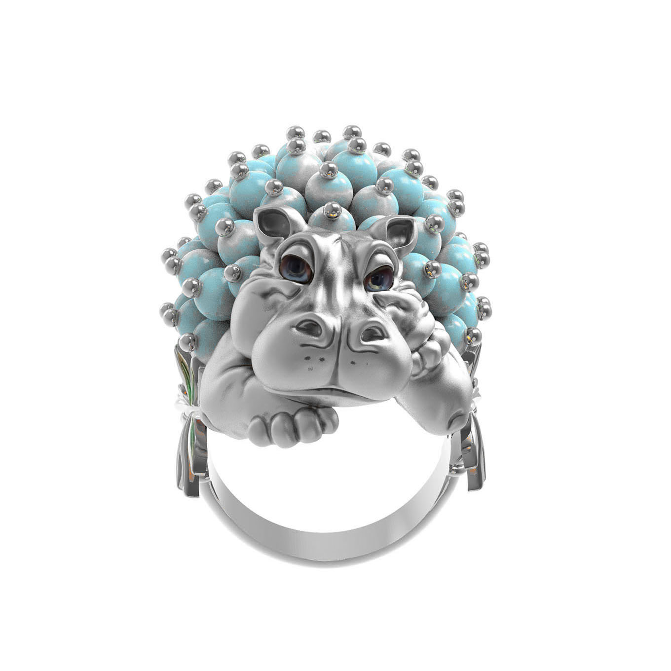 Оригинальное кольцо из белого золота 585 пробы из коллекции De luxe Premium — Бегемотик станет ярким акцентом вашего образа. Это необычное украшение выполнено в анималистичном стиле: дизайн в форме бегемотика притягивает взгляд своей детализацией и юмором. Аксессуар гармонично сочетает в себе холодный блеск драгоценного металла и нежные оттенки вставок.
