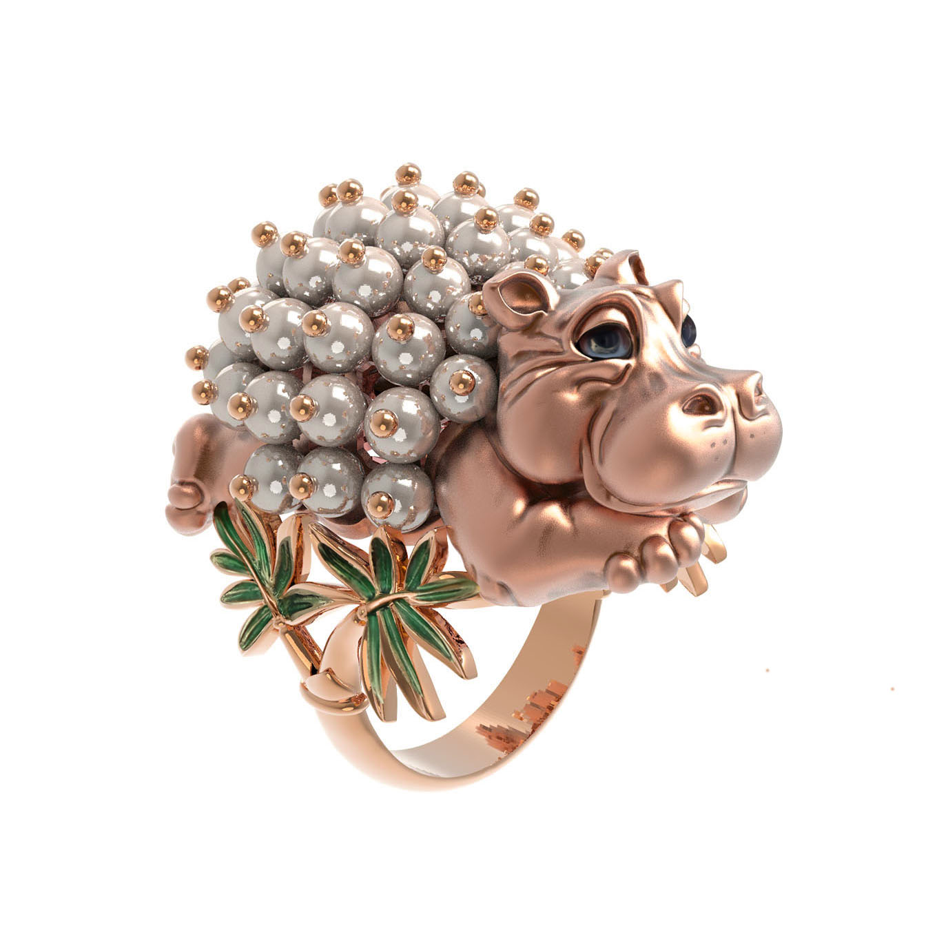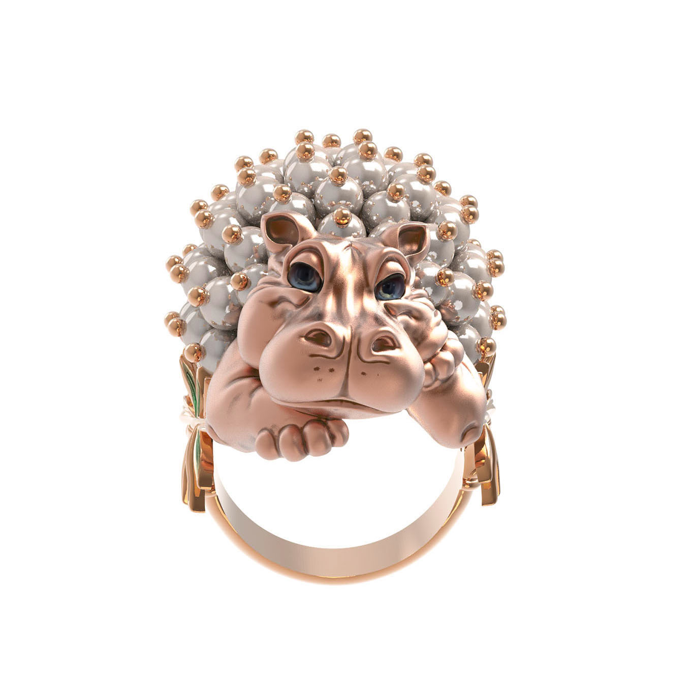 Кольцо из красного золота 585 пробы из коллекции De luxe Premium — Бегемотик — это ювелирное украшение для тех, кто ценит креативный дизайн и высокое мастерство исполнения. Центральный элемент изделия выполнен в форме очаровательного бегемотика, что придает украшению уникальный и запоминающийся характер. Детальная проработка персонажа в сочетании с качественными материалами делает это кольцо не просто аксессуаром, а настоящим произведением искусства.