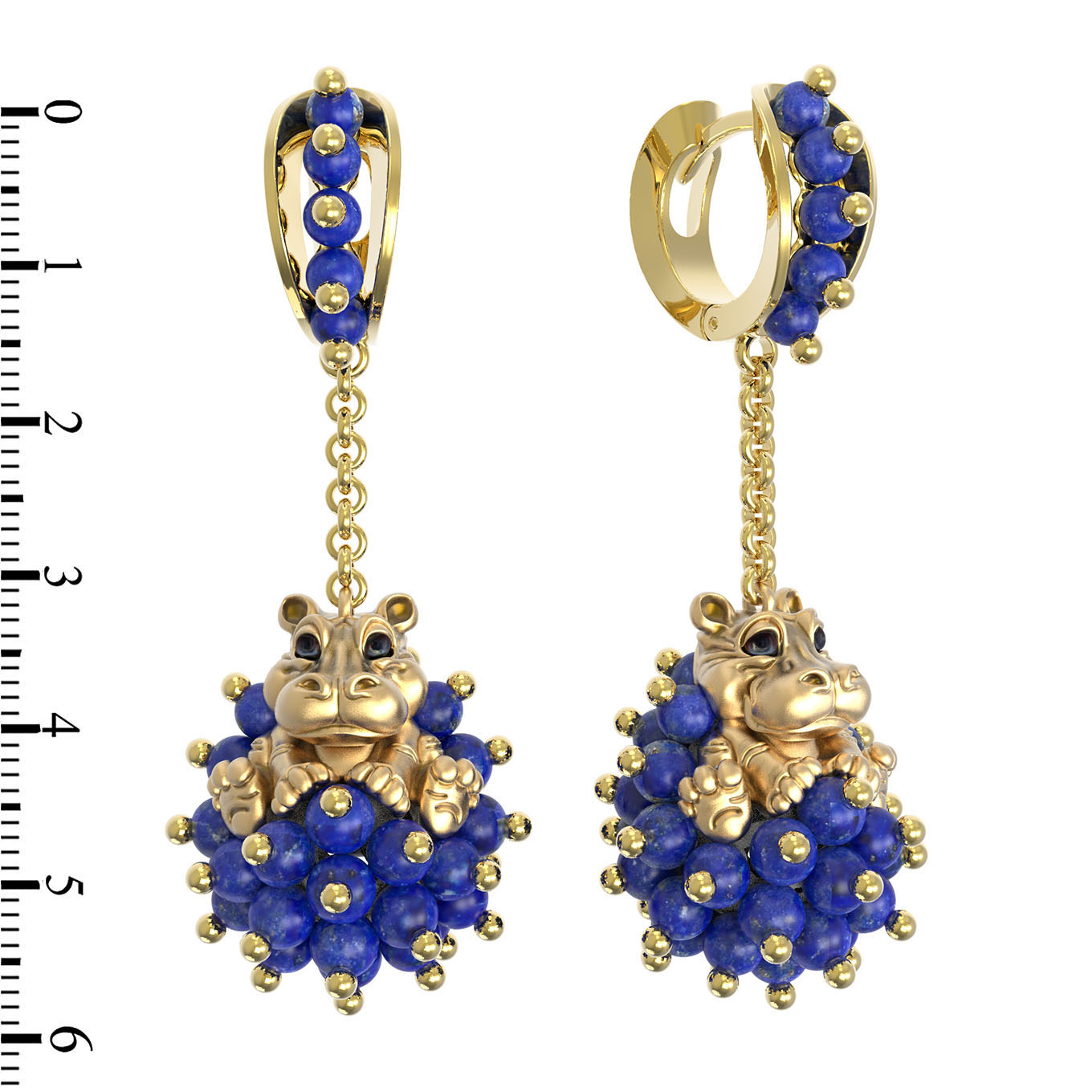 Серьги из лимонного золота 585 пробы c эмалью и лазуритом