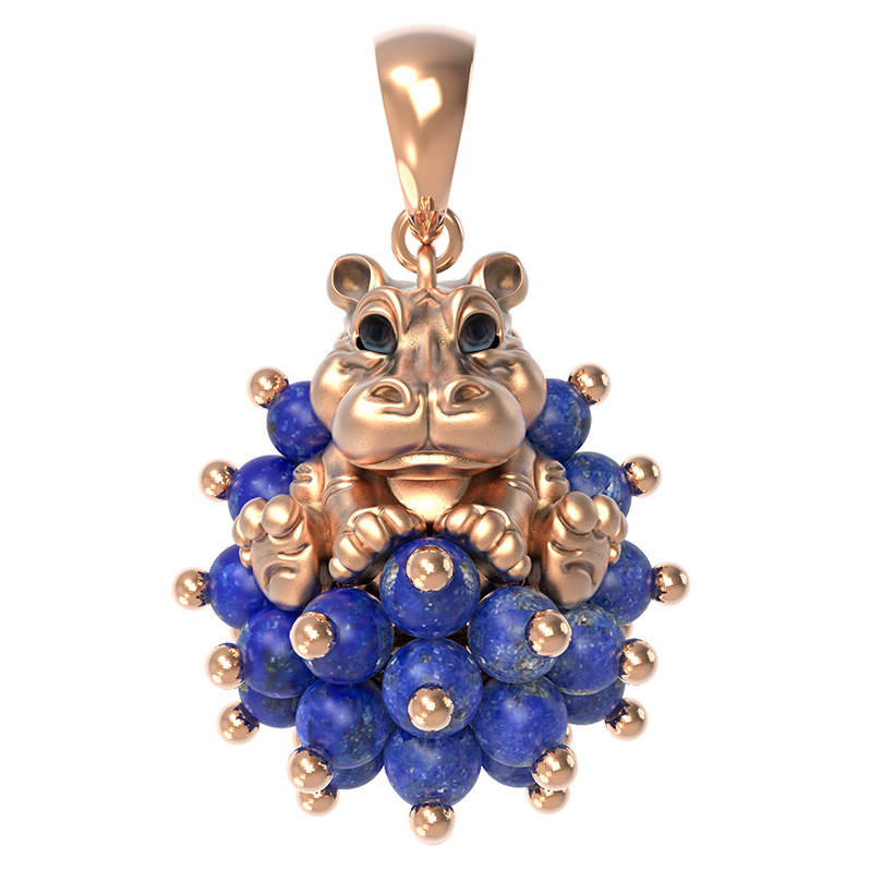 Подвеска из красного золота 585 пробы c эмалью и лазуритом