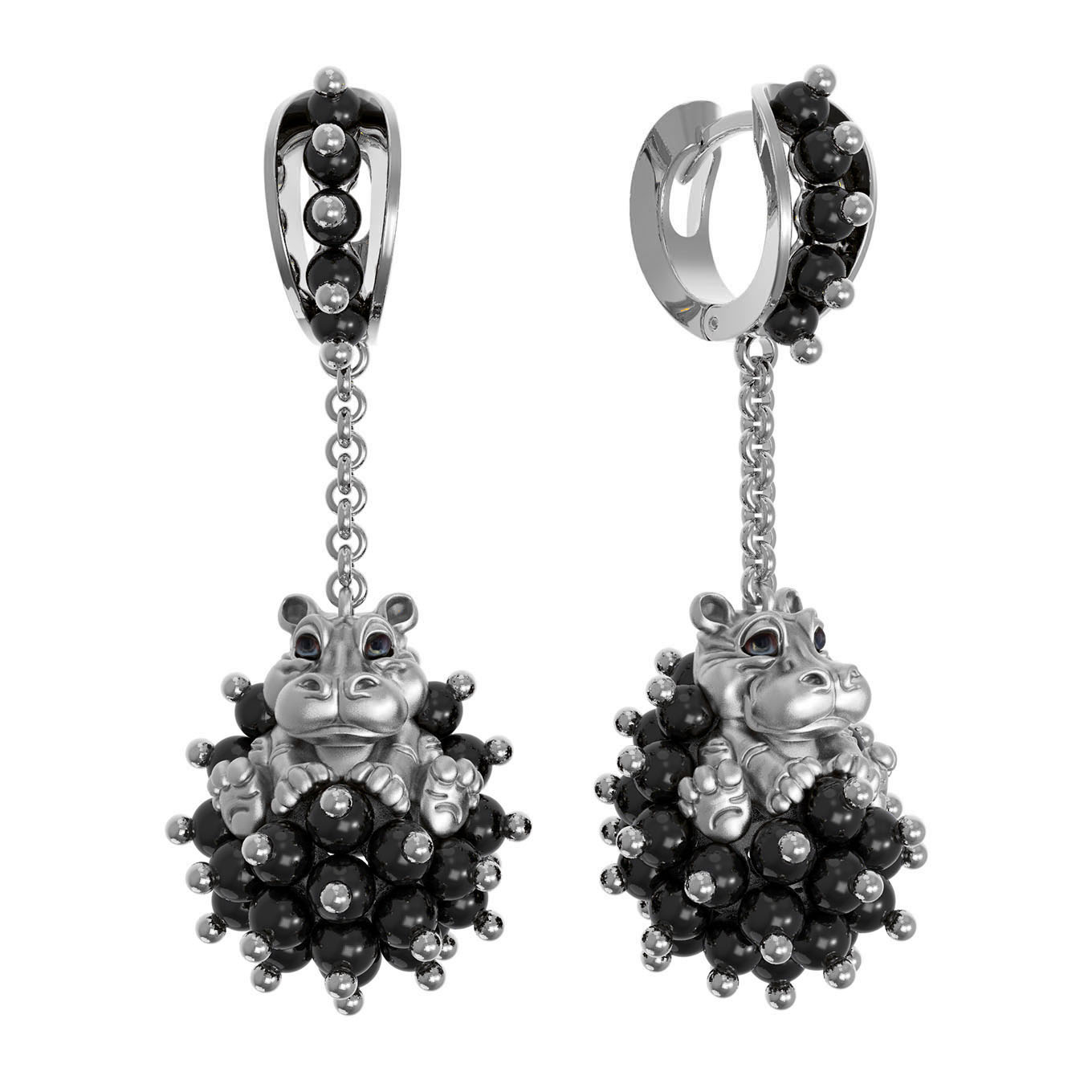 Серьги из белого золота 585 пробы c эмалью и ониксом