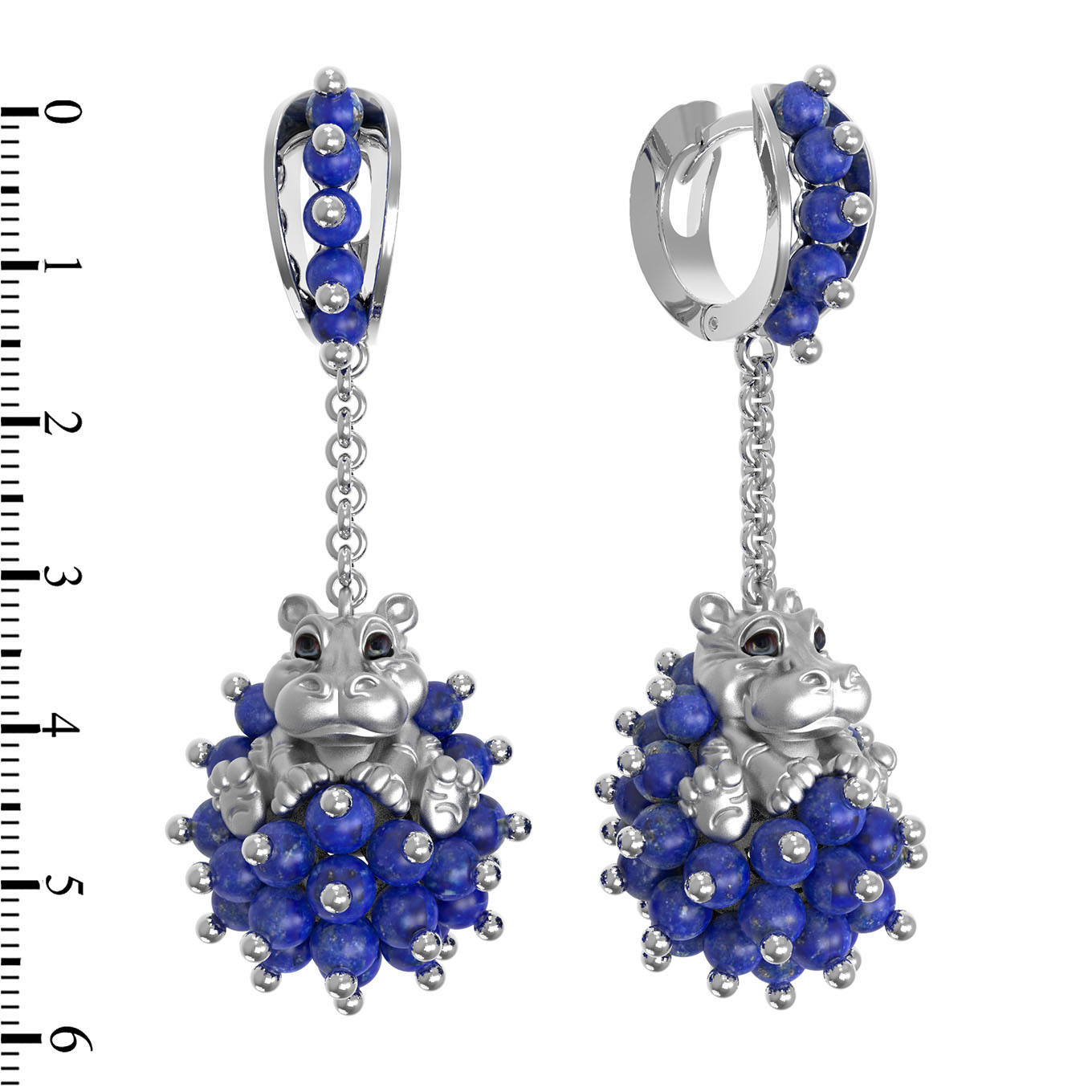 Серьги из белого золота 585 пробы c эмалью и лазуритом