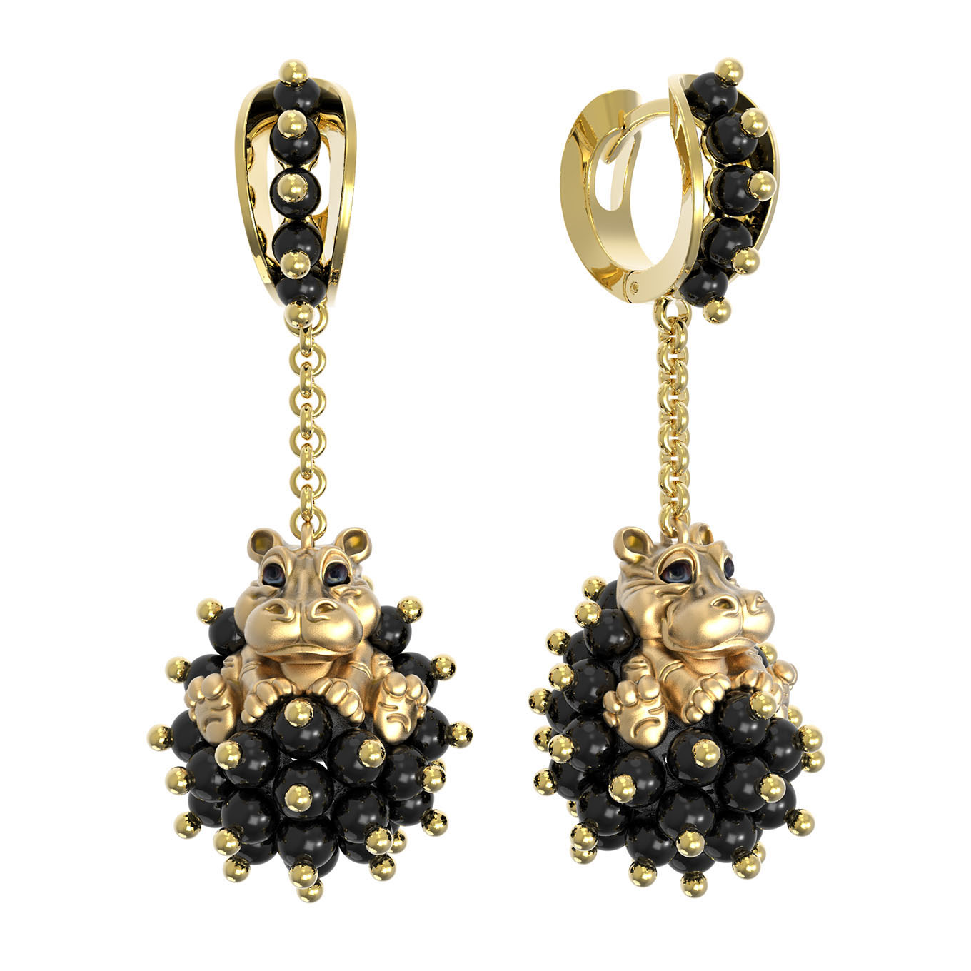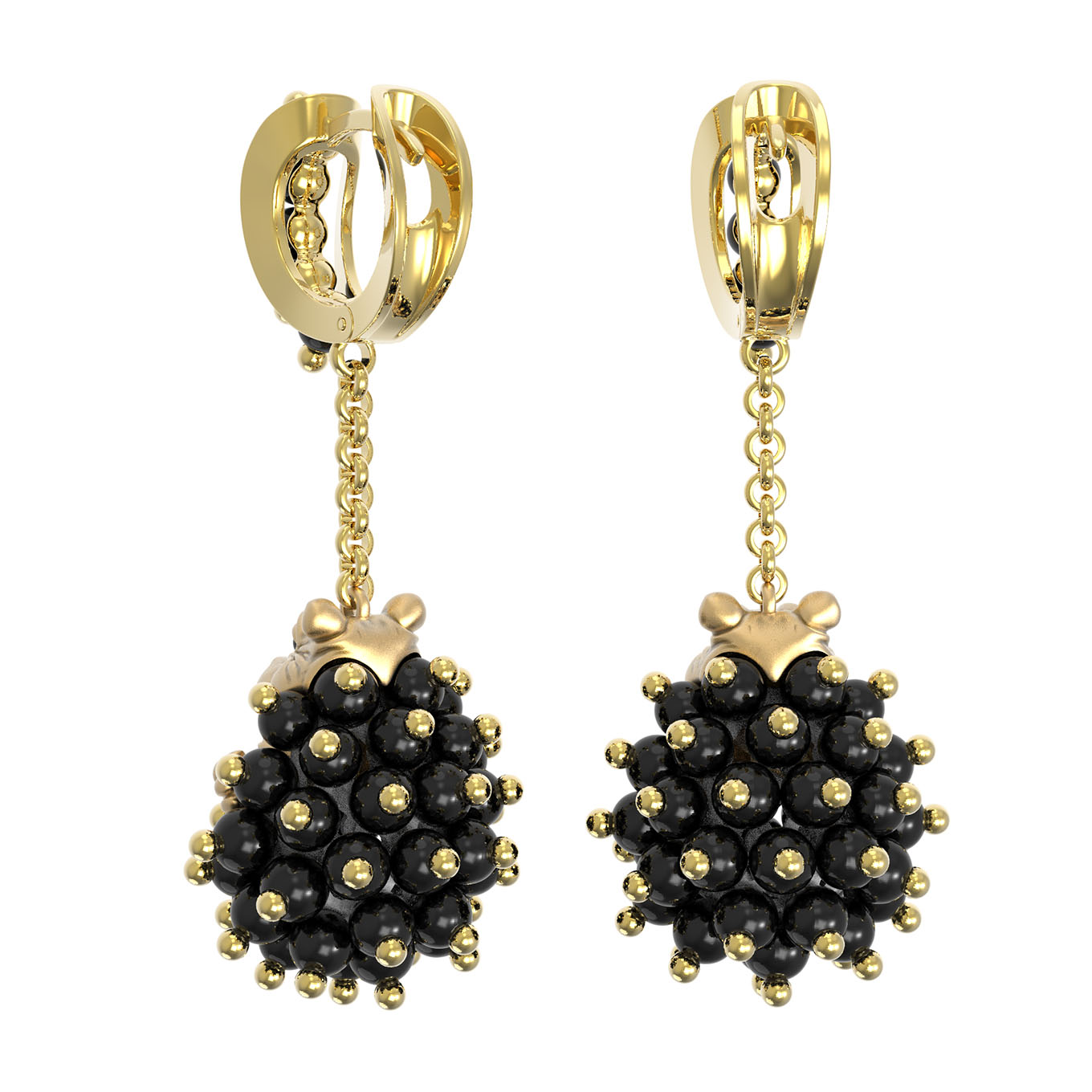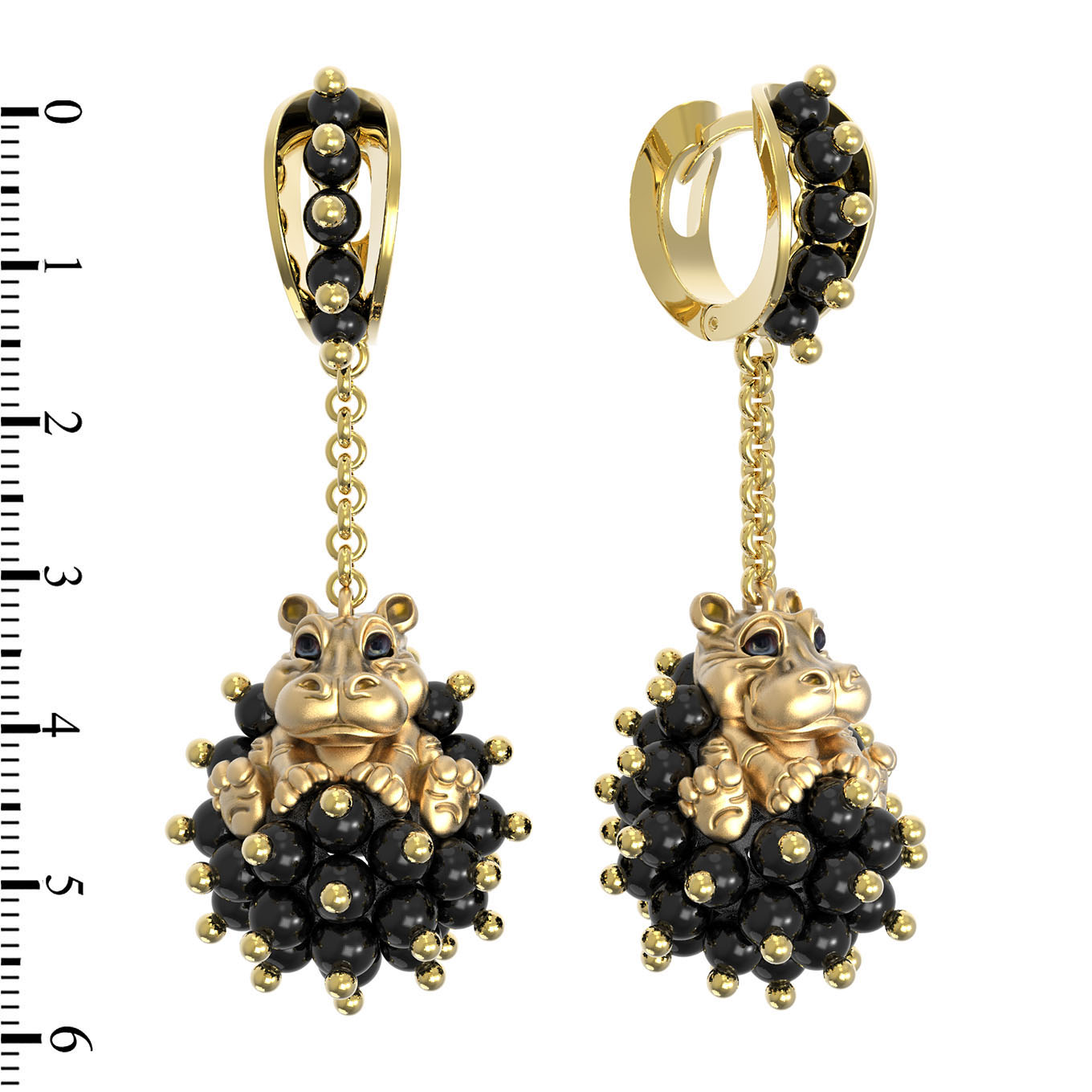 Серьги из лимонного золота 585 пробы c эмалью и ониксом