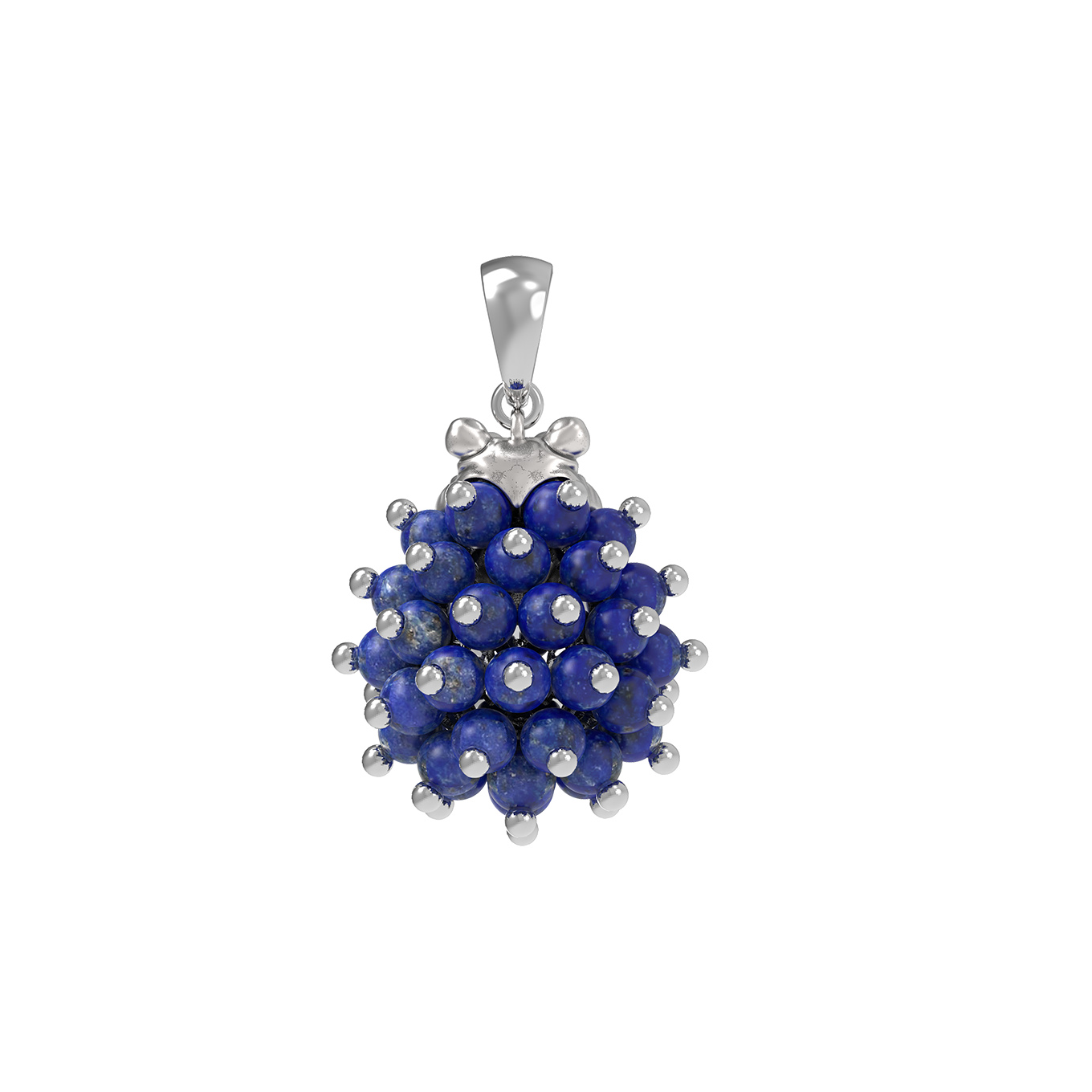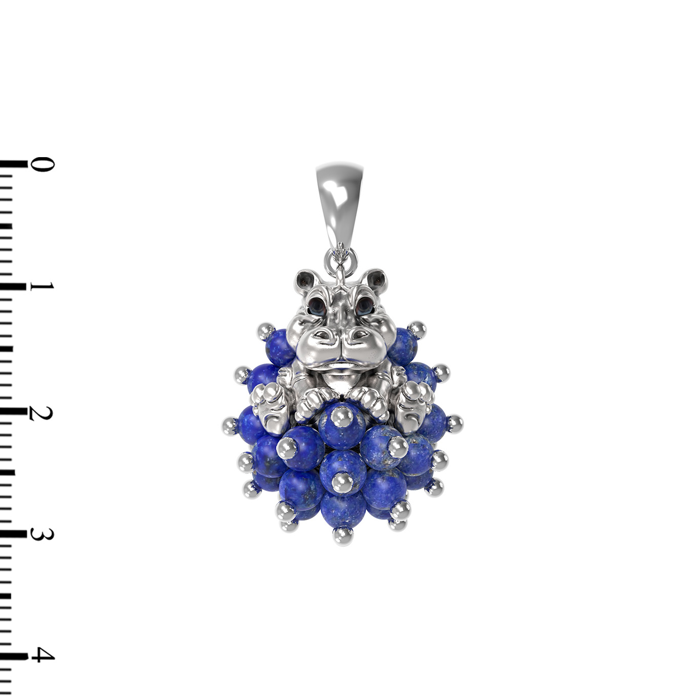 Мастерство исполнения подчеркивается сложной инкрустацией. Подвеска декорирована 55 вставками из натурального лазурита глубокого синего цвета, выполненными в форме гладких бусин. Контрастное сочетание холодного блеска белого золота и насыщенного оттенка камней создает завораживающий эффект. Дополнительную выразительность изделию придает детально проработанная цветная эмаль, расставляющая акценты на фигурке животного.