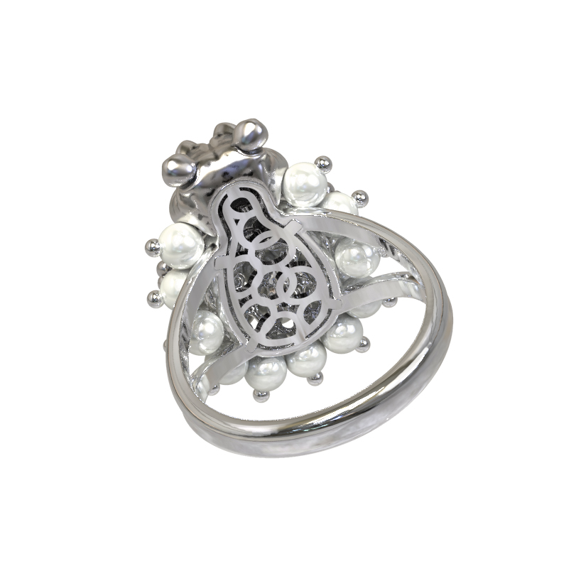 Кольцо из белого золота c эмалью и жемчугом