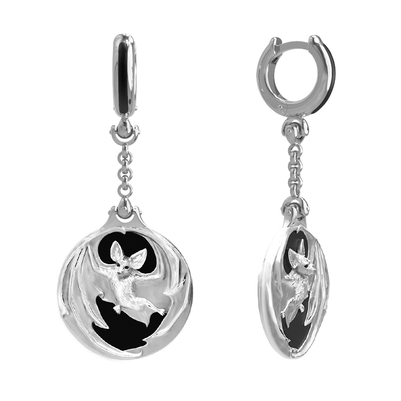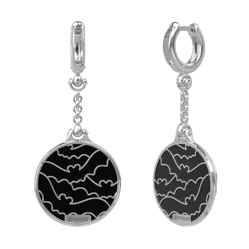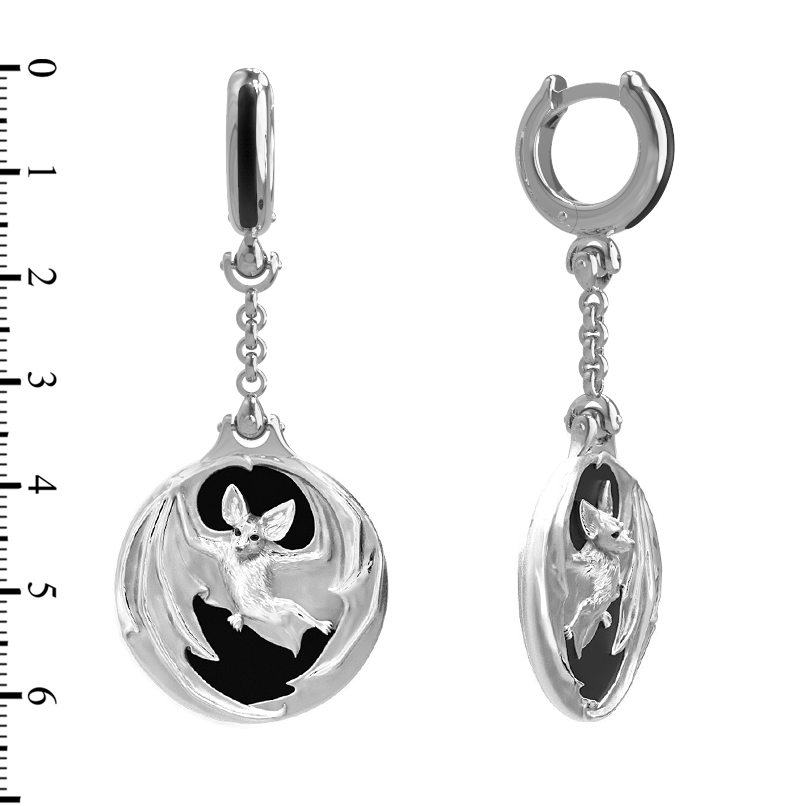 Серьги из белого золота 585 пробы c эмалью и ониксом