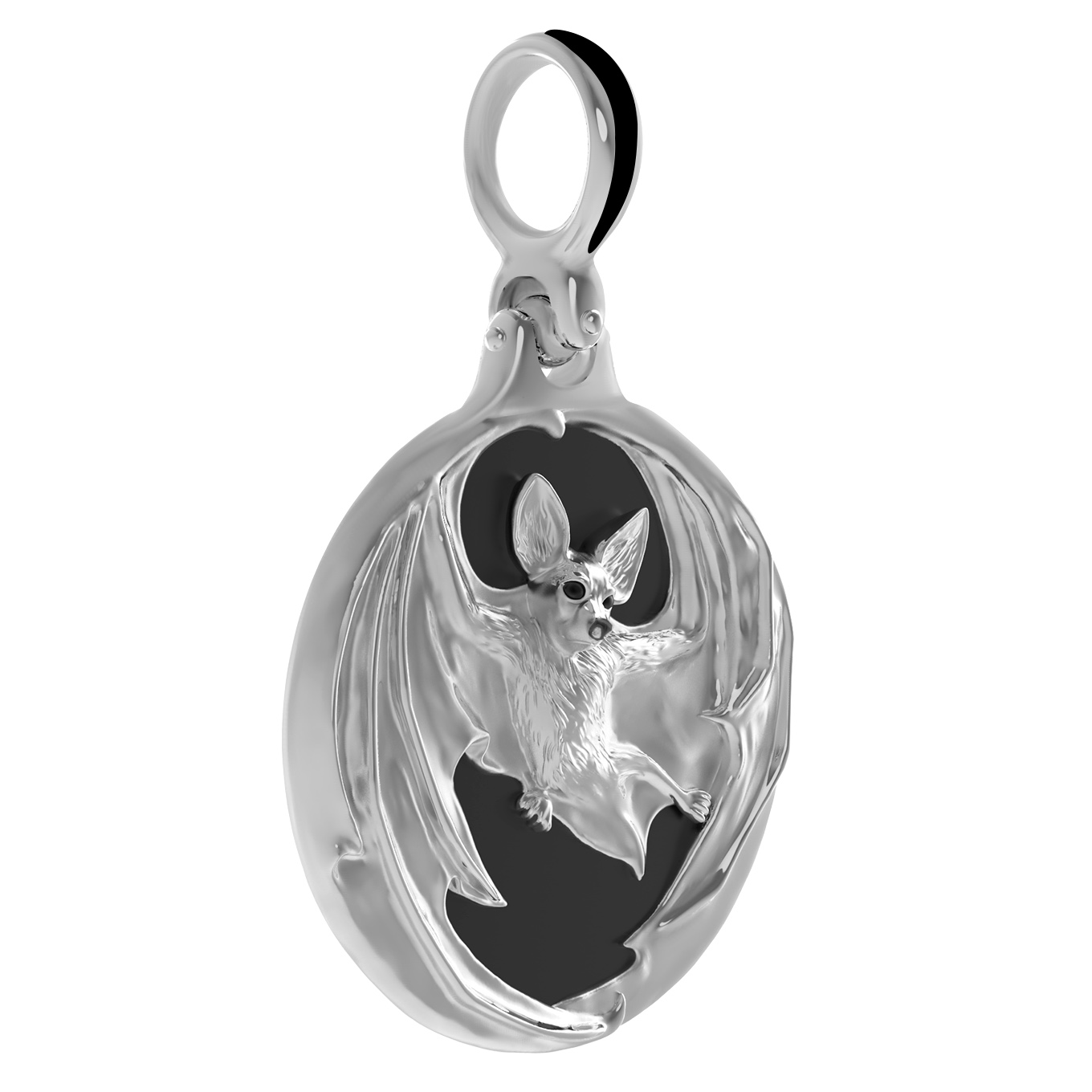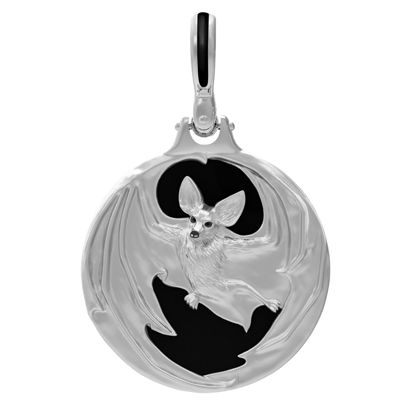 Мужская подвеска из белого золота 585 пробы — это сочетание смелого дизайна и благородных материалов. Изделие, представленное в коллекции De luxe Premium — Летучая мышь, сразу приковывает взгляд своей неординарной эстетикой. Центральным элементом украшения является искусная фигура летучей мыши, выполненная с высокой детализацией, которая парит на фоне контрастной черной вставки. Ювелирная эмаль и глубокий оттенок оникса круглой формы подчеркивают строгость и мужественность образа, создавая эффектный акцент.