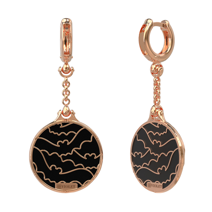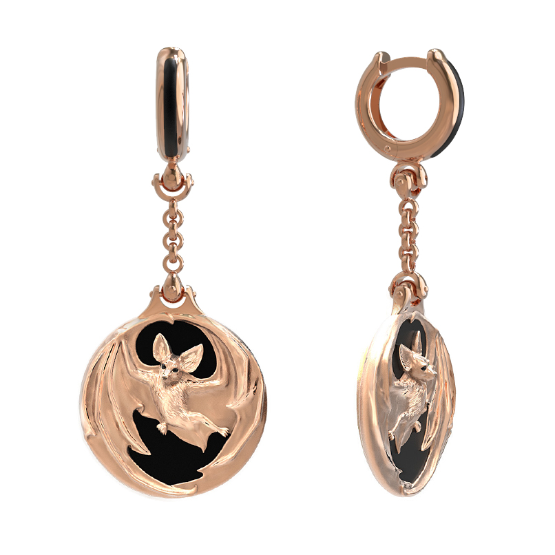 Эффектные серьги из красного золота 585 пробы из коллекции De luxe Premium — Летучая мышь станут выразительным акцентом в вашем образе. Дизайнерское исполнение модели вдохновлено образом летучей мыши, что придает украшению загадочный и притягательный характер. Ювелирная композиция построена на контрастном сочетании благородного металла и вставок из черной эмали и круглого оникса. Глубокий черный цвет вставок подчеркивает сияние золота и детализацию фигурного элемента, создавая гармоничный и завершенный вид.