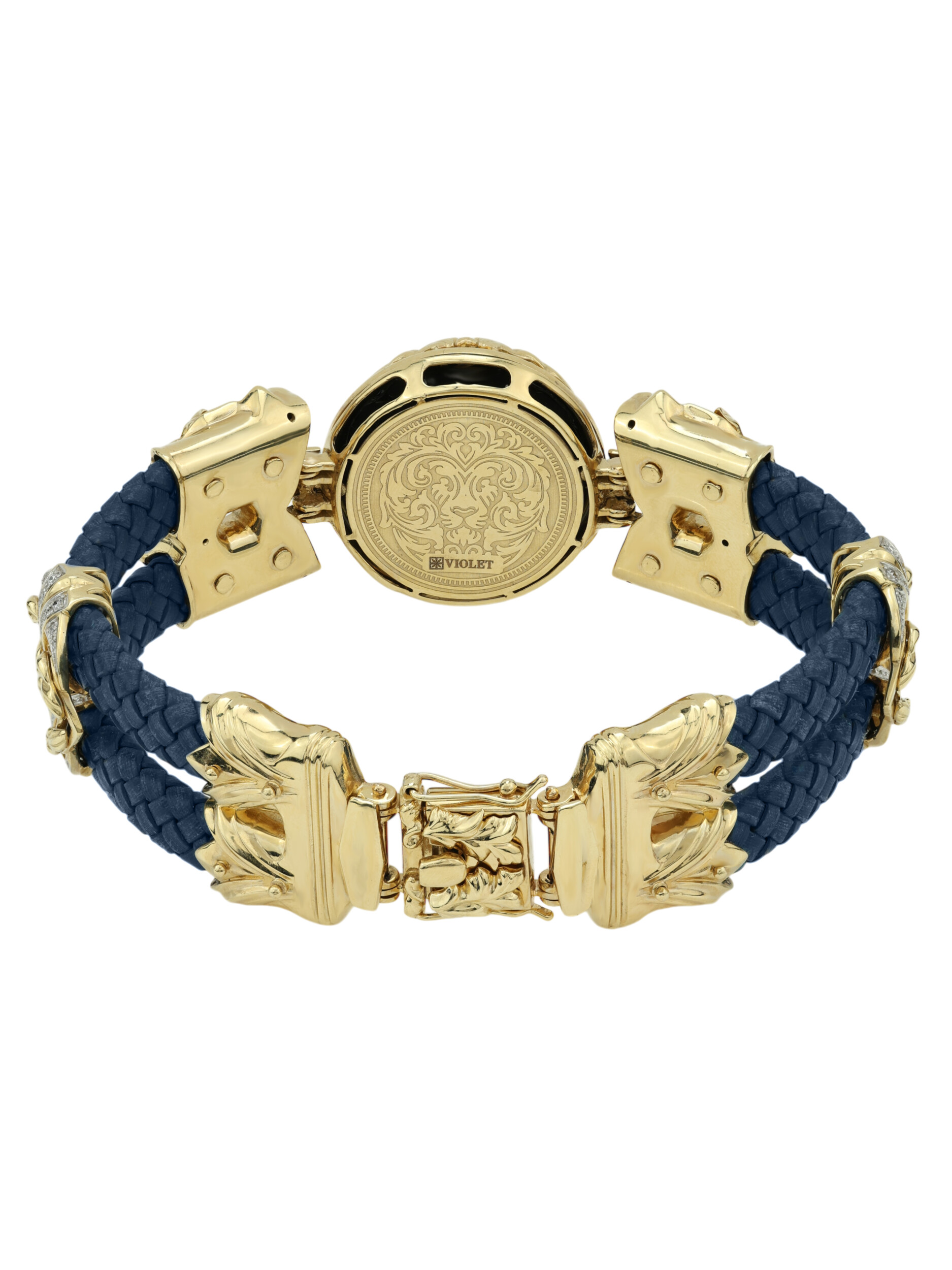 Браслет из лимонного золота 585 пробы c эмалью, бриллиантами, кожаным шнурком и ониксом