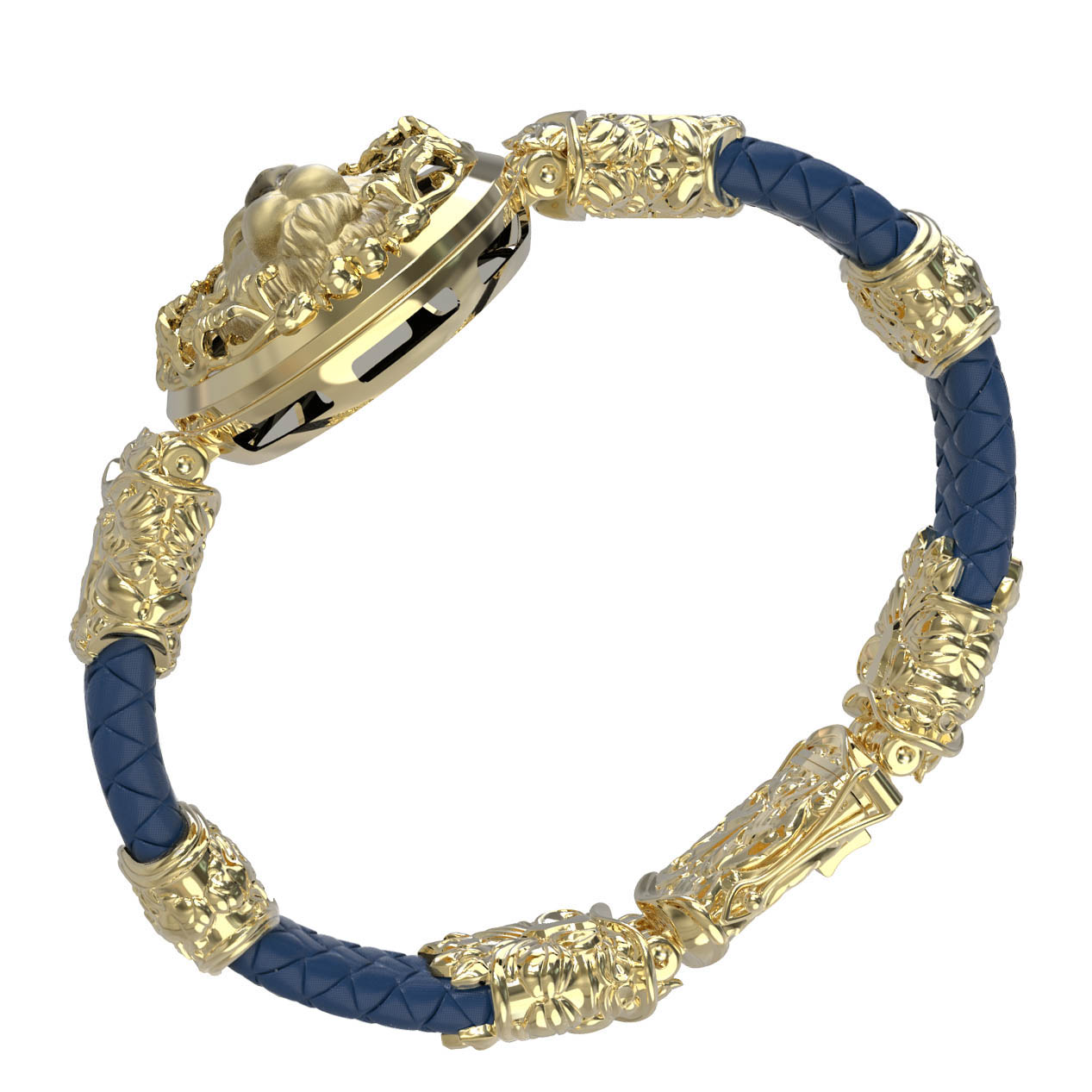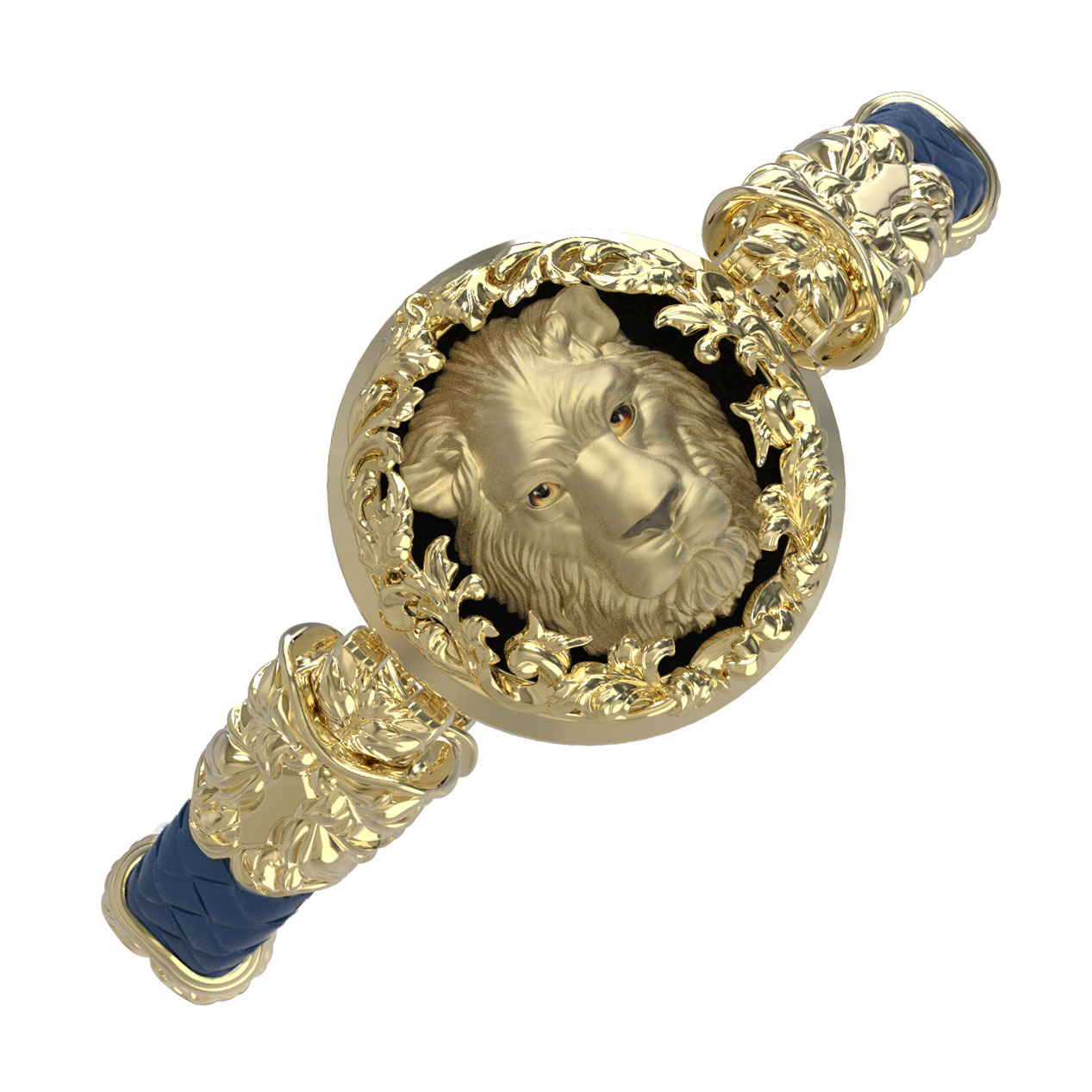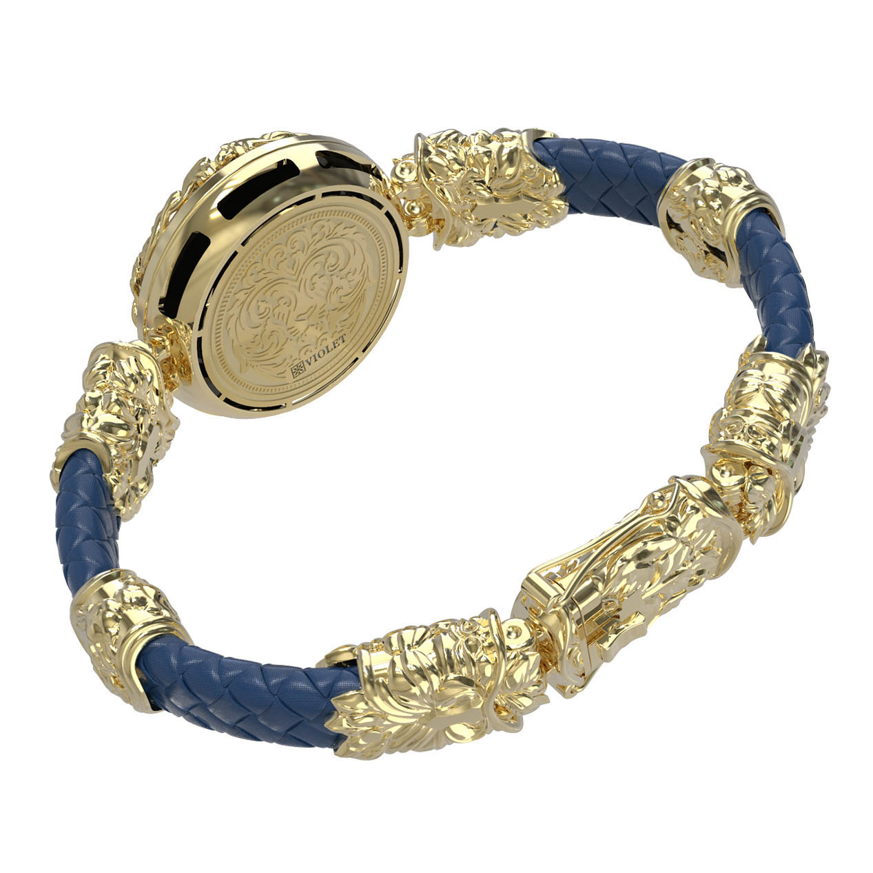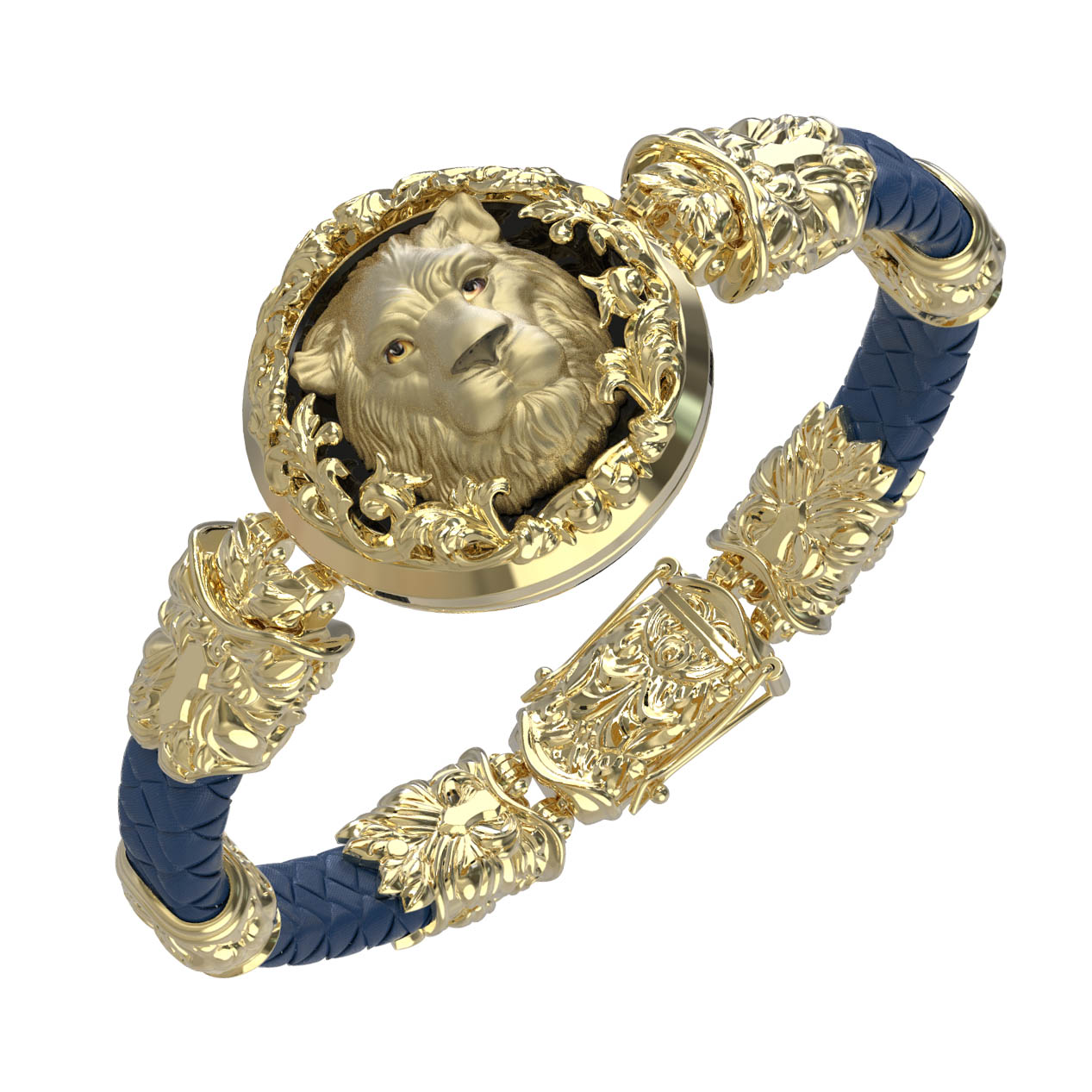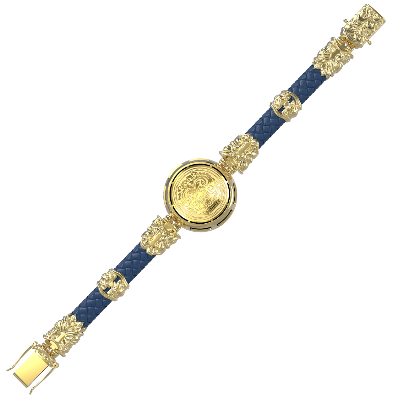 Браслет из лимонного золота 585 пробы c эмалью, кожаным шнурком и ониксом
