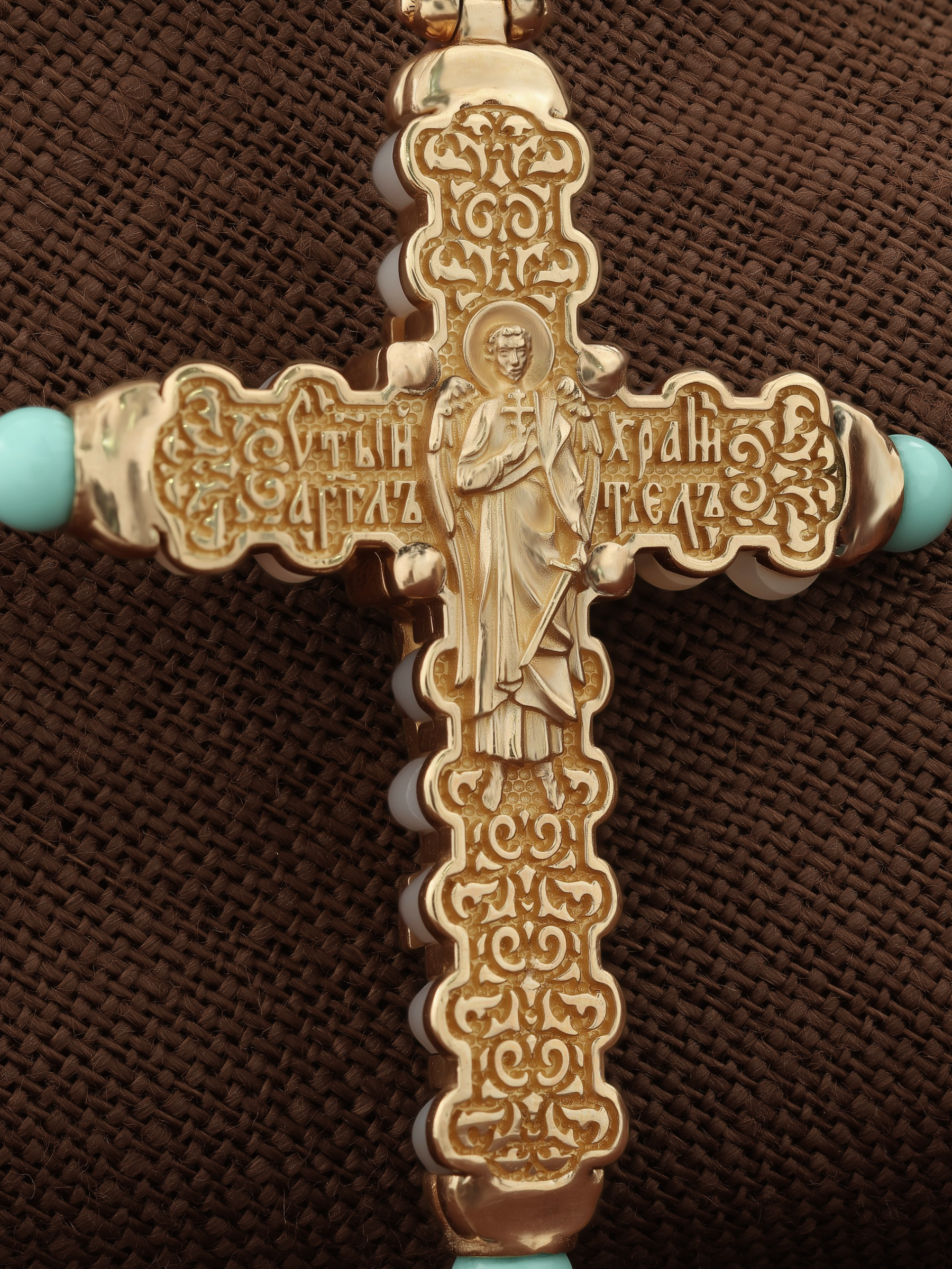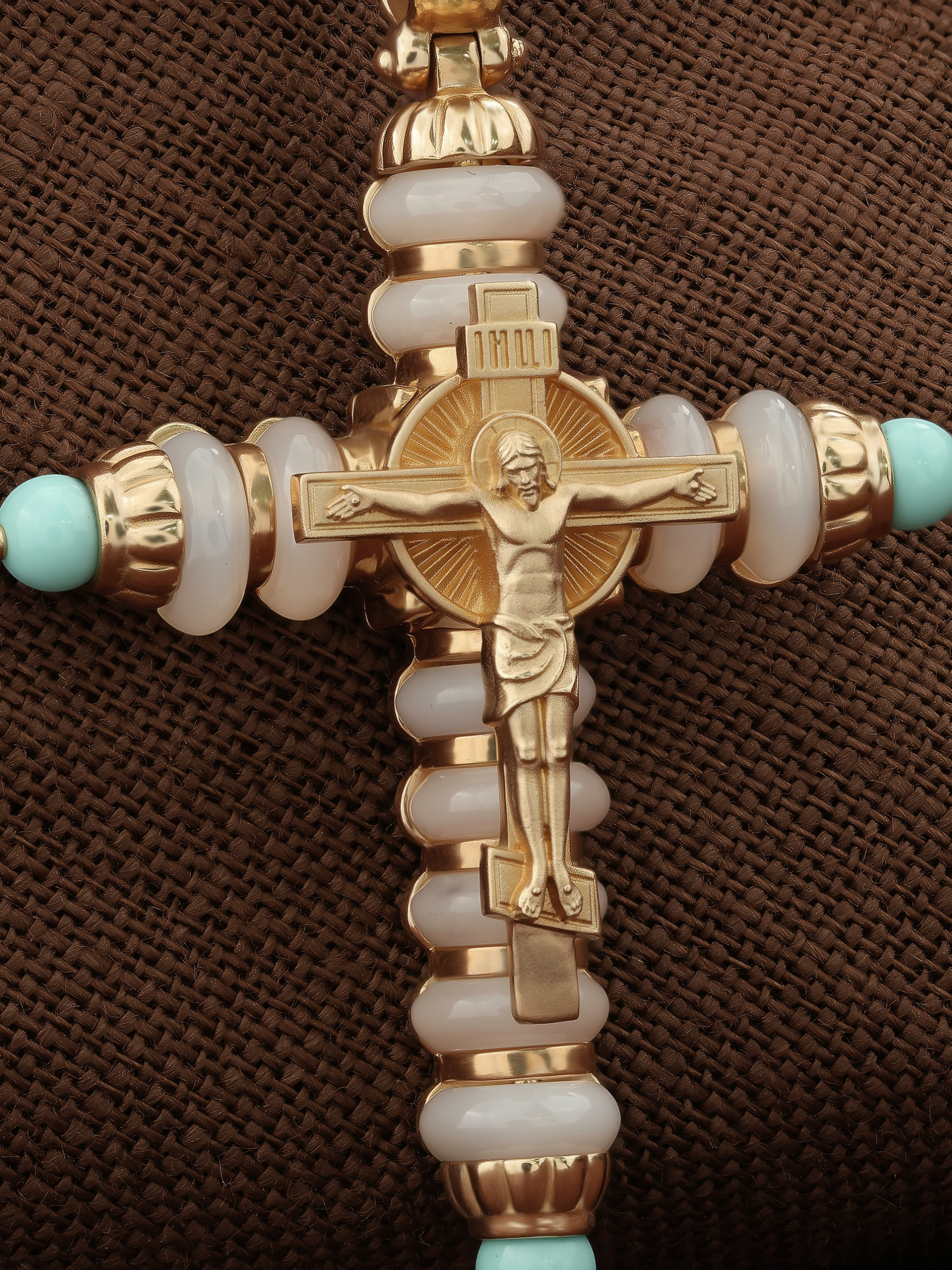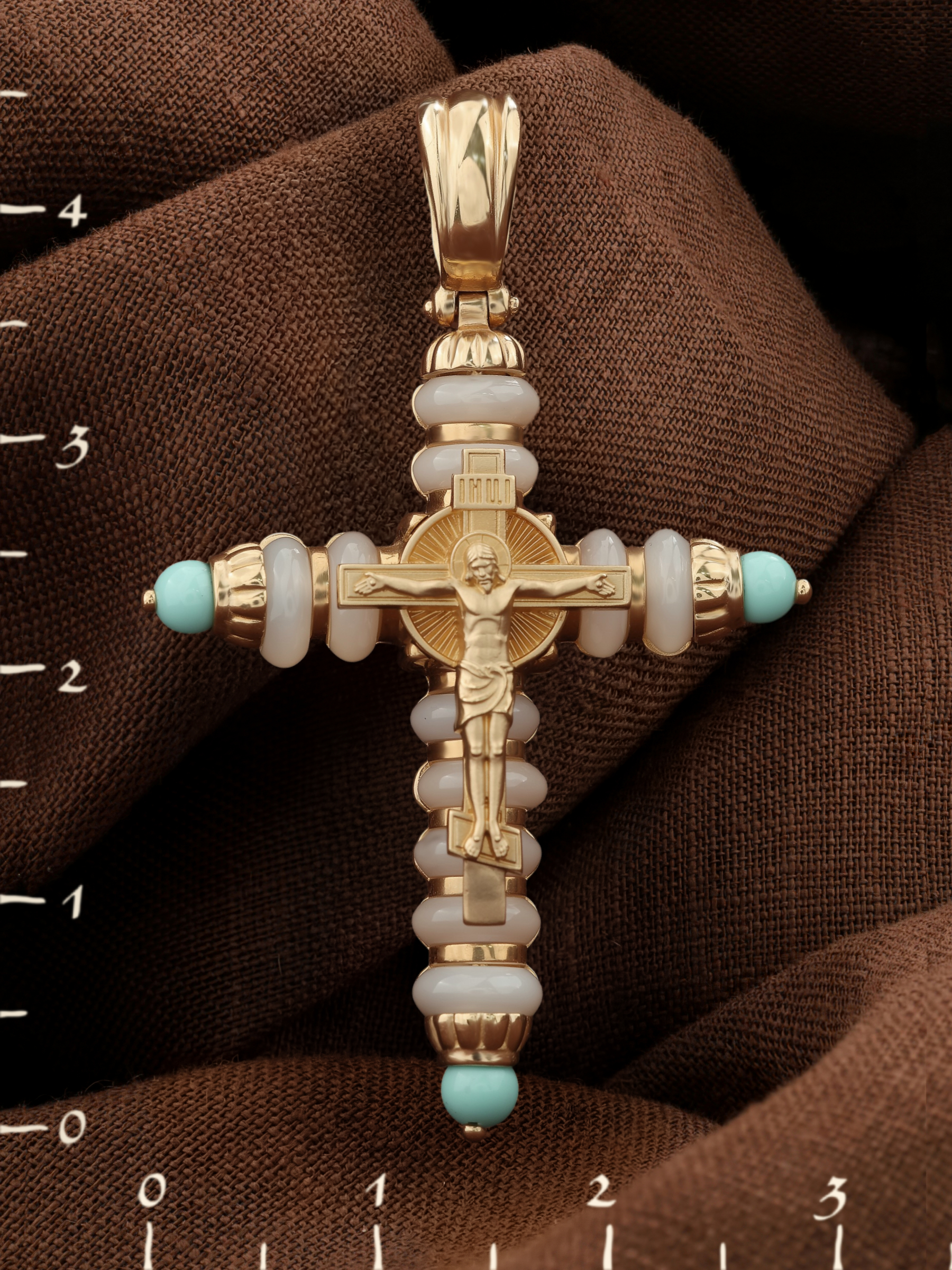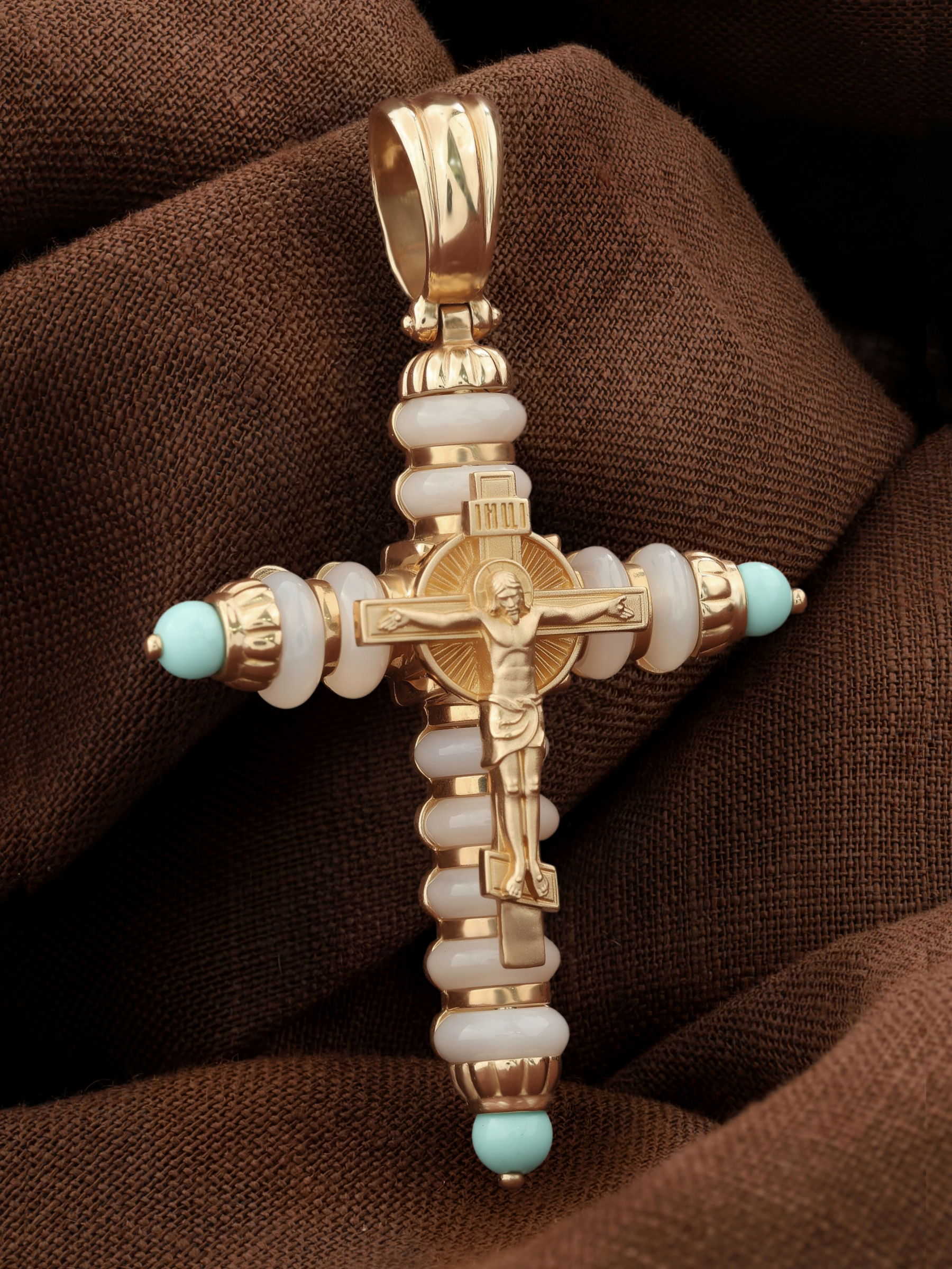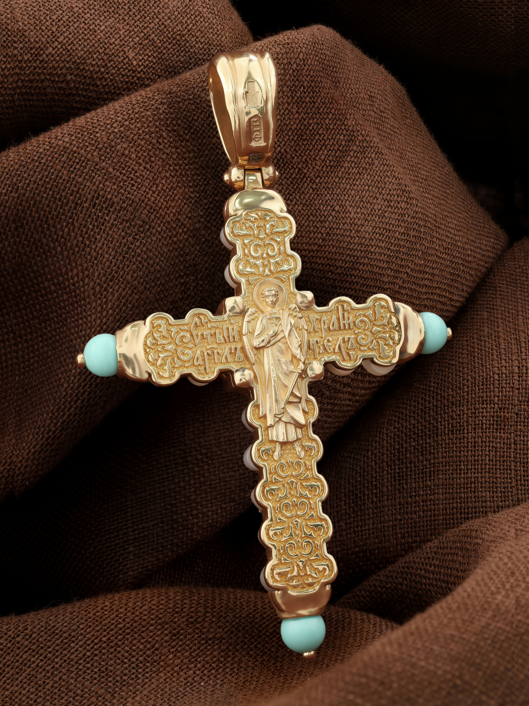 Крест из золота c бирюзой и кахолонгом