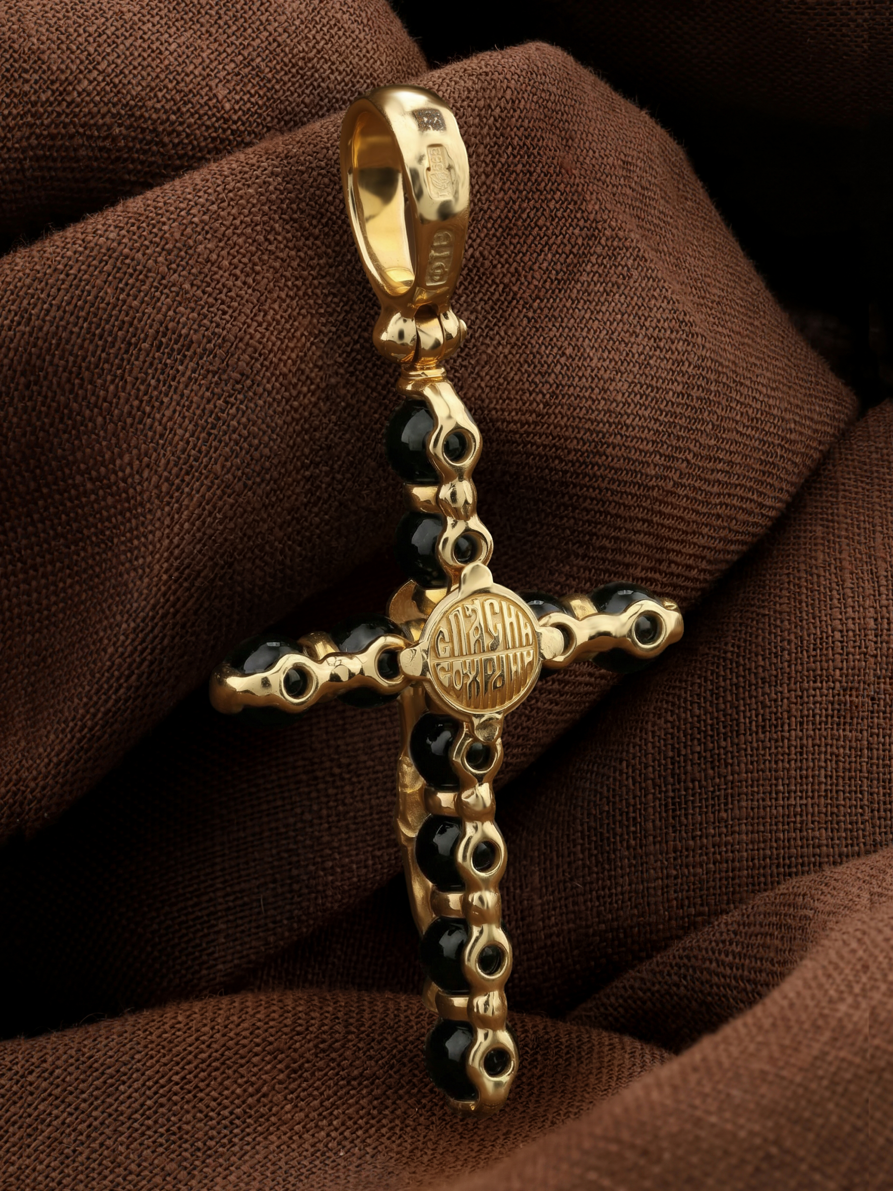 Крест из лимонного золота c ониксом