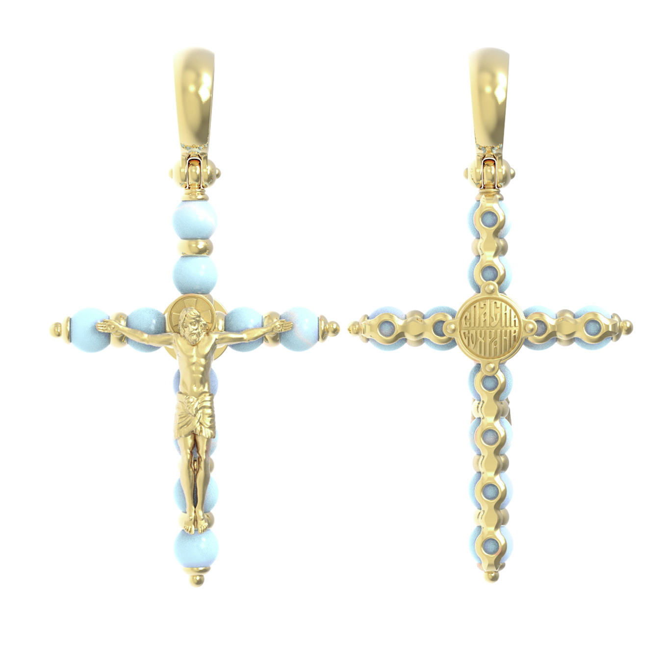 Крест из лимонного золота 585 пробы c бирюзой