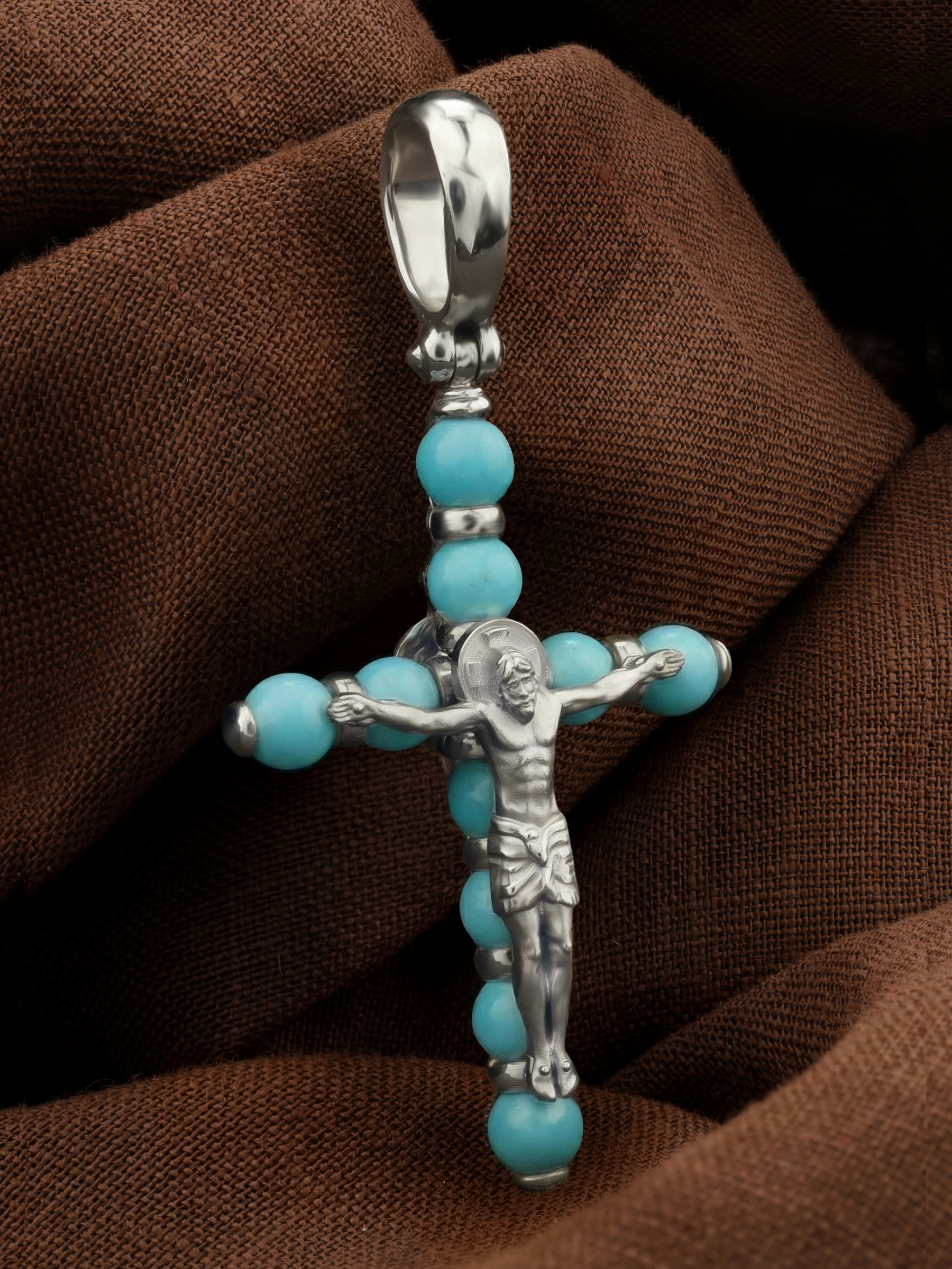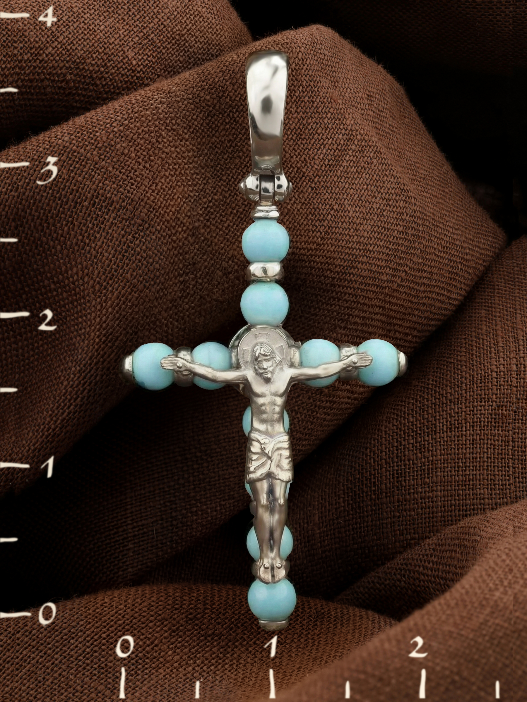 Крест из белого золота c бирюзой