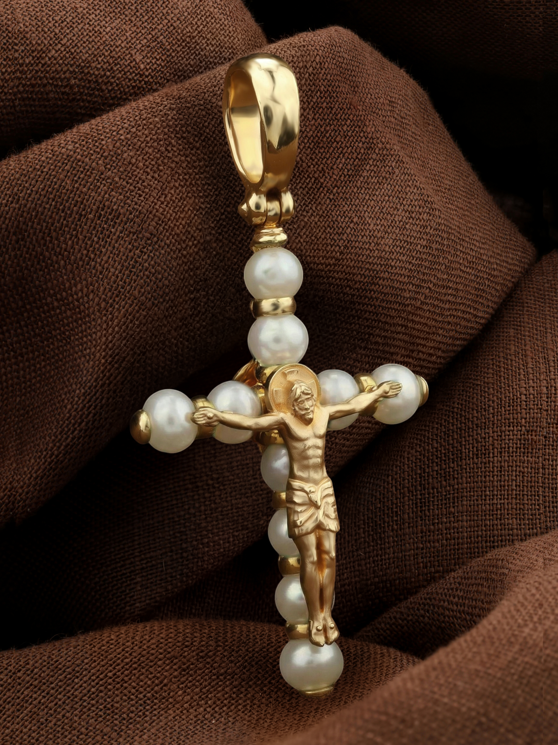 Крест из лимонного золота c жемчугом