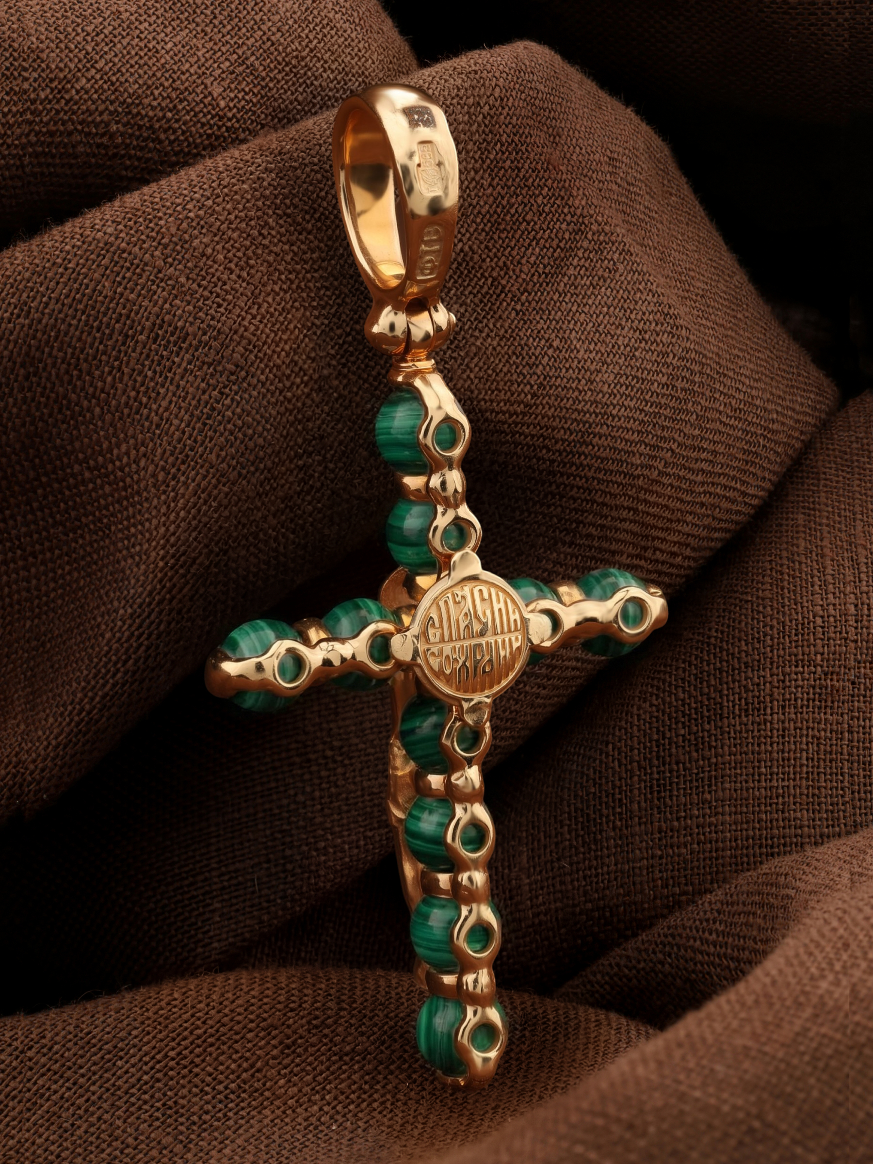Крест из золота c малахитом