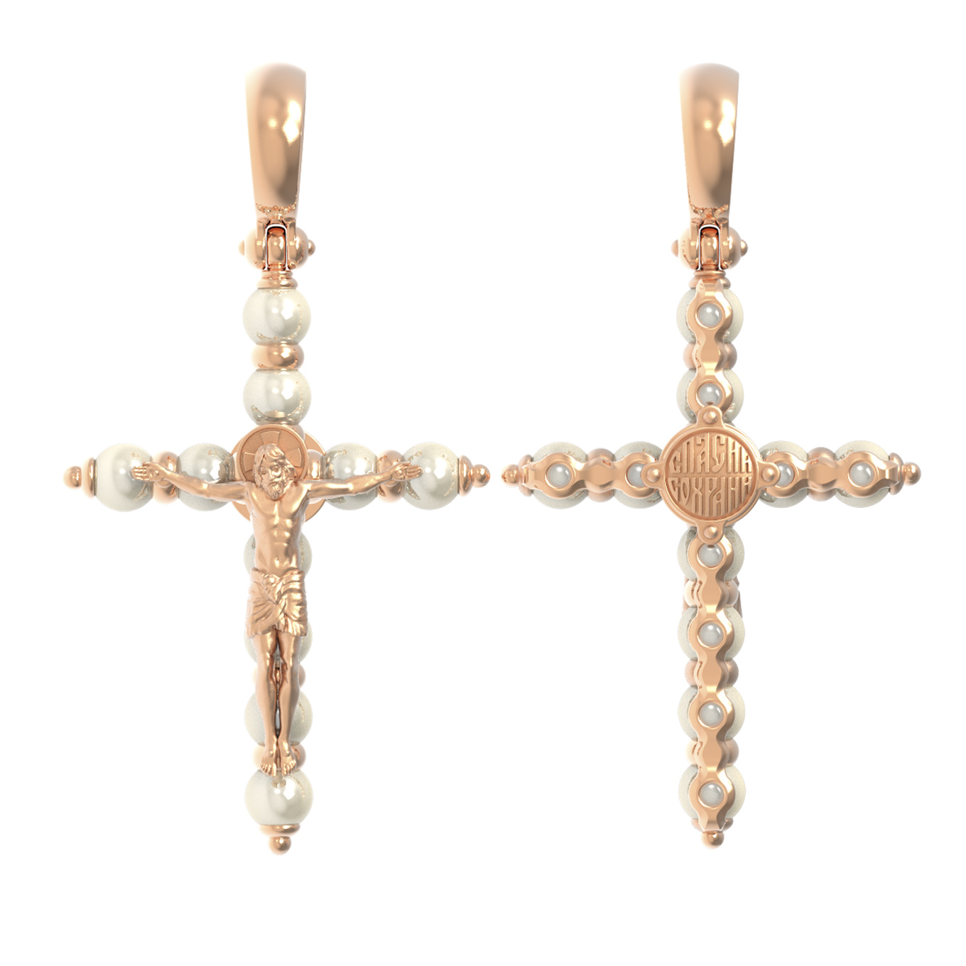 Крест из красного золота 585 пробы c жемчугом