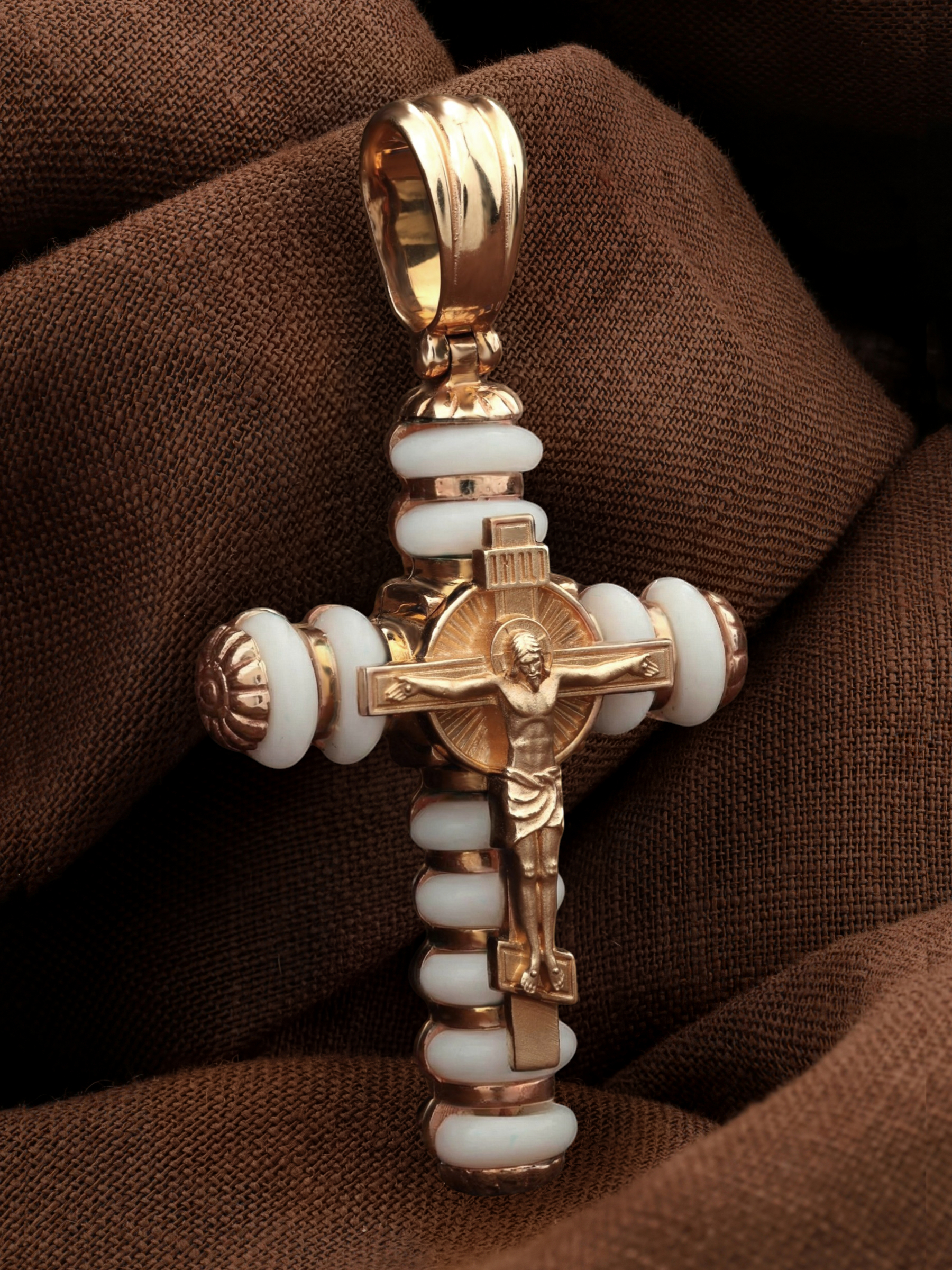 Крест из золота c кахолонгом