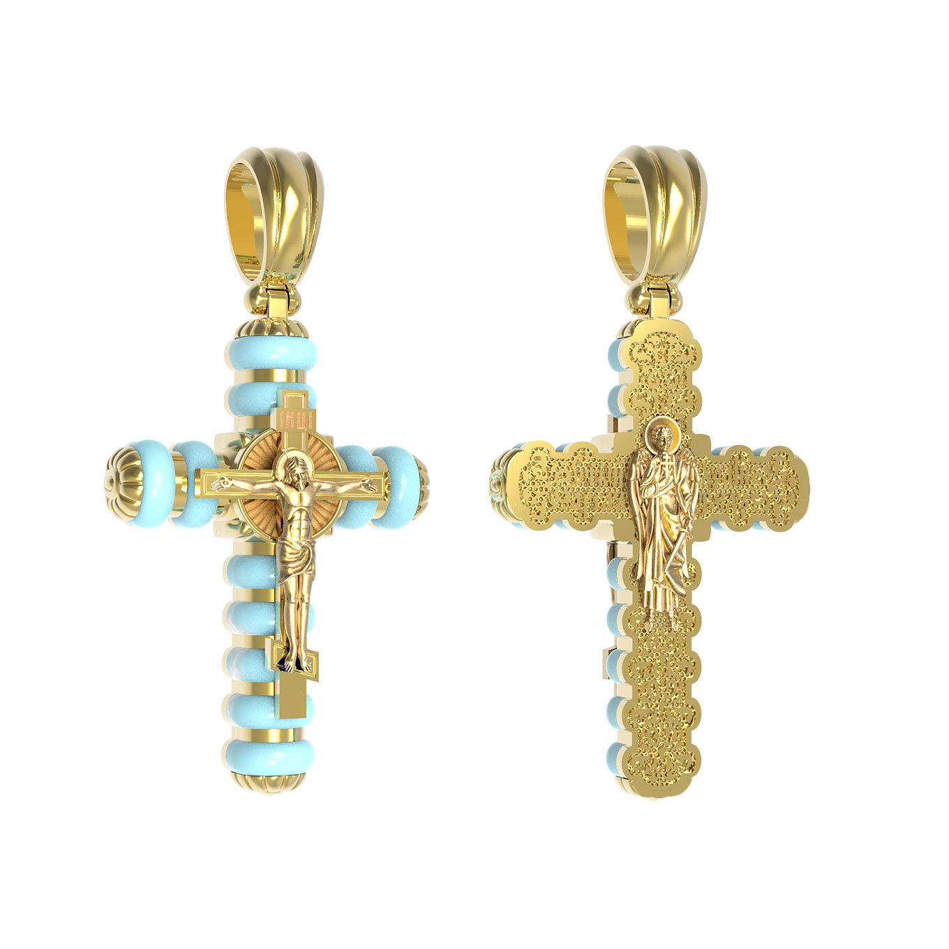 На лицевой стороне креста изображено Распятие Господа и Спасителя нашего Иисуса Христа, отдавшего Себя на смерть для искупления грехов мира. Крест является символом жертвенной любви Всеблагого Бога к падшим людям, всепобеждающим духовным оружием христиан, основанием и средоточием церковной жизни. Над вершиной Распятия помещена надпись «Царь Славы». На верхней перекладине расположена надпись «IНЦI». Она символизирует титло — табличку, на которой, согласно Евангелию, было начертано: Иисус Назорей, Царь Иудейский. Надпись «IC» «ХC»», означает Иисус Христос, помещаются на разных сторонах поперечной перекладины креста. Ниже помещена надпись «НИКА», что означает «победитель».