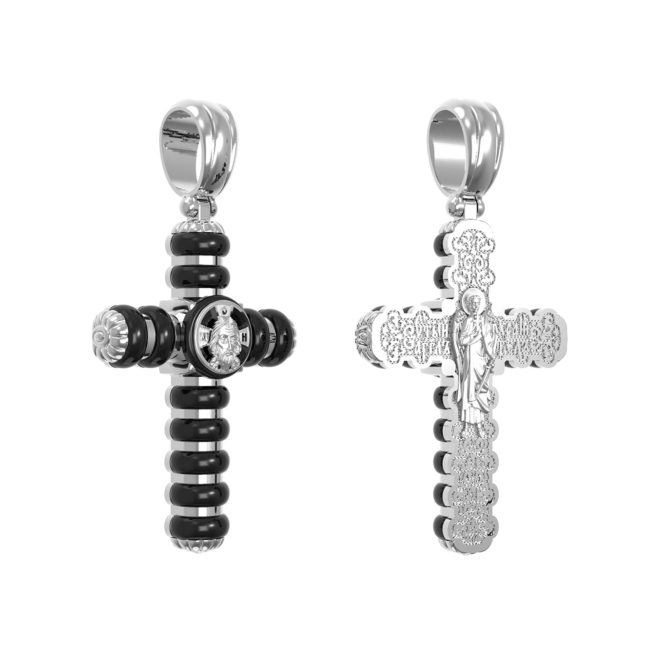 На оборотной стороне креста изображен святой Ангел-Хранитель в виде прекрасного юноши держащего в правой руке крест, а в левой — сферу. Ангел-Хранитель — это Ангел приставляемый Богом к человеку при крещении для охраны и помощи в добрых делах. Невидимо пребывая при нас постоянно, он, руководствуя нас ко спасению, не только по нашему желанию таинственно наставляет нас на все доброе и полезное, не только возносит наши молитвы к Богу, но еще и сам от себя охраняют и защищают нас от врагов видимых и невидимых, ходатайствует за нас пред Богом.