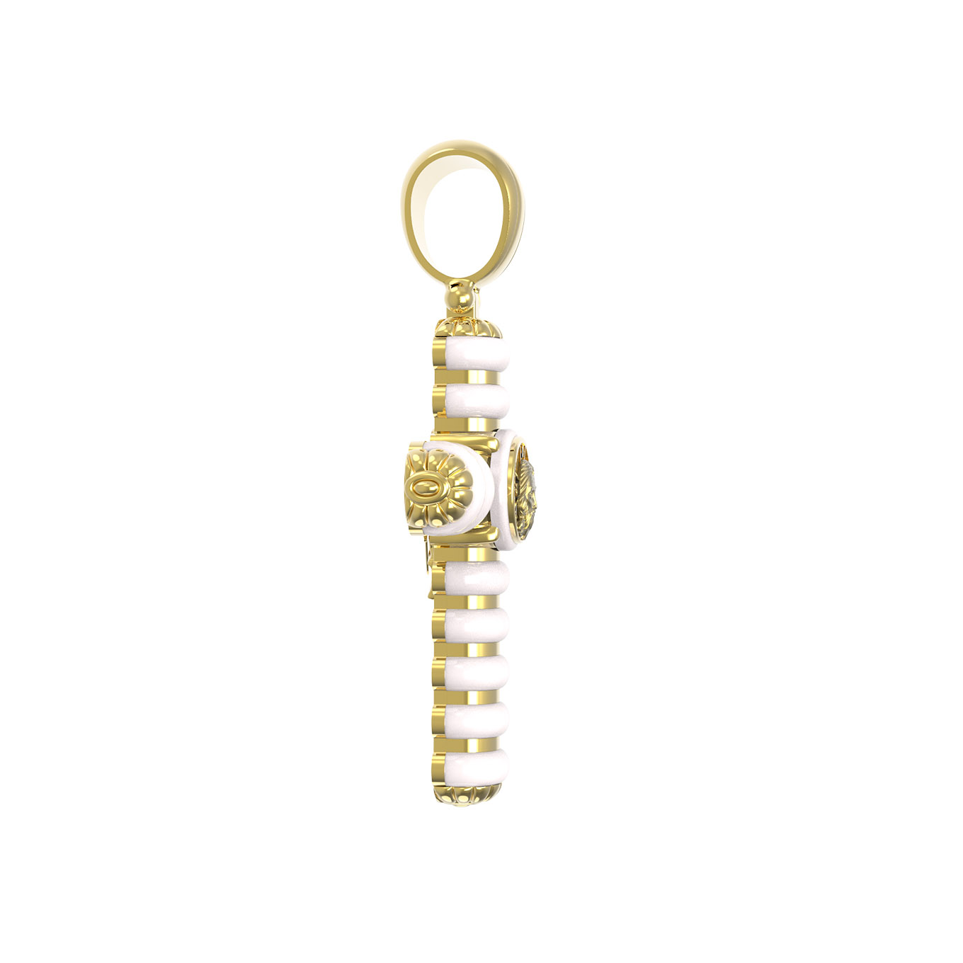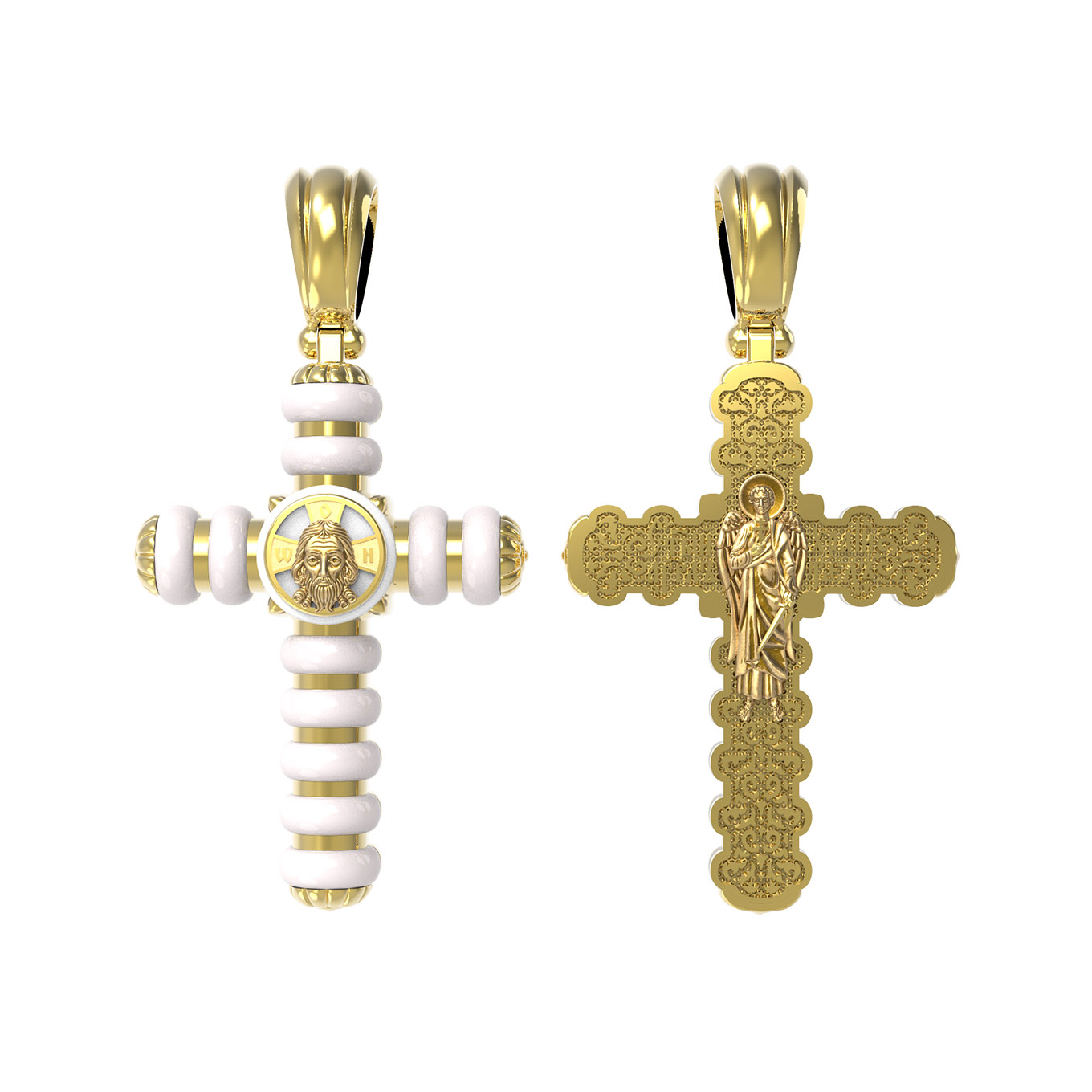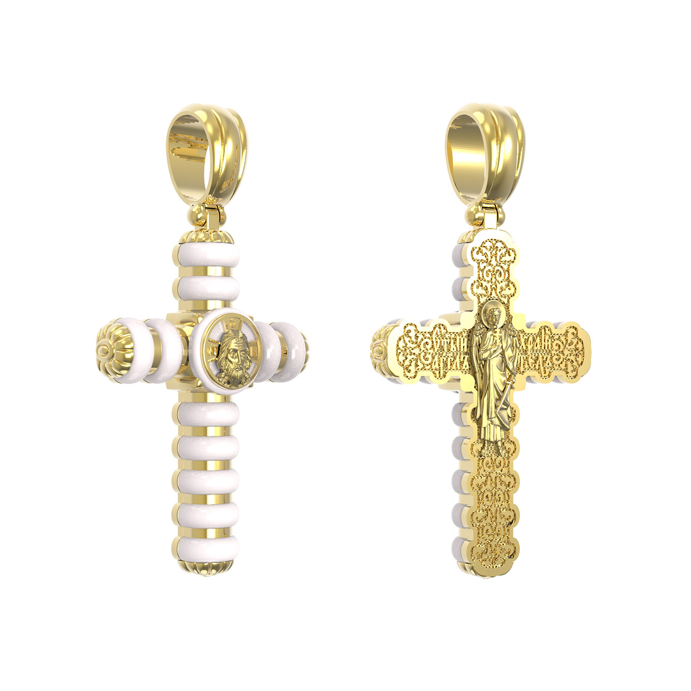 На оборотной стороне креста изображен святой Ангел-Хранитель в виде прекрасного юноши держащего в правой руке крест, а в левой — сферу. Ангел-Хранитель — это Ангел приставляемый Богом к человеку при крещении для охраны и помощи в добрых делах. Невидимо пребывая при нас постоянно, он, руководствуя нас ко спасению, не только по нашему желанию таинственно наставляет нас на все доброе и полезное, не только возносит наши молитвы к Богу, но еще и сам от себя охраняют и защищают нас от врагов видимых и невидимых, ходатайствует за нас пред Богом.
