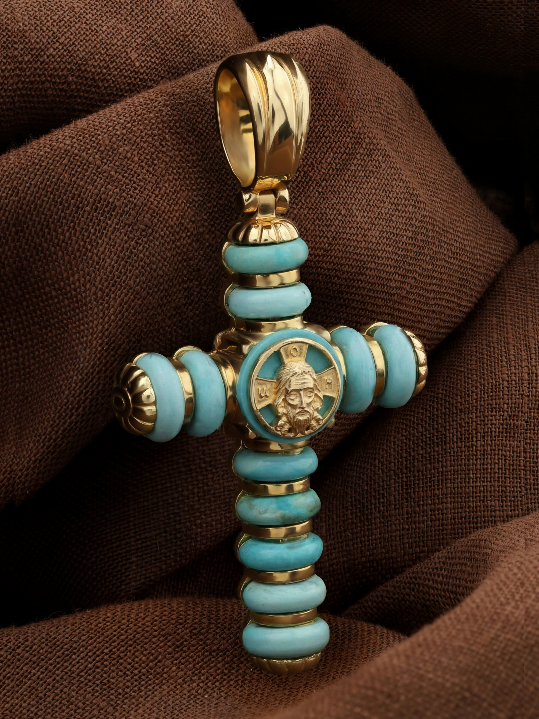 Крест из лимонного золота c бирюзой