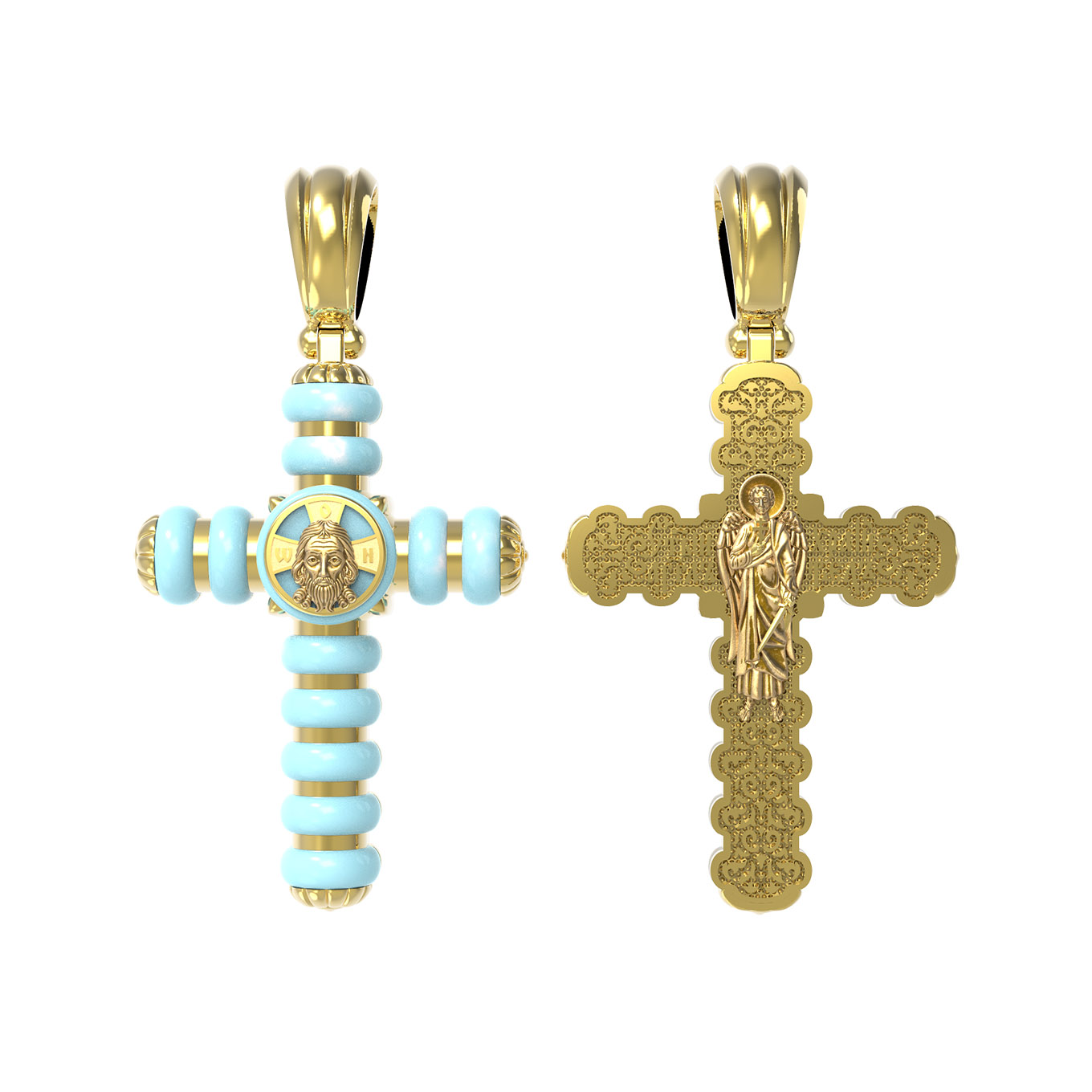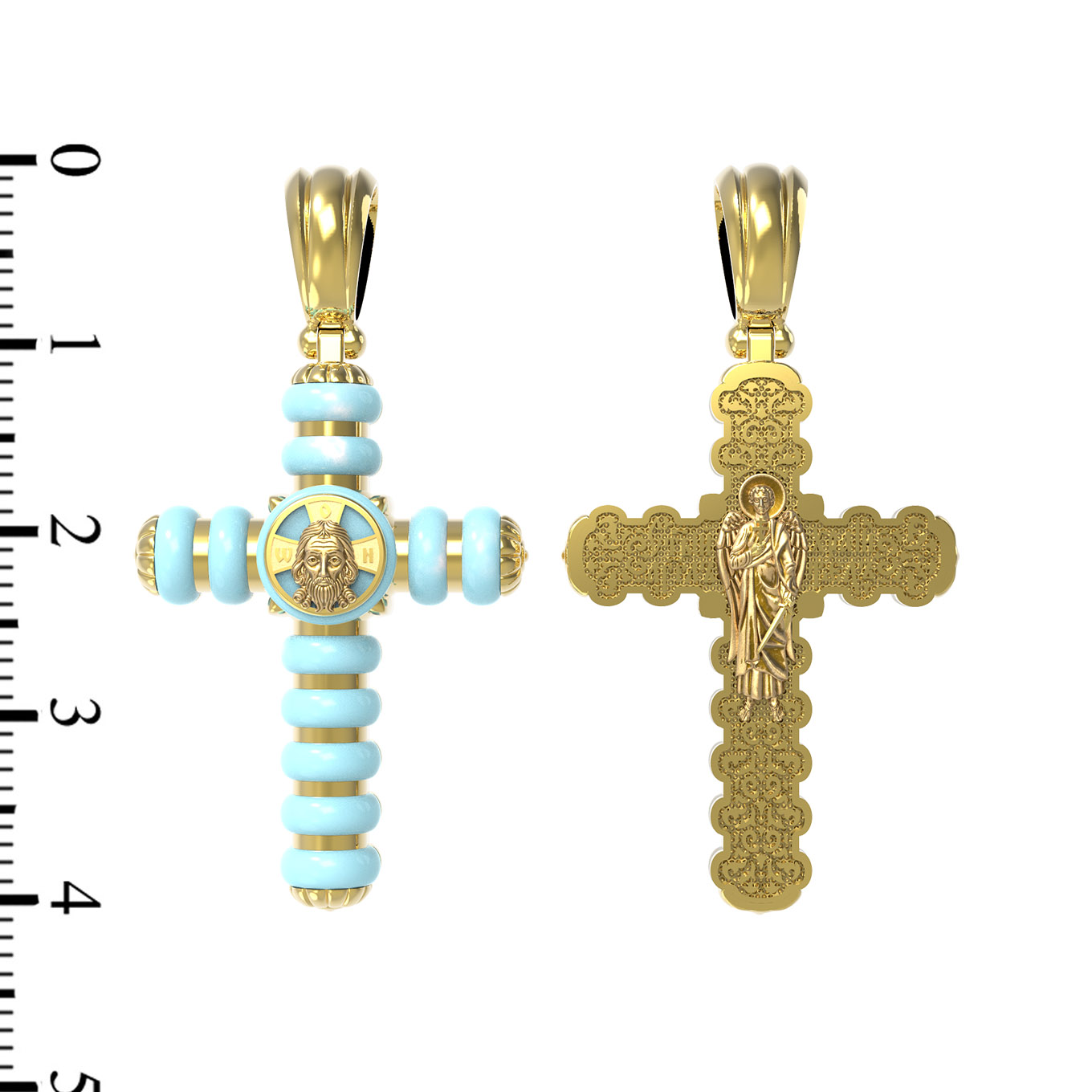 На оборотной стороне креста изображен святой Ангел-Хранитель в виде прекрасного юноши держащего в правой руке крест, а в левой — сферу. Ангел-Хранитель — это Ангел приставляемый Богом к человеку при крещении для охраны и помощи в добрых делах. Невидимо пребывая при нас постоянно, он, руководствуя нас ко спасению, не только по нашему желанию таинственно наставляет нас на все доброе и полезное, не только возносит наши молитвы к Богу, но еще и сам от себя охраняют и защищают нас от врагов видимых и невидимых, ходатайствует за нас пред Богом.