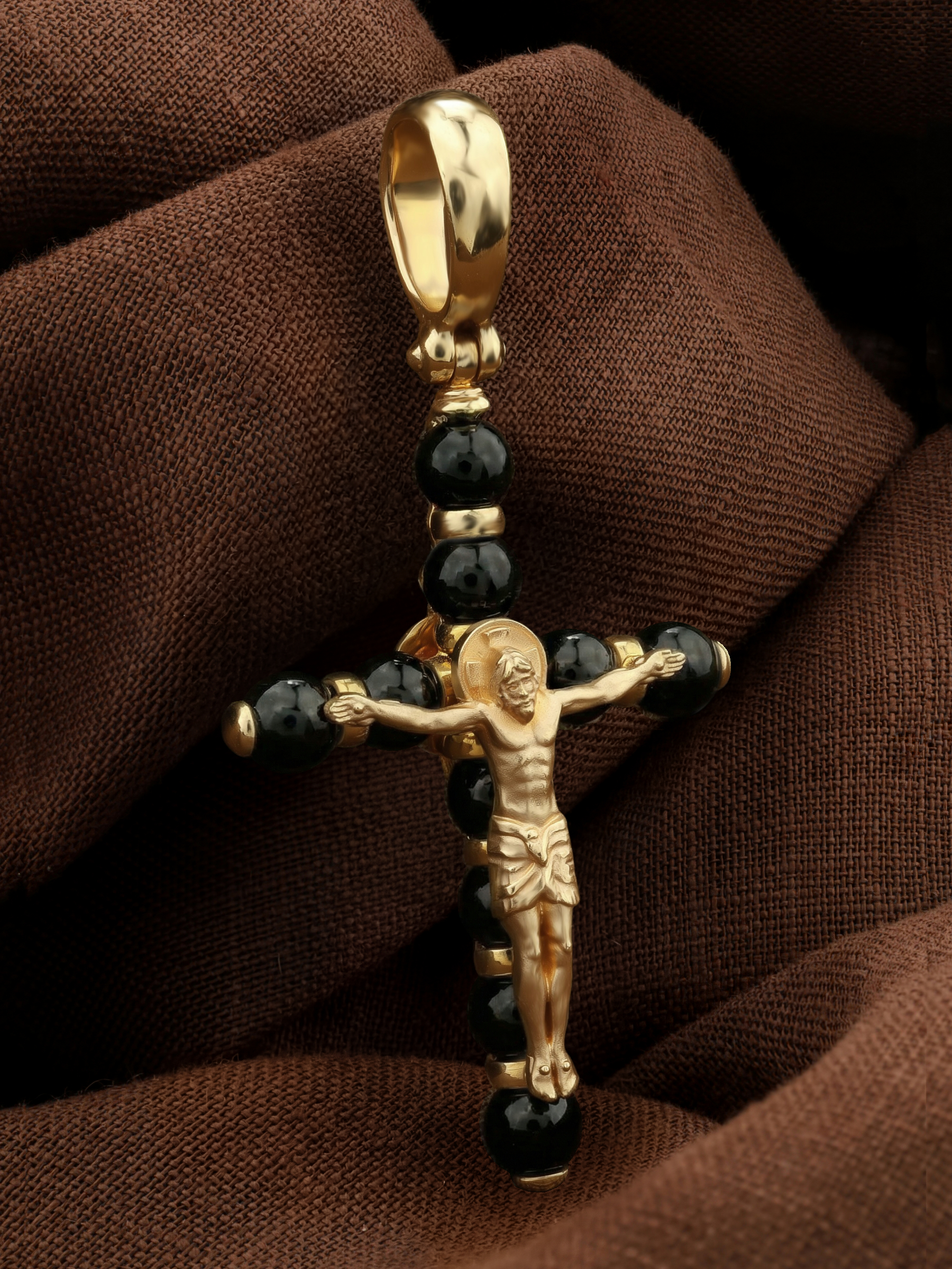 Крест из лимонного золота c ониксом