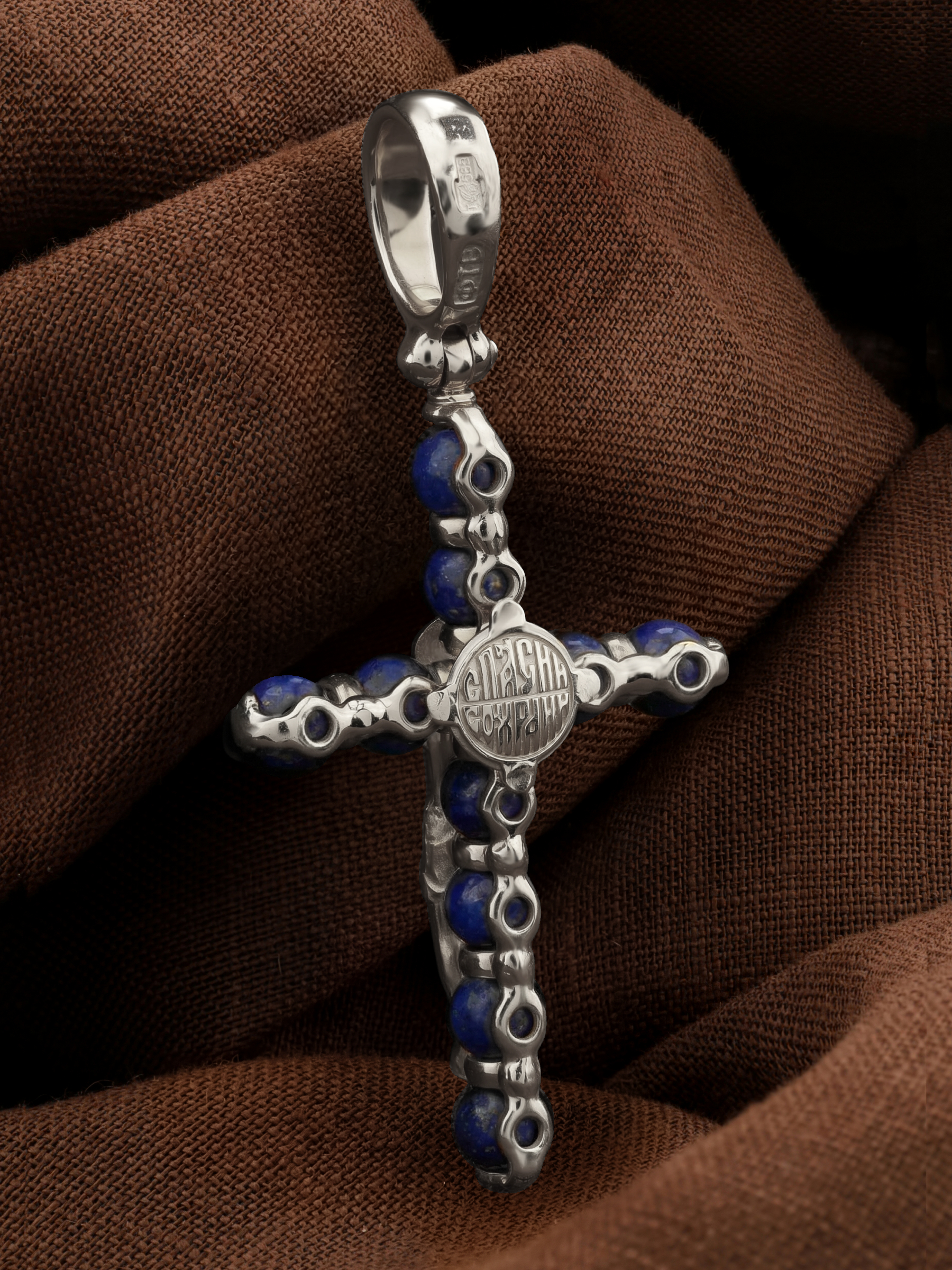 Крест из белого золота c лазуритом