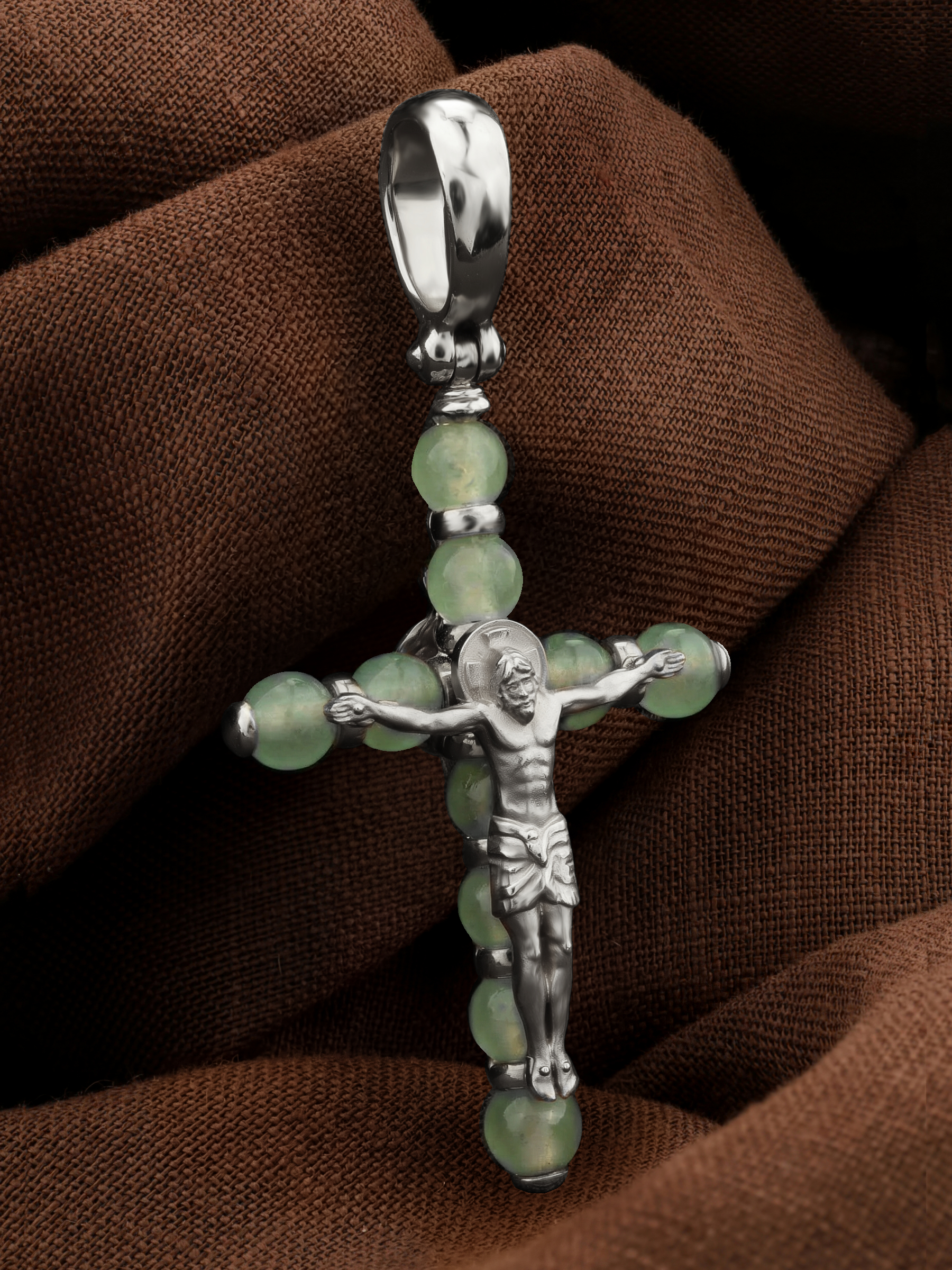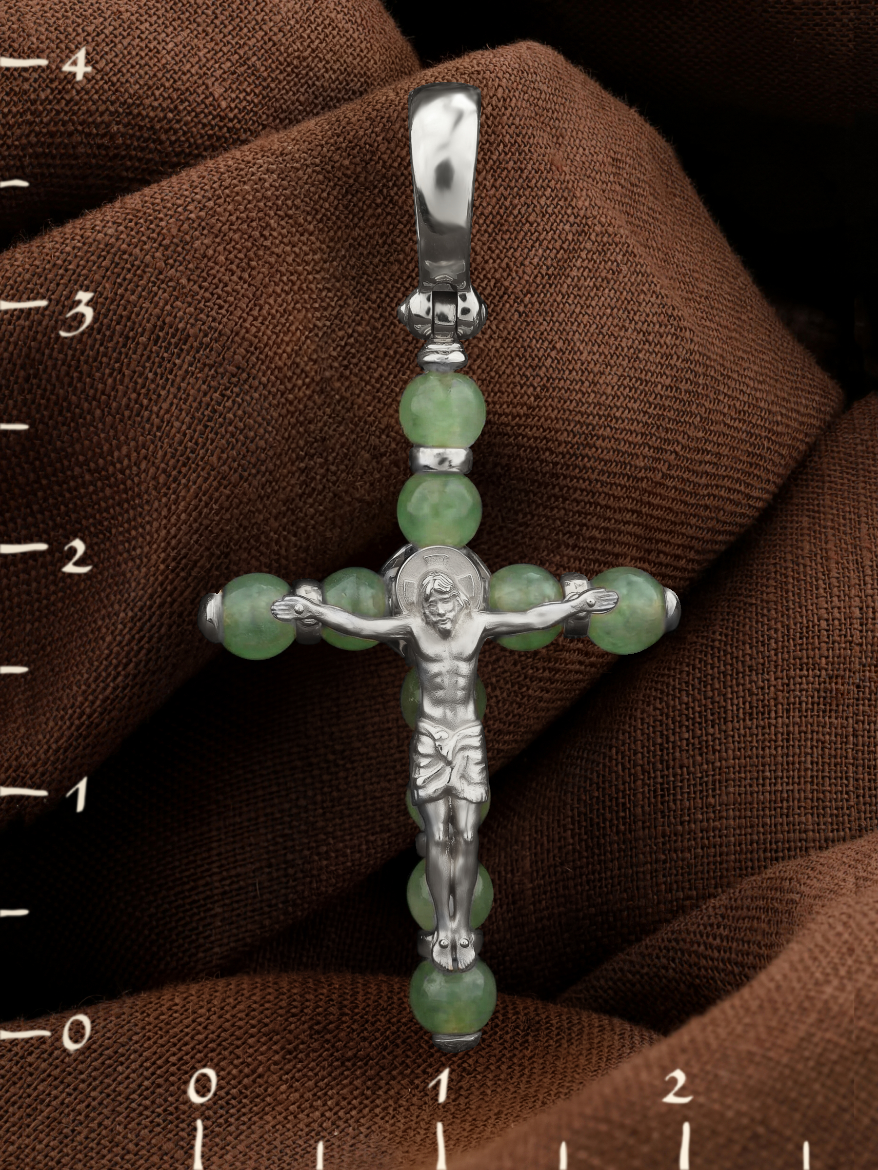На лицевой стороне креста изображено Распятие Господа и Спасителя нашего Иисуса Христа. Своими крестными страданиями Господь смыл наши грехи, покрыл наш долг перед Богом или, на языке Писания, нас «искупил». В Голгофе сокрыта непостижимая тайна бесконечной правды и любви Бога. Крест стал символом победы добра над злом, жизни над смертью, напоминанием бесконечной Божьей любви, предметом радости. Воплотившийся Сын Божий Своею кровью освятил крест и сделал его проводником Своей благодати, источником освящения верующих.
