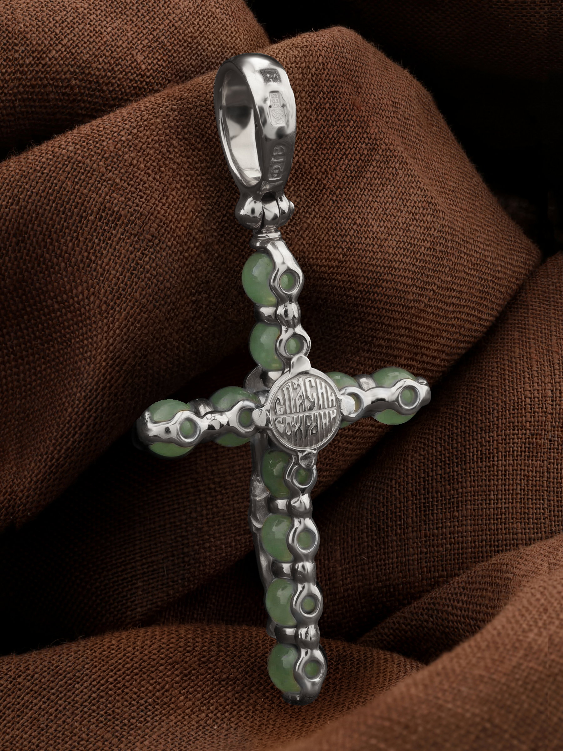 Крест из белого золота c нефритом
