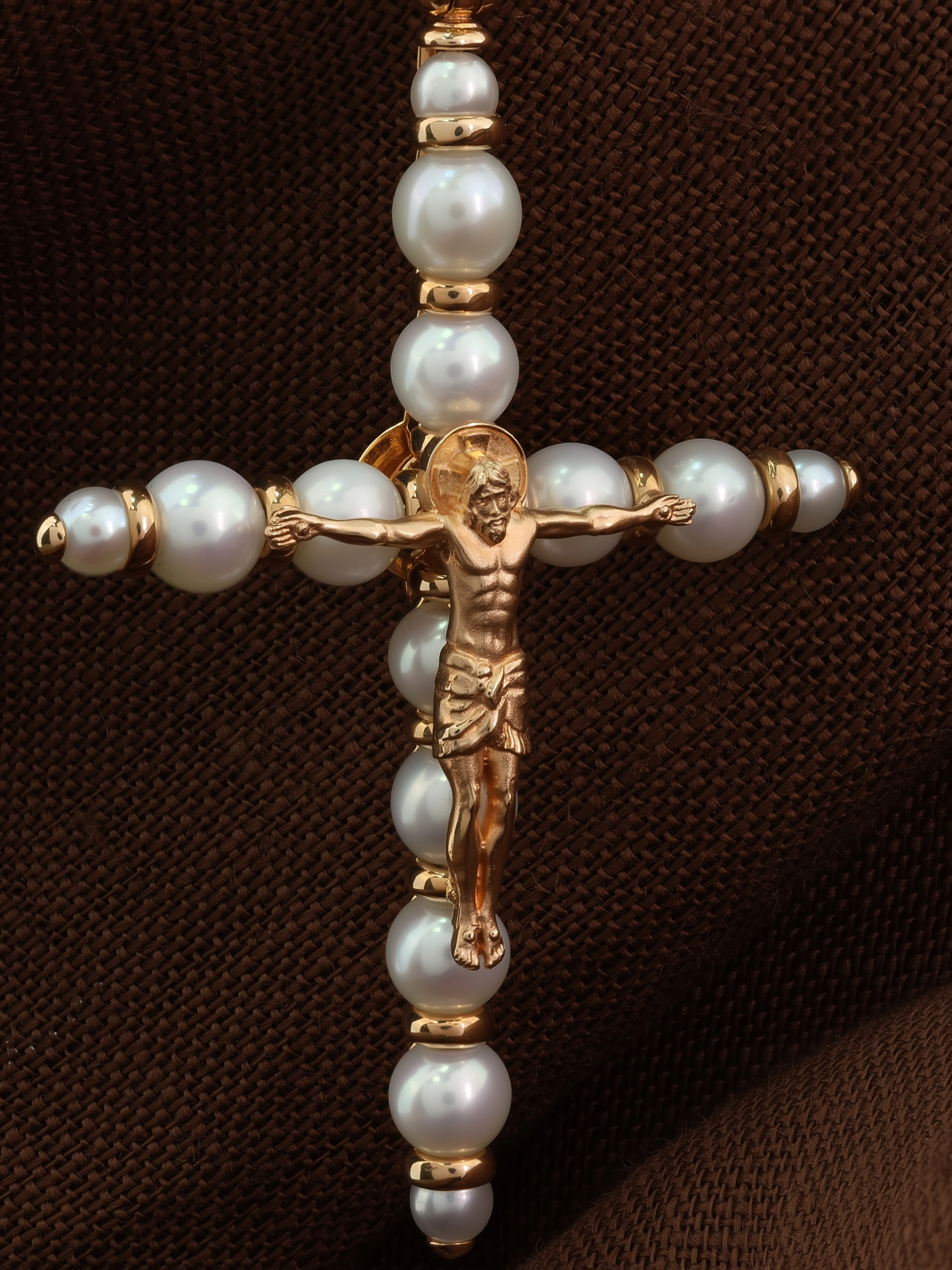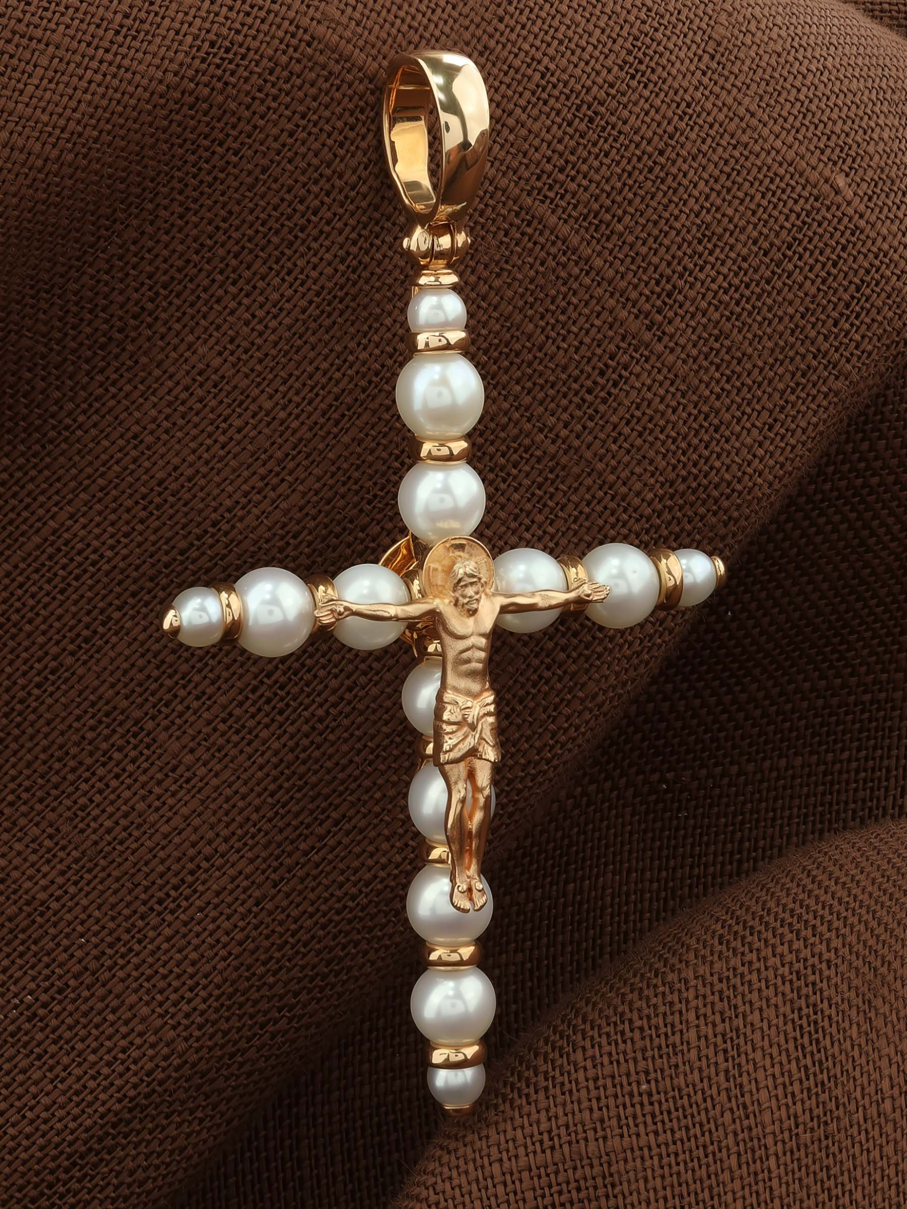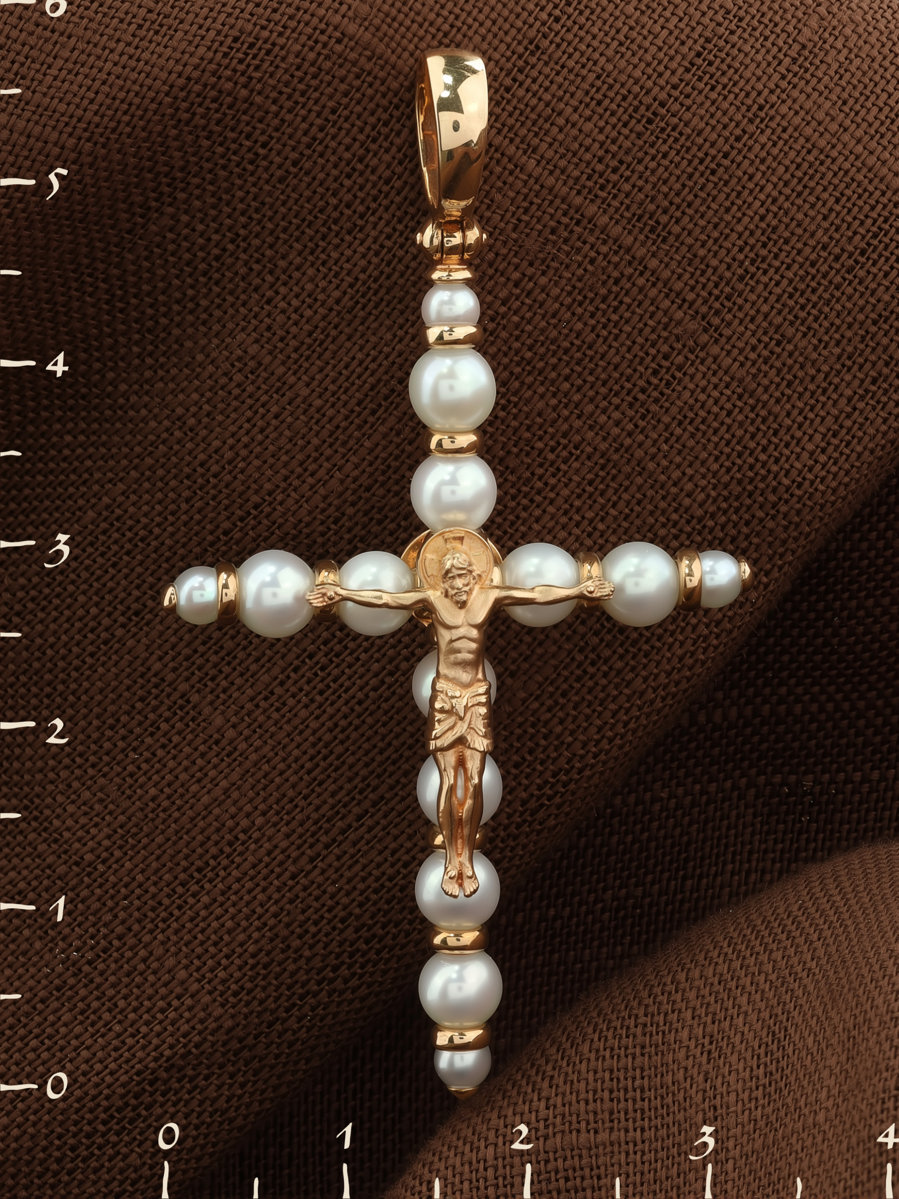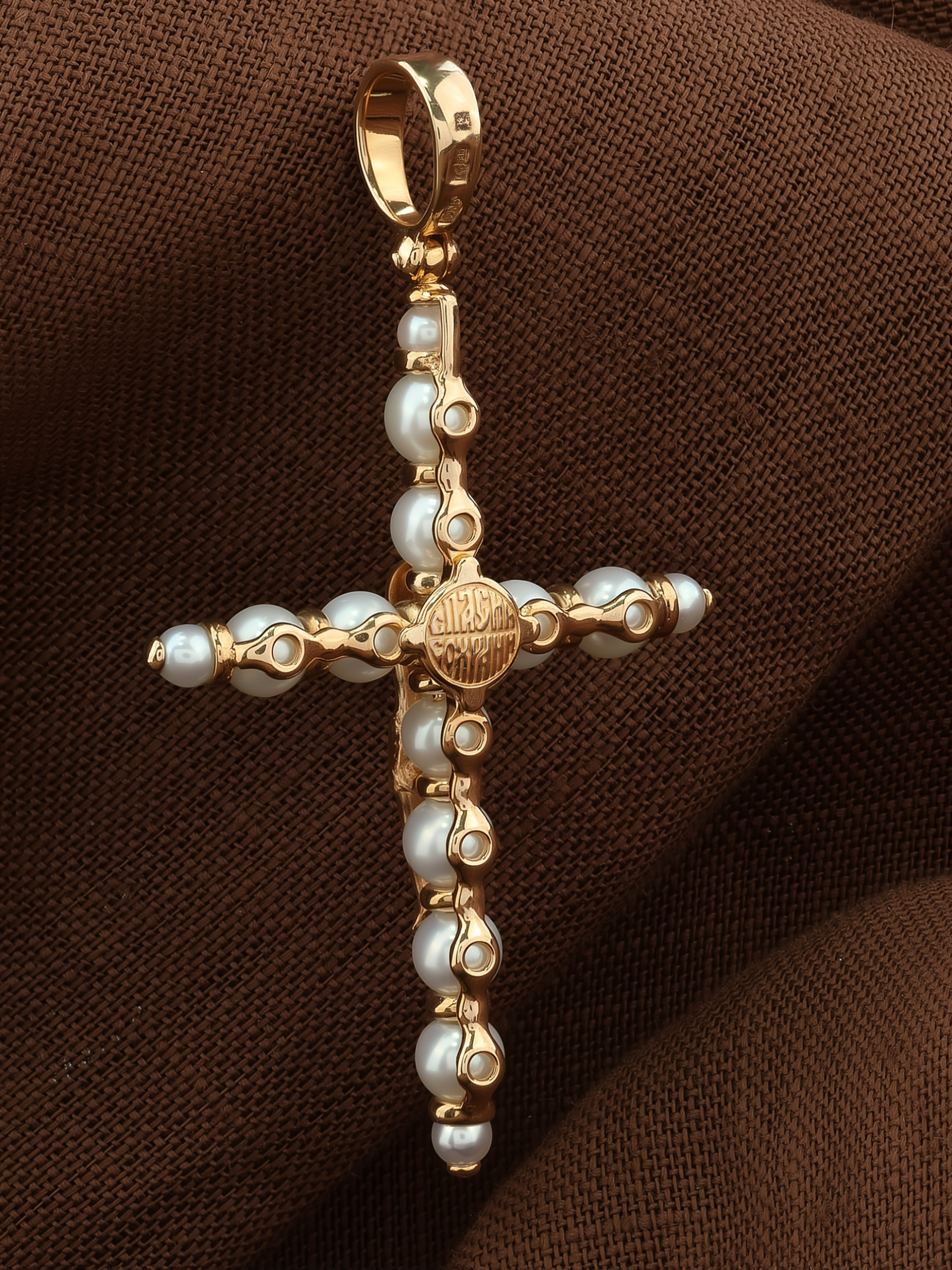 Крест из красного золота 585 пробы c жемчугом