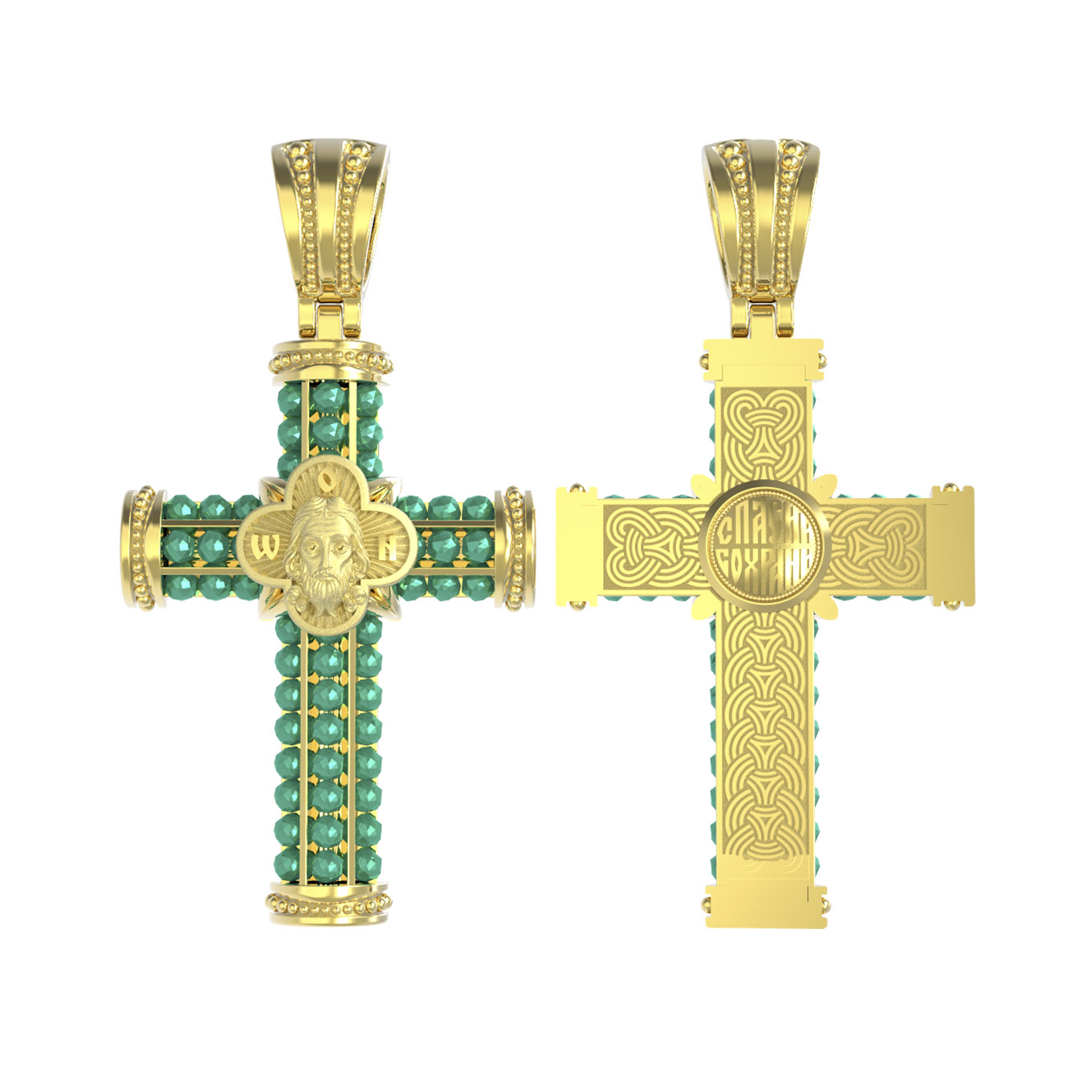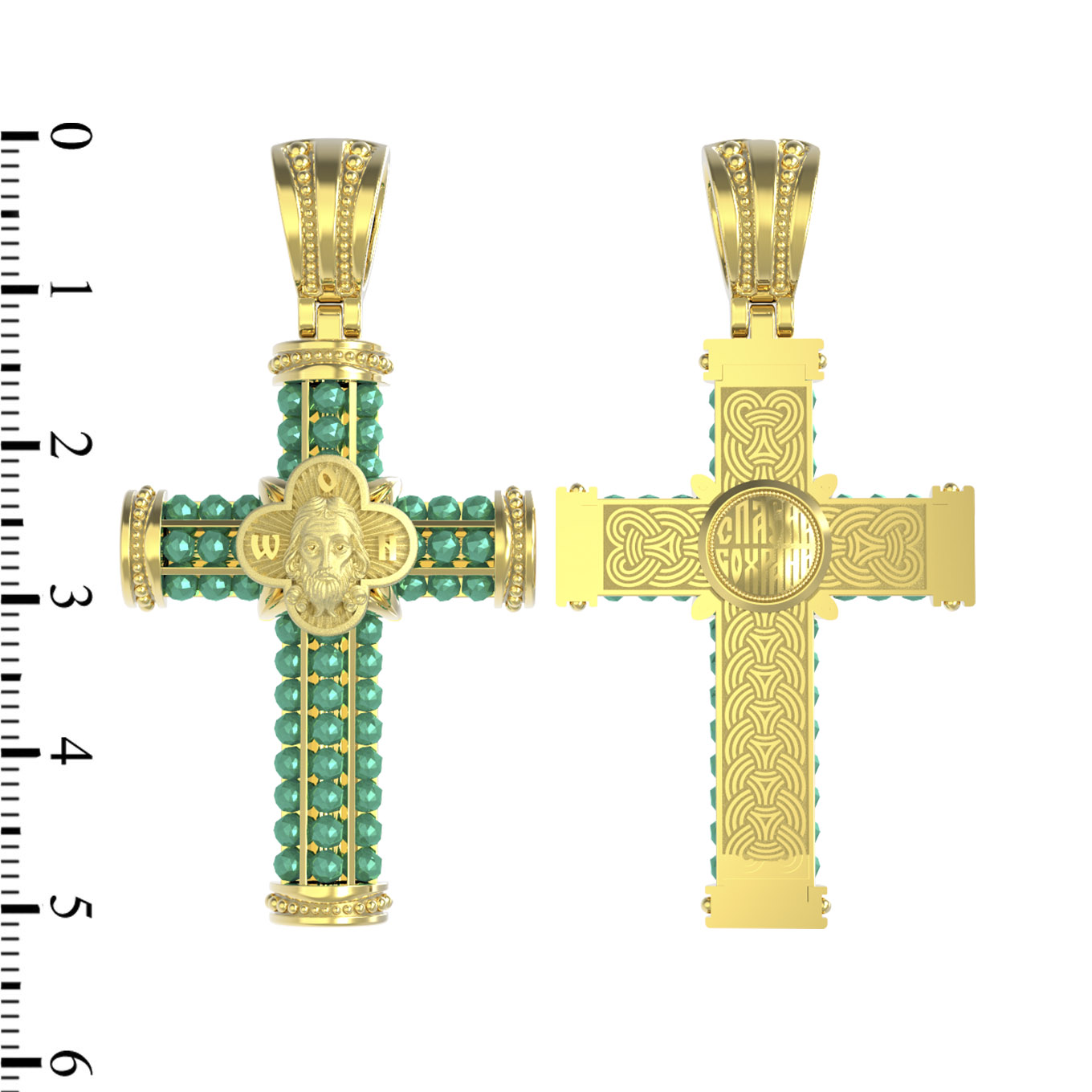 В центрально части оборотной стороны креста написана молитва: «Спаси и сохрани».