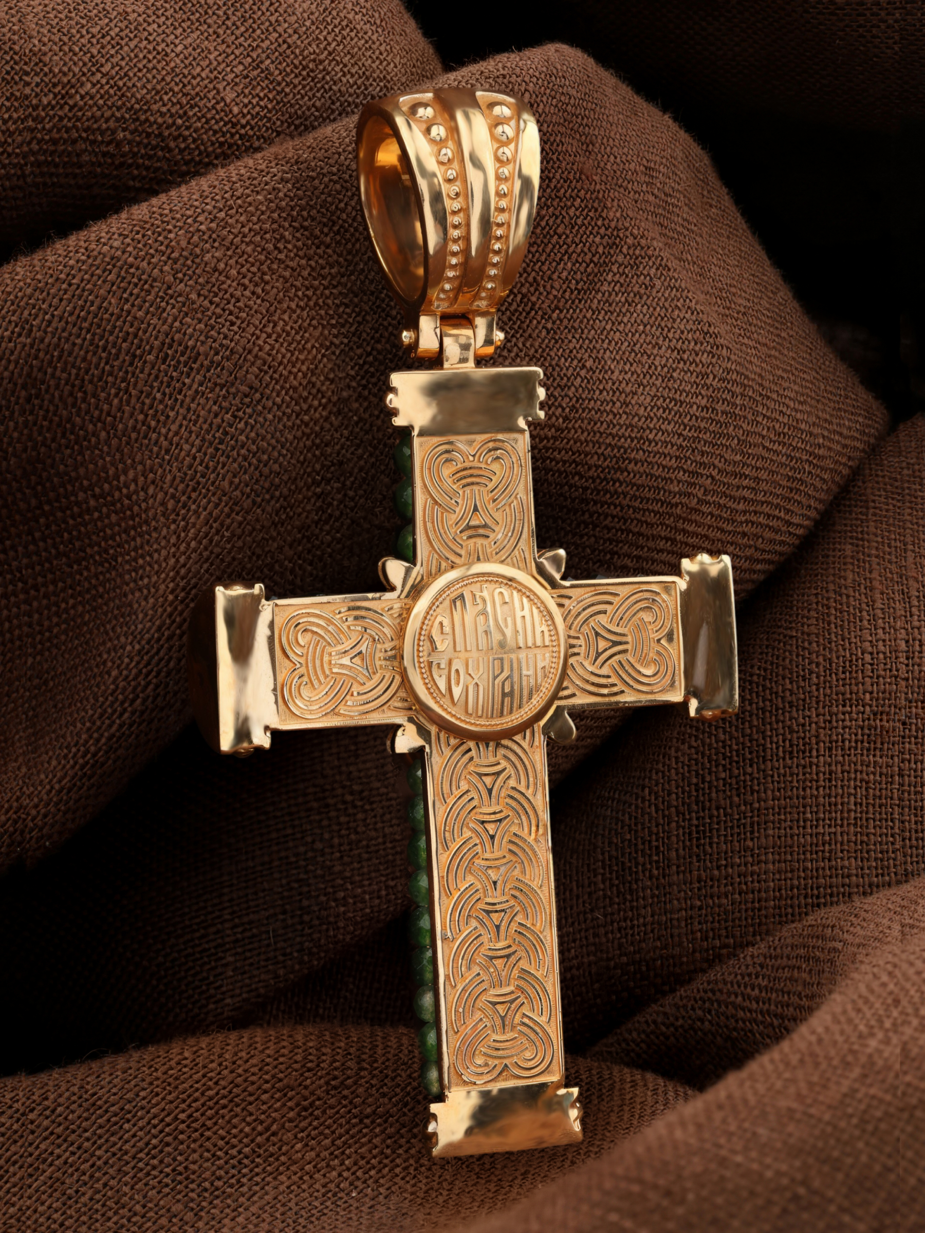 Крест из золота c хризопразом