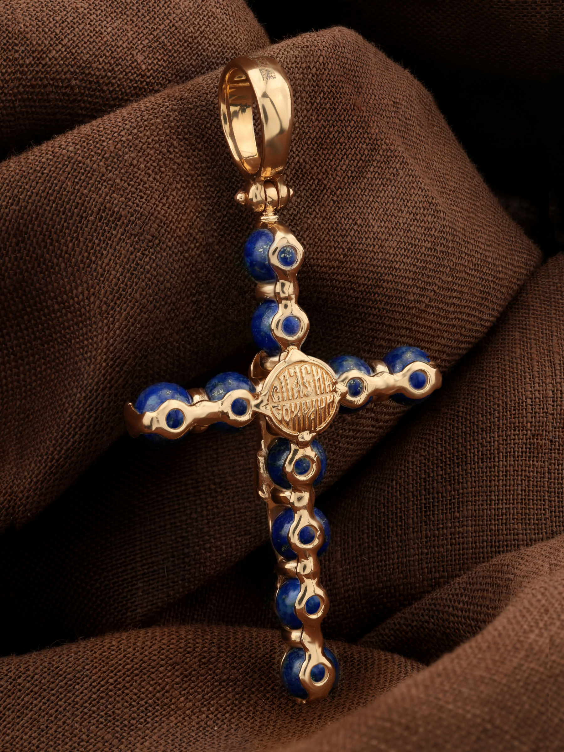 В центрально части оборотной стороны креста написана молитва: «Спаси и сохрани».