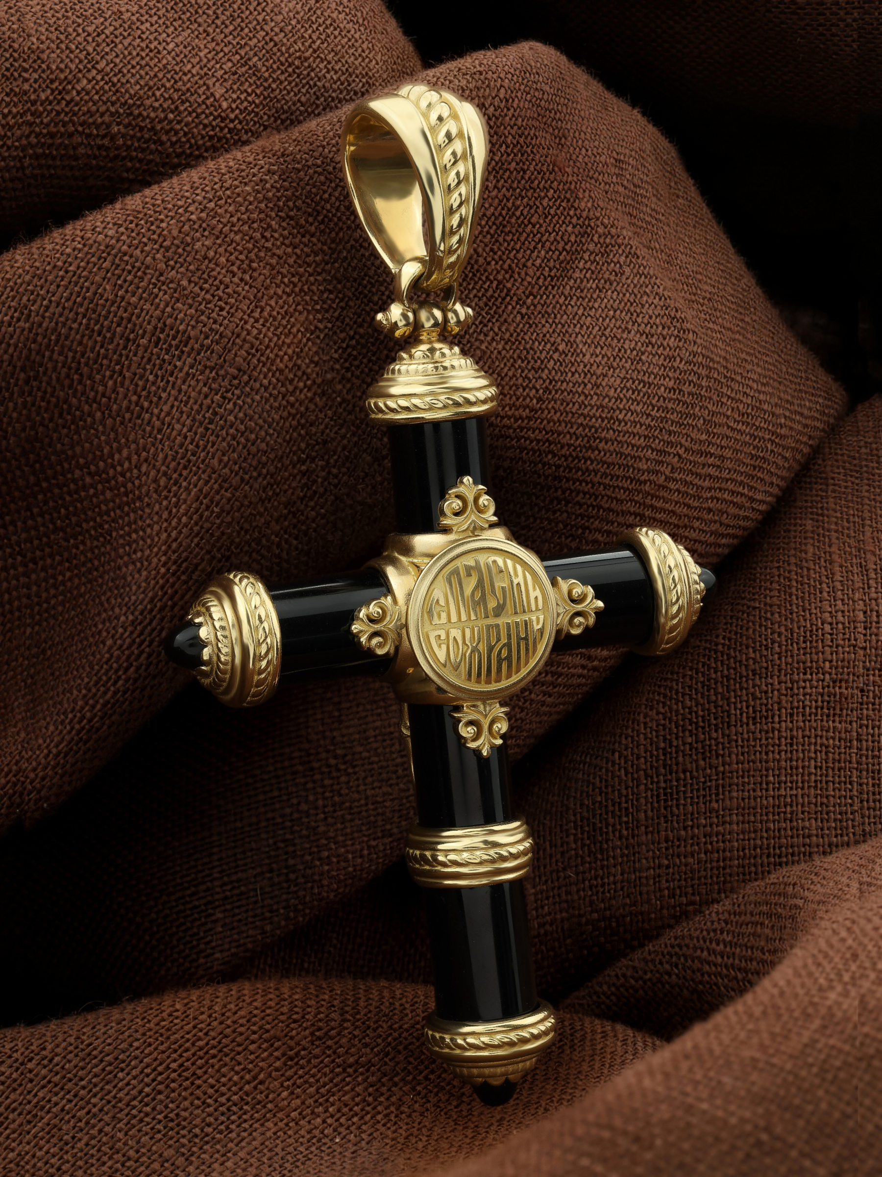 В центрально части оборотной стороны креста написана молитва: «Спаси и сохрани».