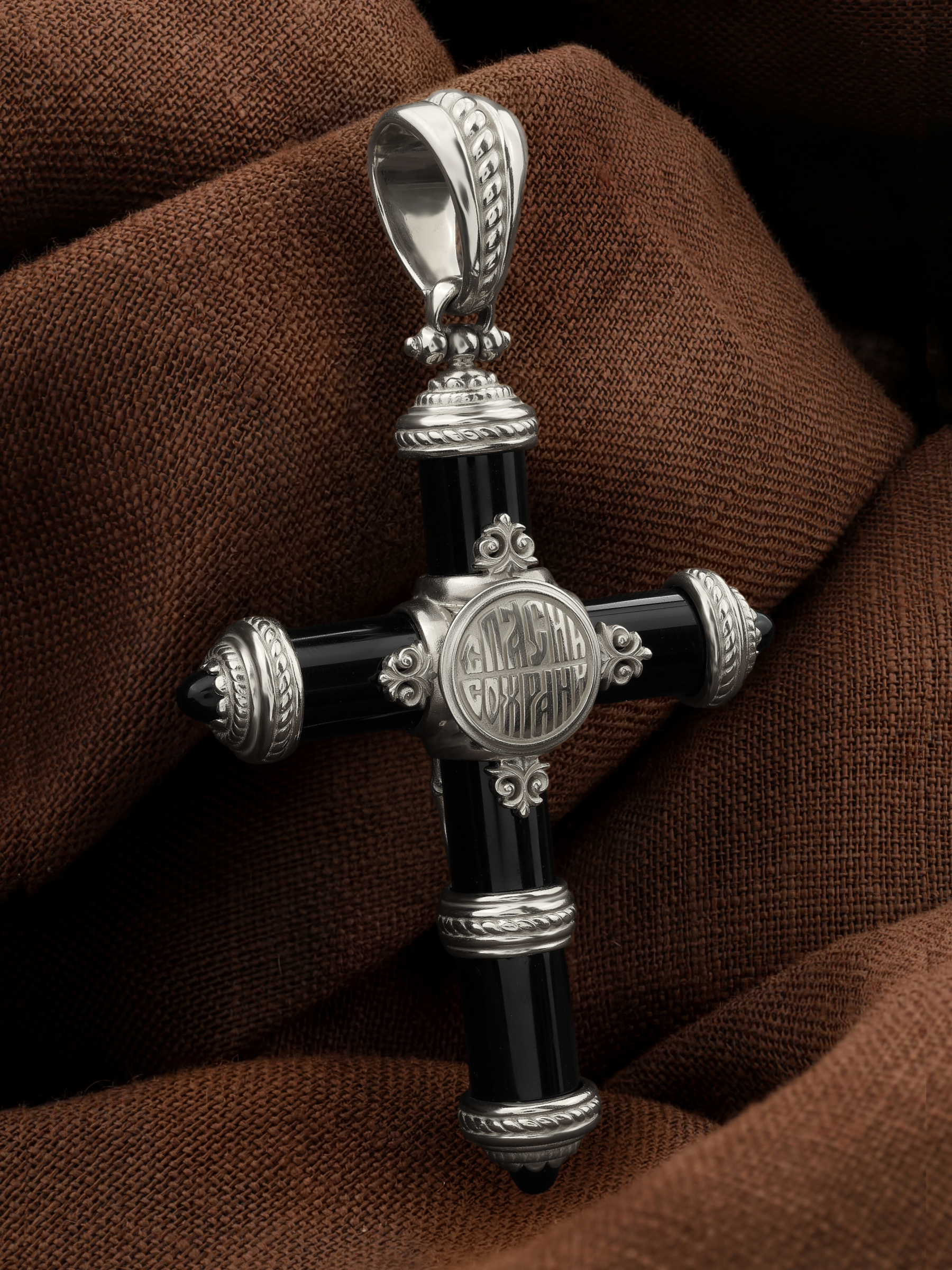 В центрально части оборотной стороны креста написана молитва: «Спаси и сохрани».