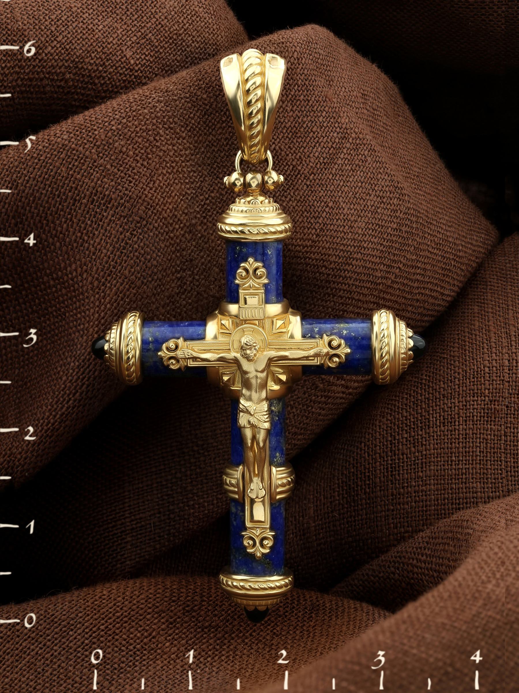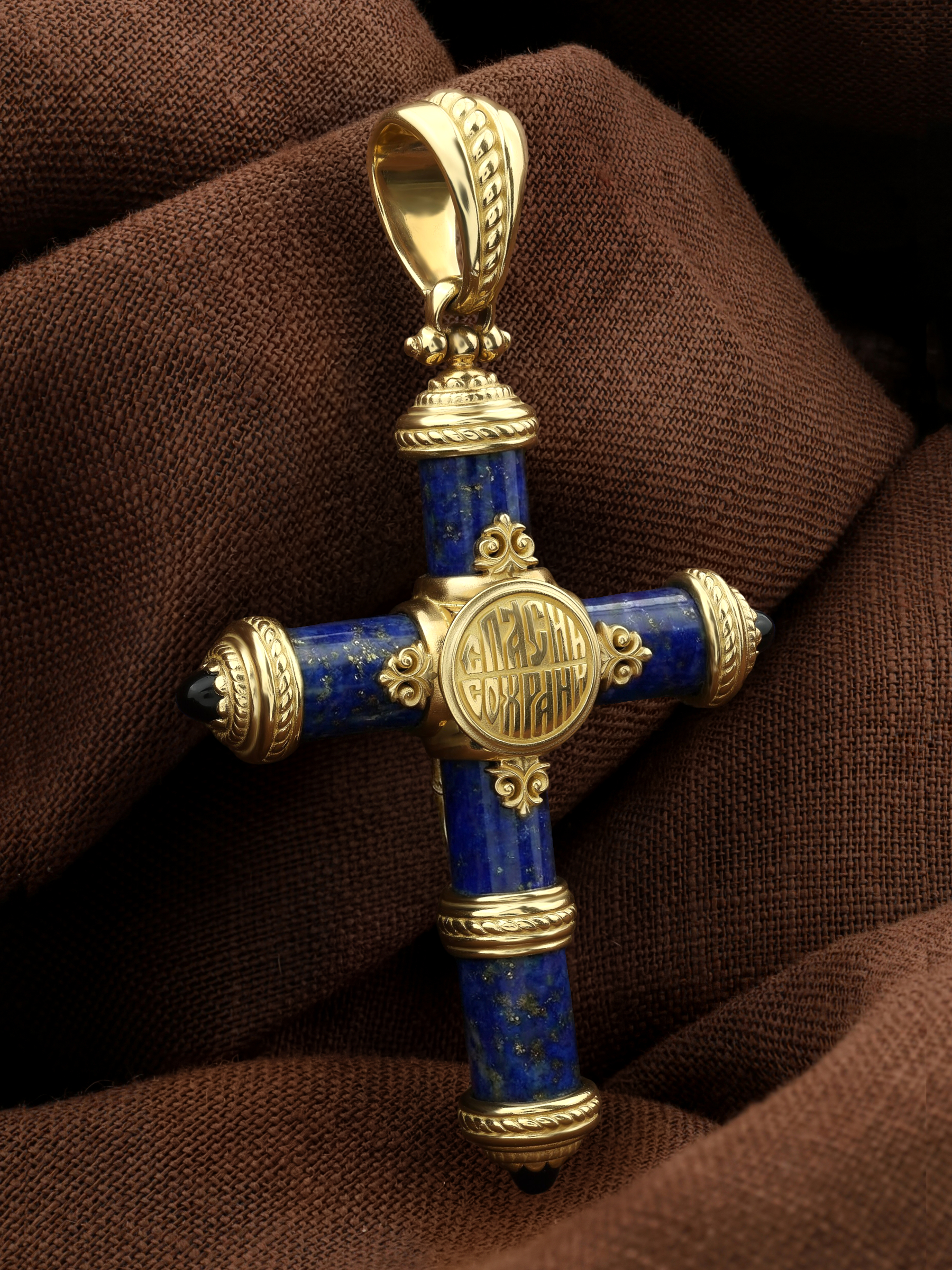 Крест из лимонного золота c ониксом и лазуритом