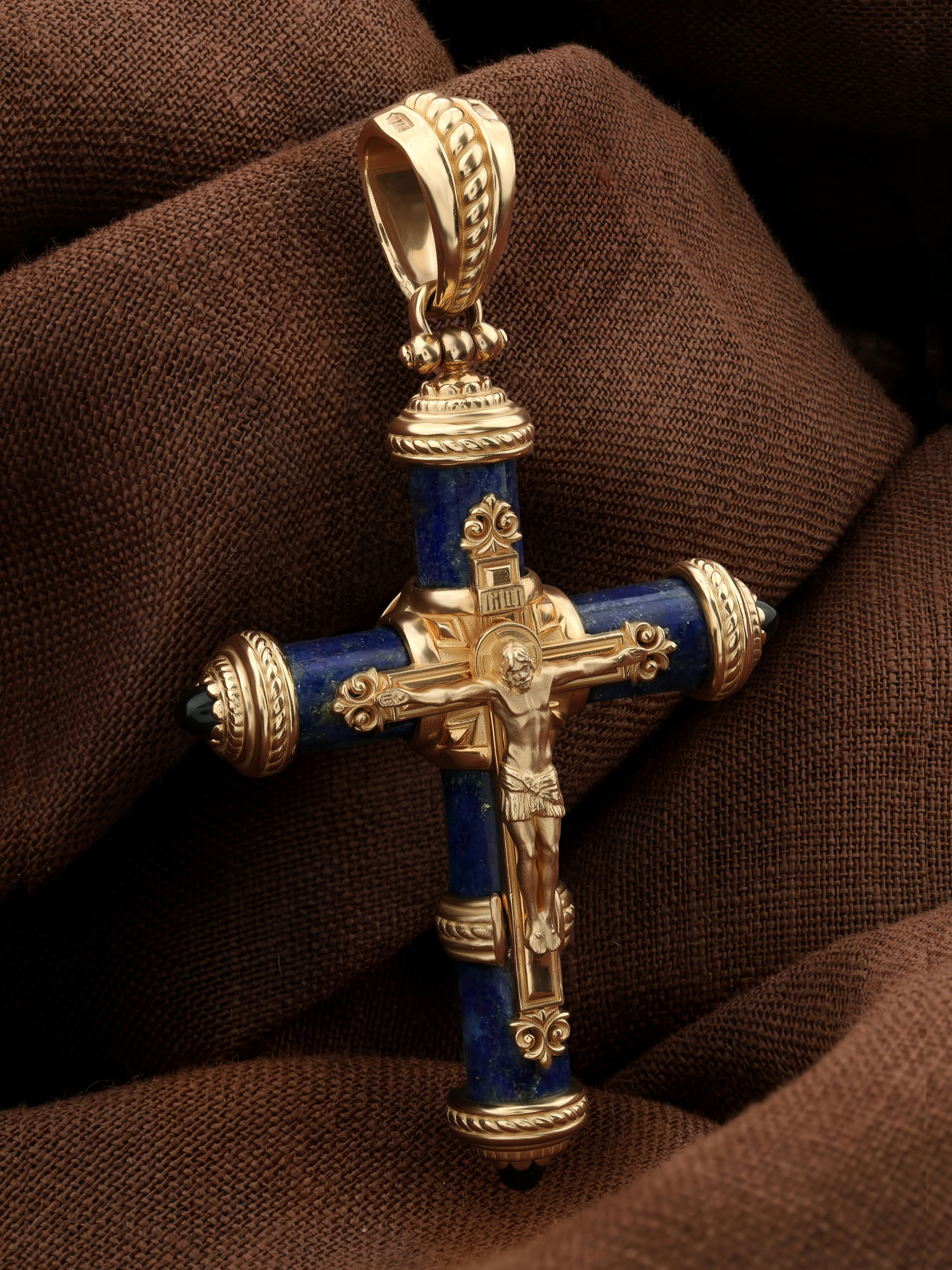 Крест из золота c ониксом и лазуритом