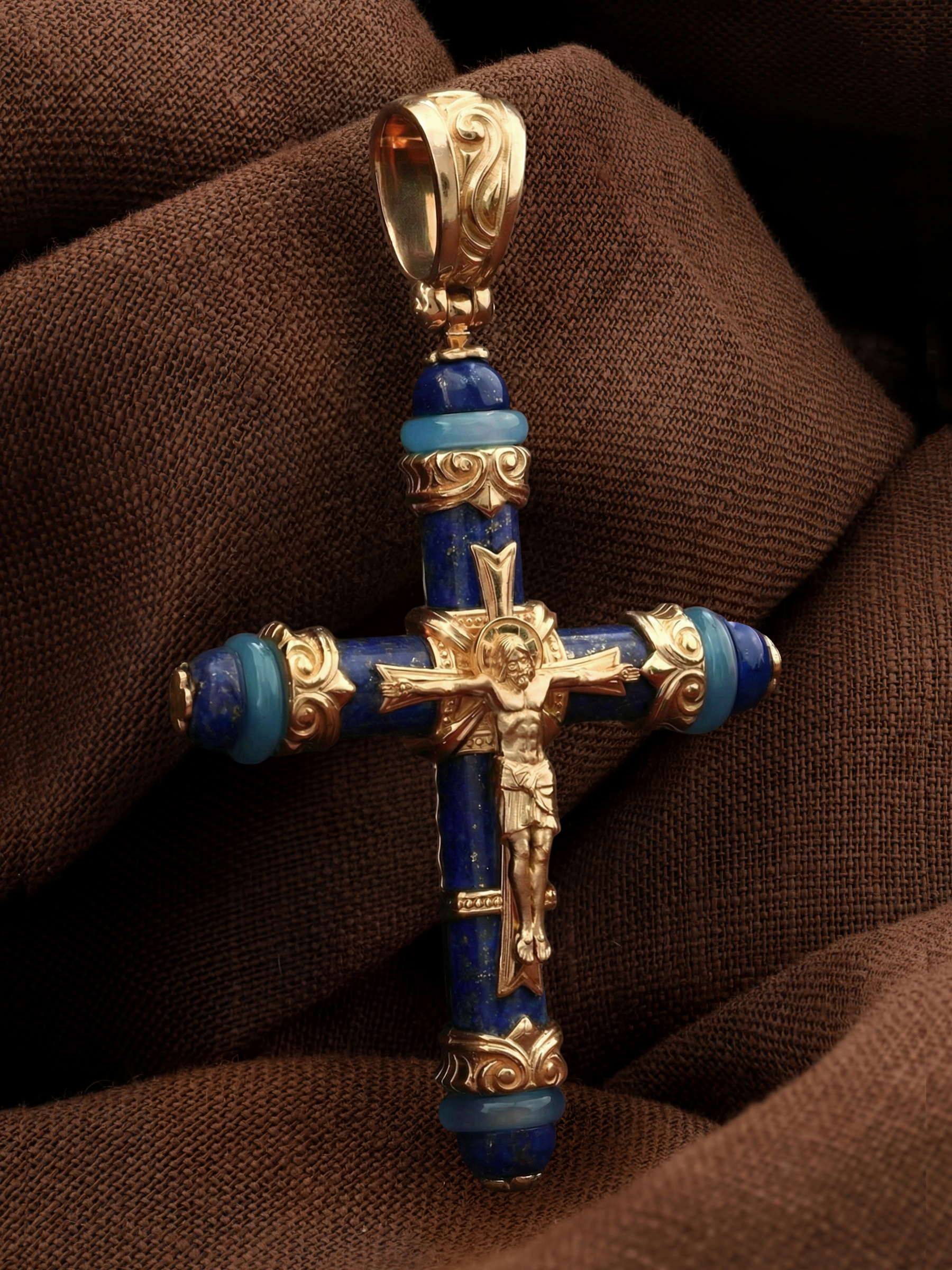 Крест из золота c агатом и лазуритом