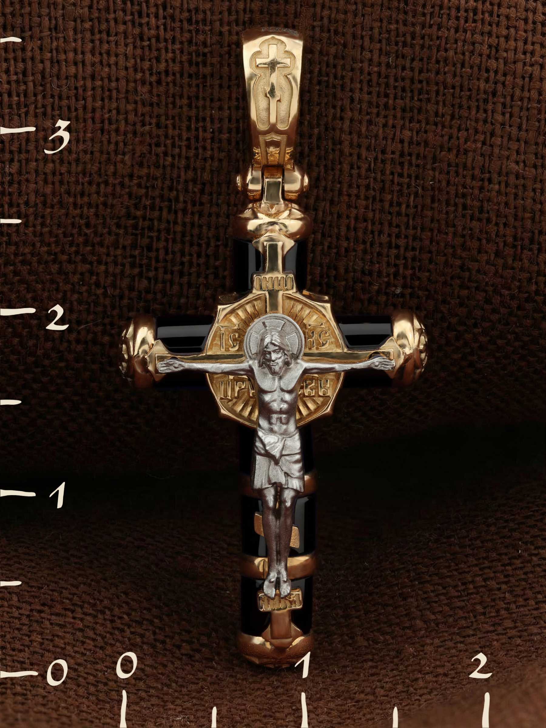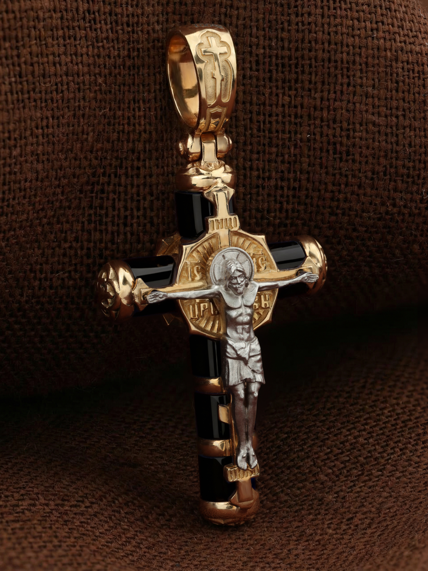 Крест из красного золота 585 пробы c ониксом