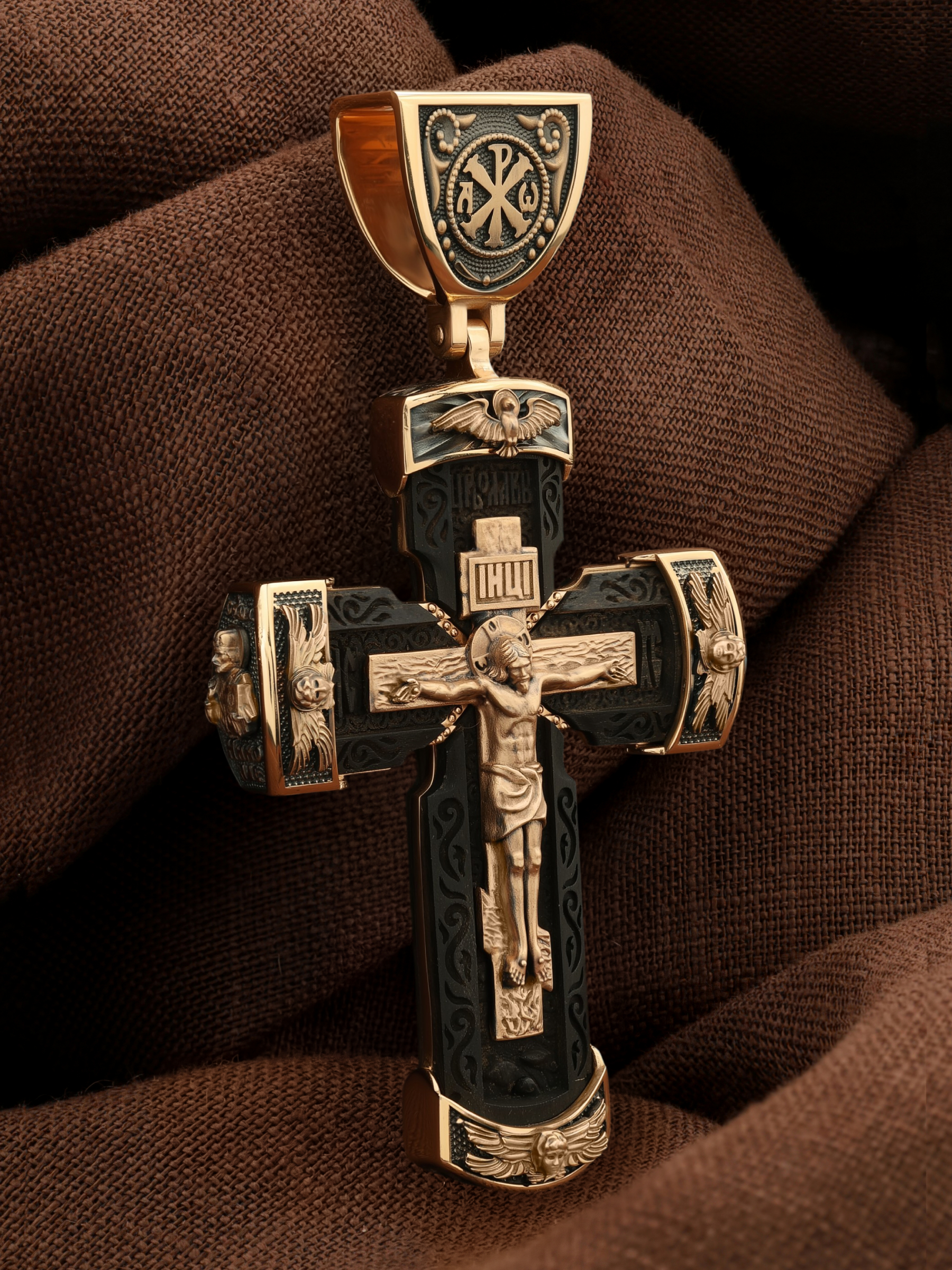 Крест из золота c эбеновым деревом