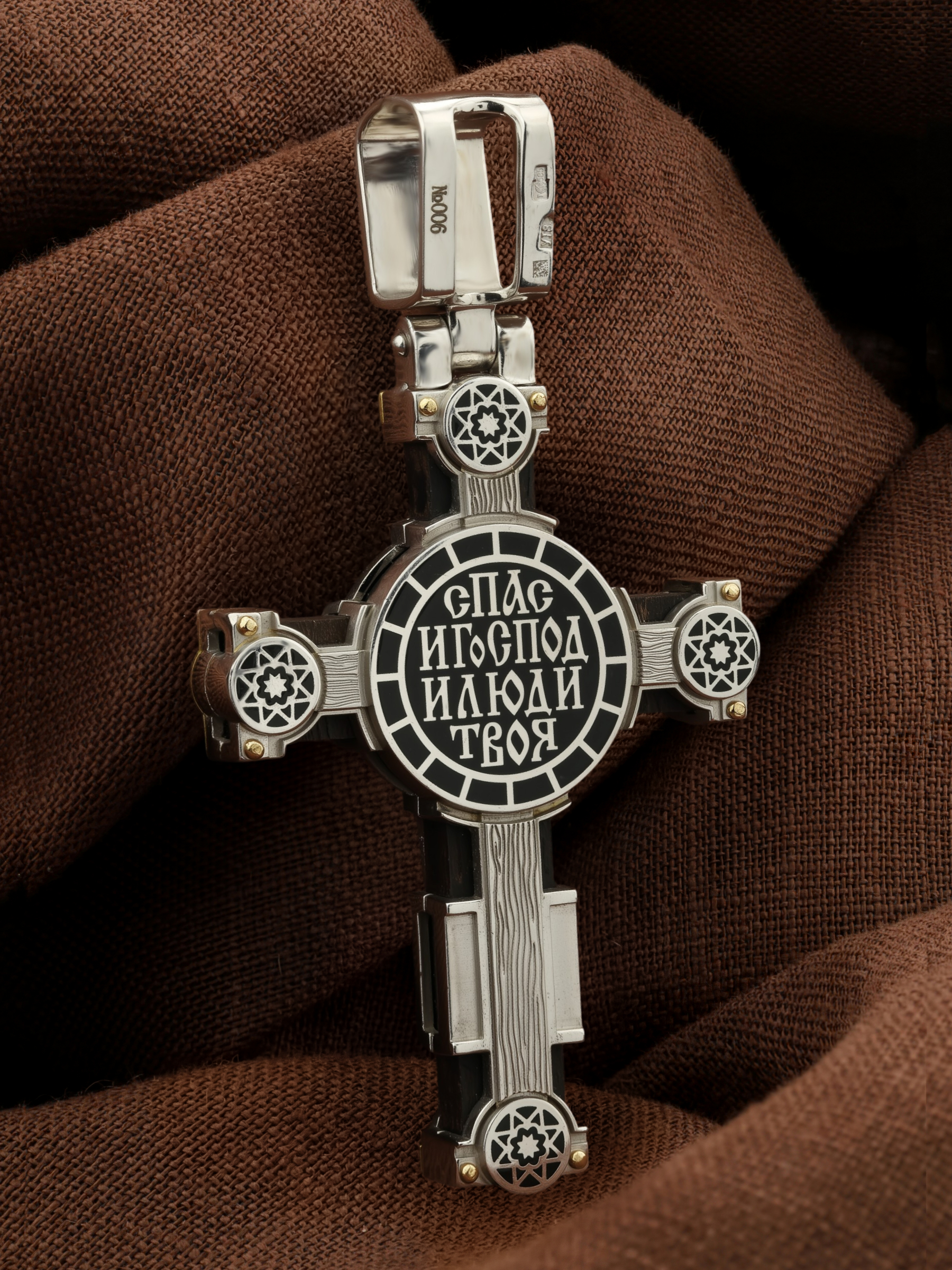 Крест из белого золота c эмалью и эбеновым деревом