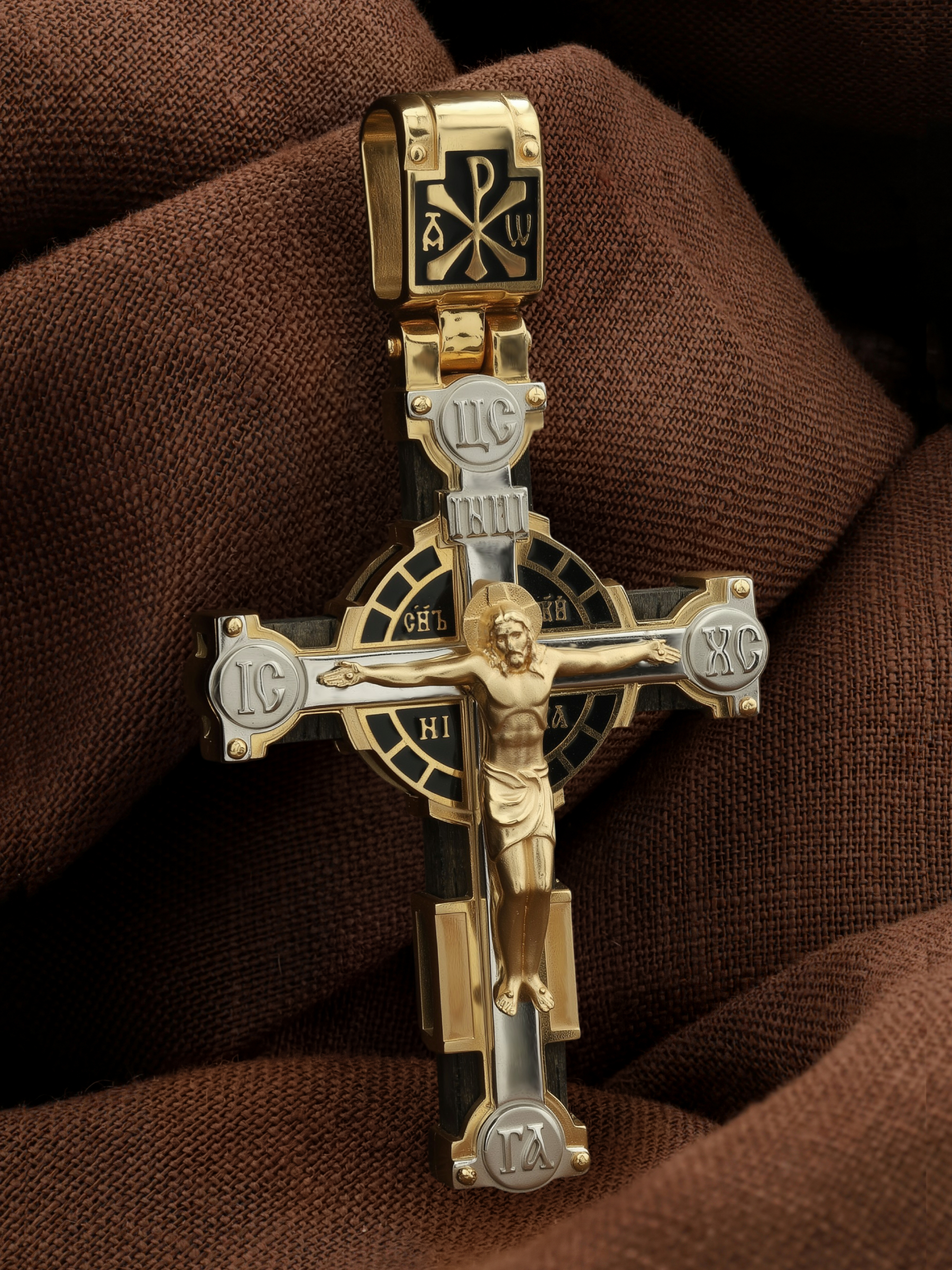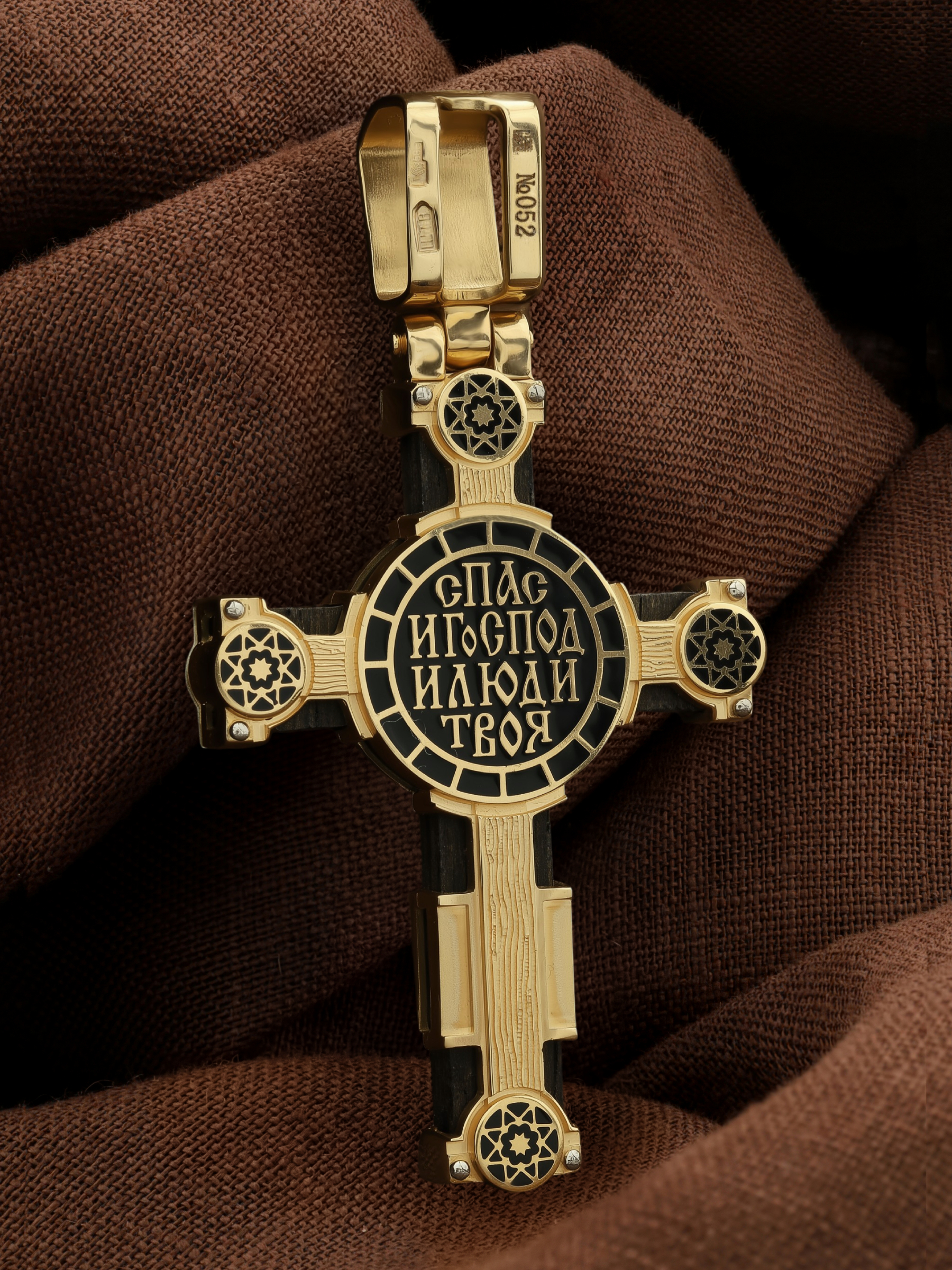 Крест из лимонного золота c эмалью и эбеновым деревом